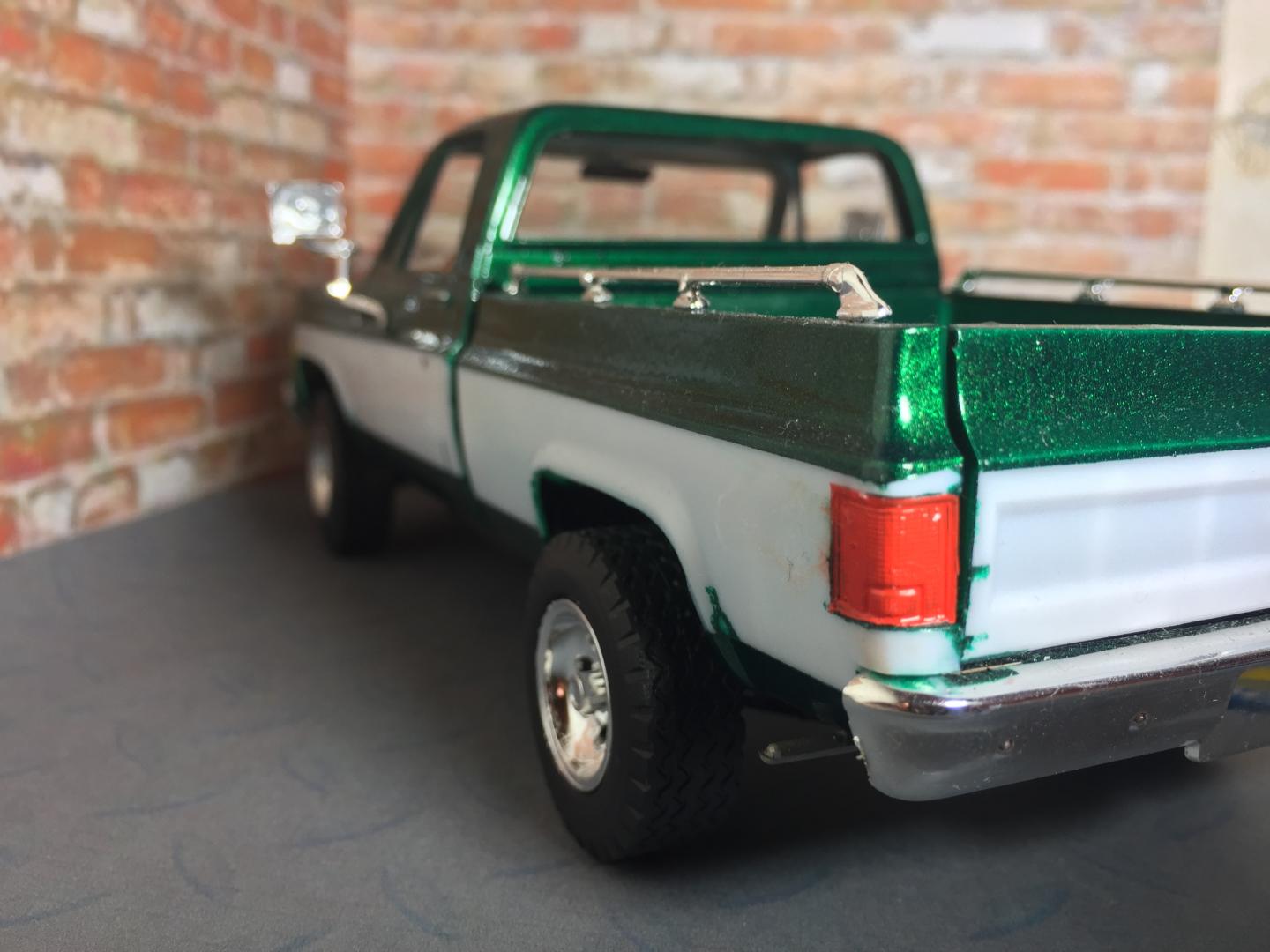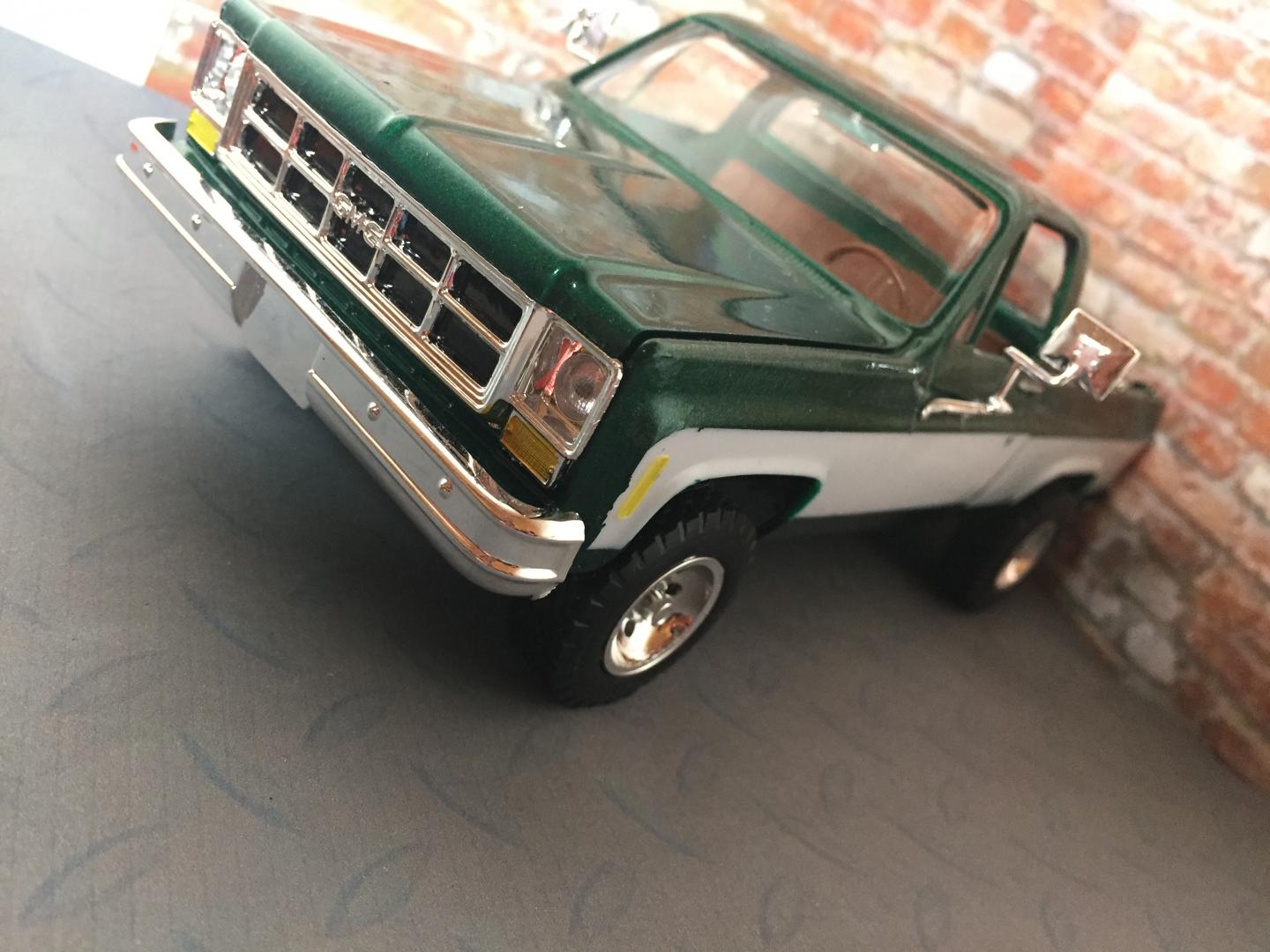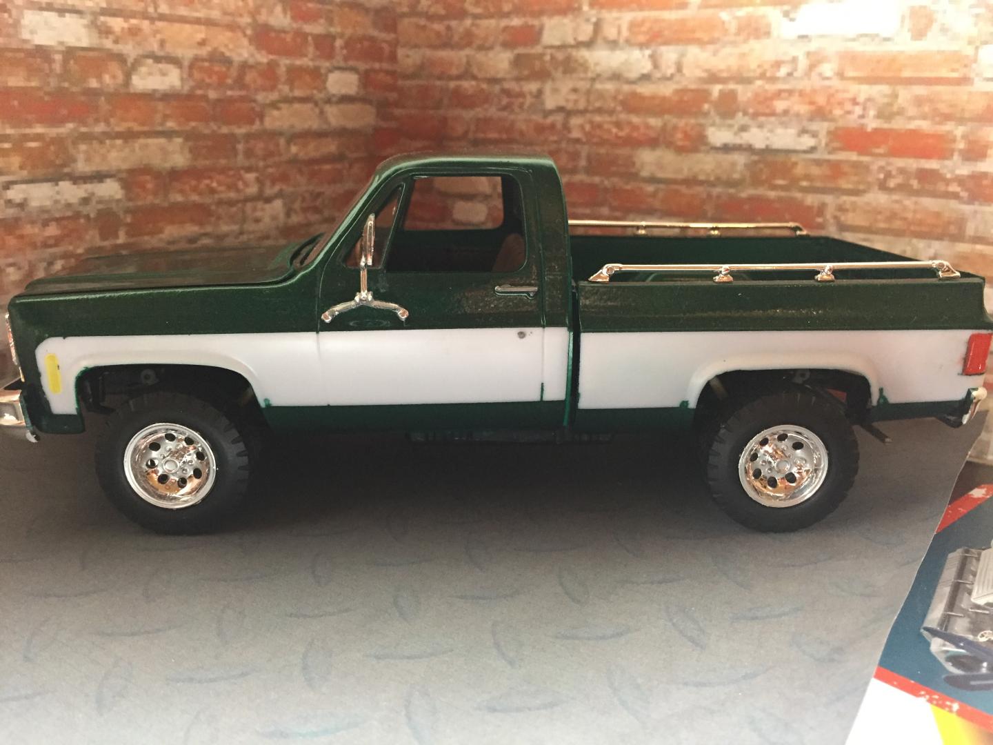 My '77 k-10 Chevy. I absolutely loved this build & look forward to building more trucks in the future. This is my first taste of two tone painting & am very pleased with the way it turned out. I put a lot more time & detail into the engine & cab & I really believe they make the truck much more outstanding. If anyone has any comments, or constructive criticism please give a reply. I really want to get better. Thank y'all