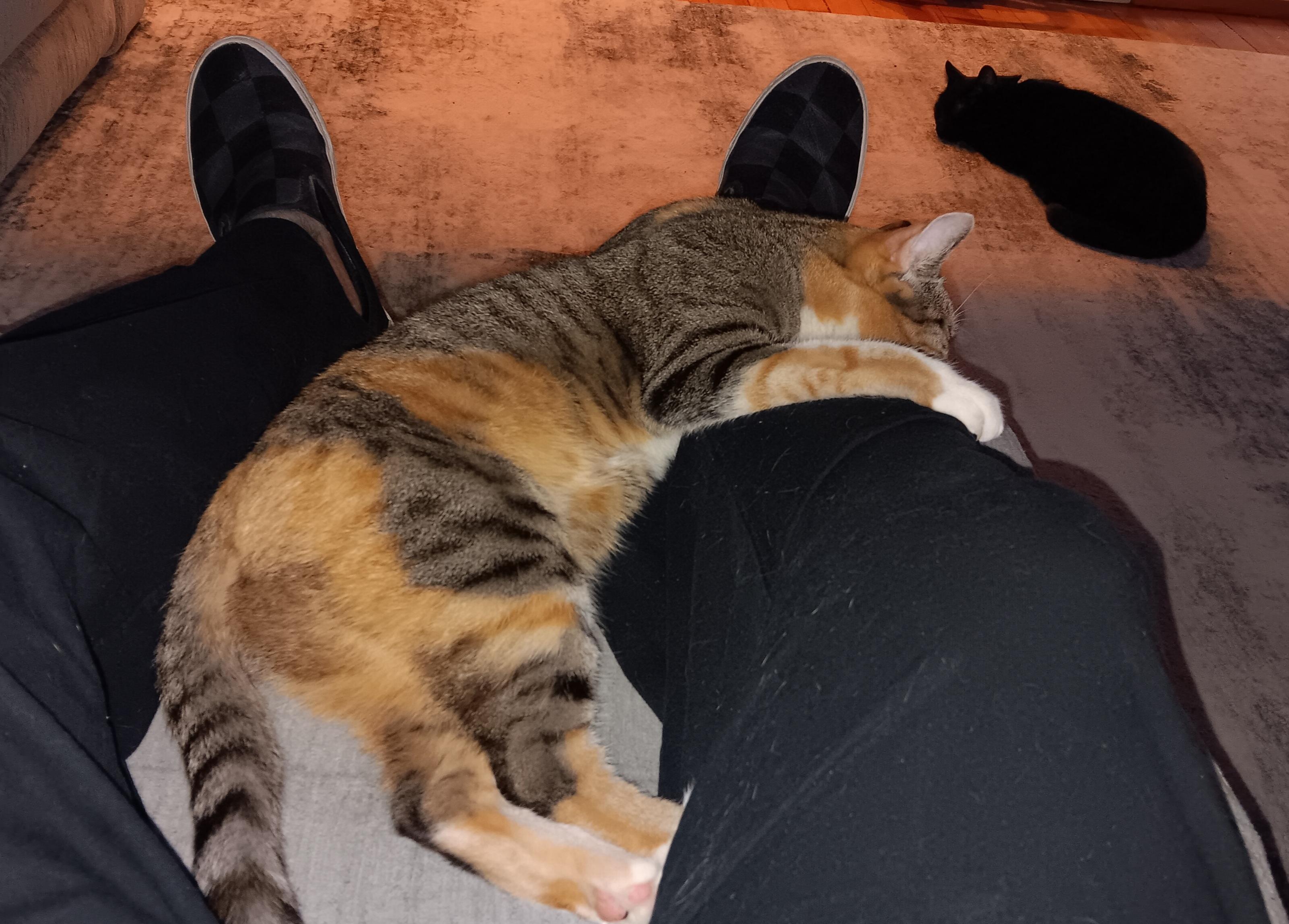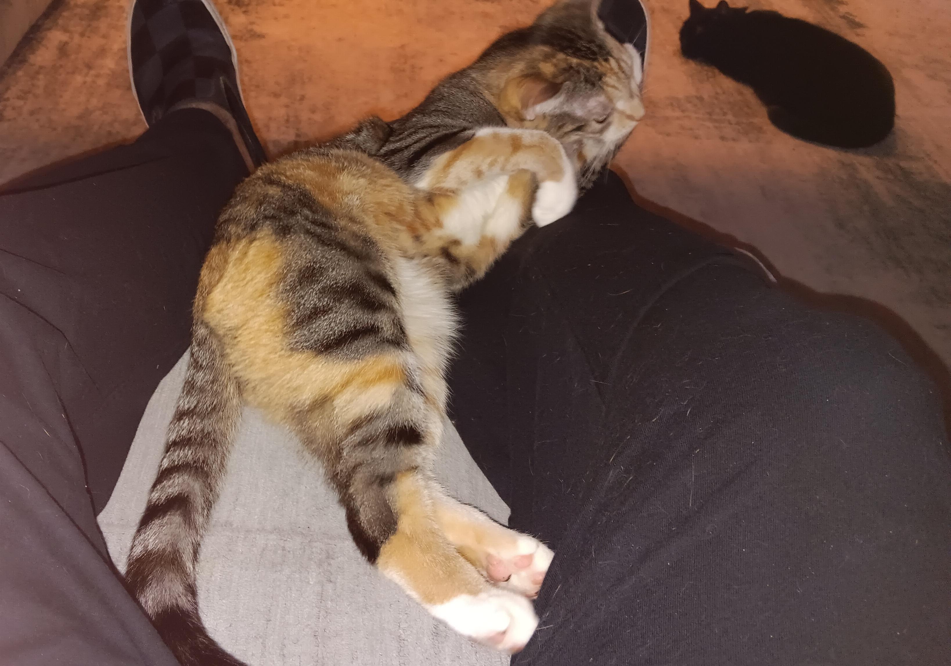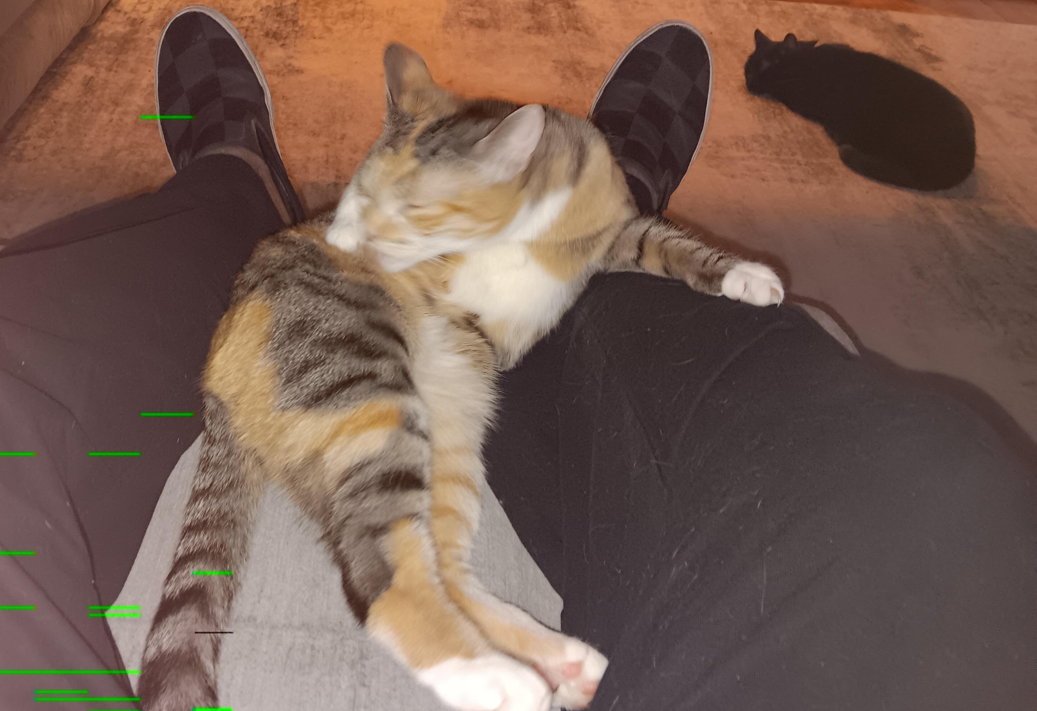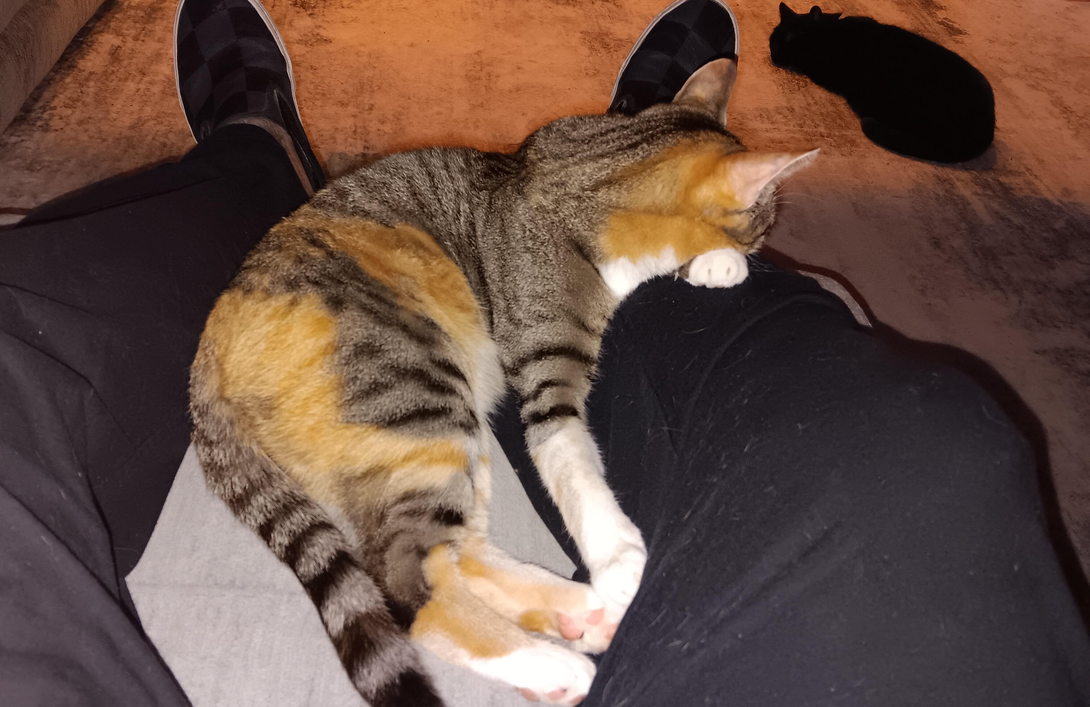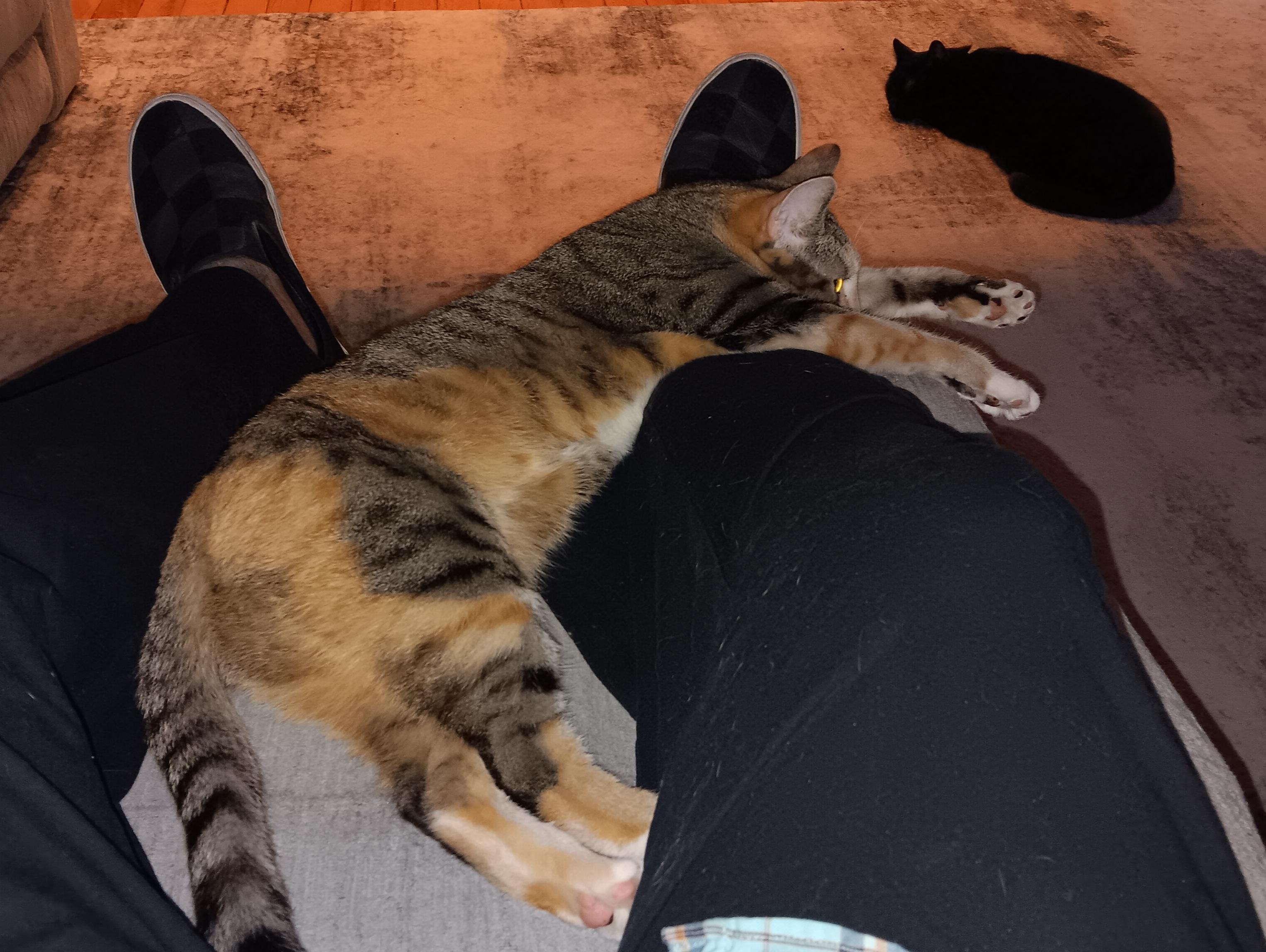 I agree, she is stunning. She was at the shelter with her sister, who is a straight up striped tabby with some red patches on her. That one is on the shy side. I'm not sure if she is a calico or a patch-tabby. I'm thinking patch-tabby. Our departed Chloe was a patch-tabby, great colors too. Like Chloe, this one has a brindle coat, not smooth at all.