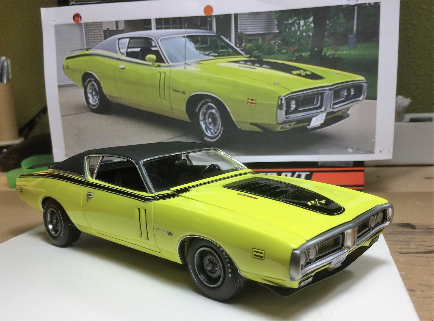Finished this AMT 71 Charger R/T with a 440 recently. My wife gave me this model three years ago after a 25 year absence from the hobby. This was my 3rd model (yeah, one per year is about what I can do, although this one took only 4 months).