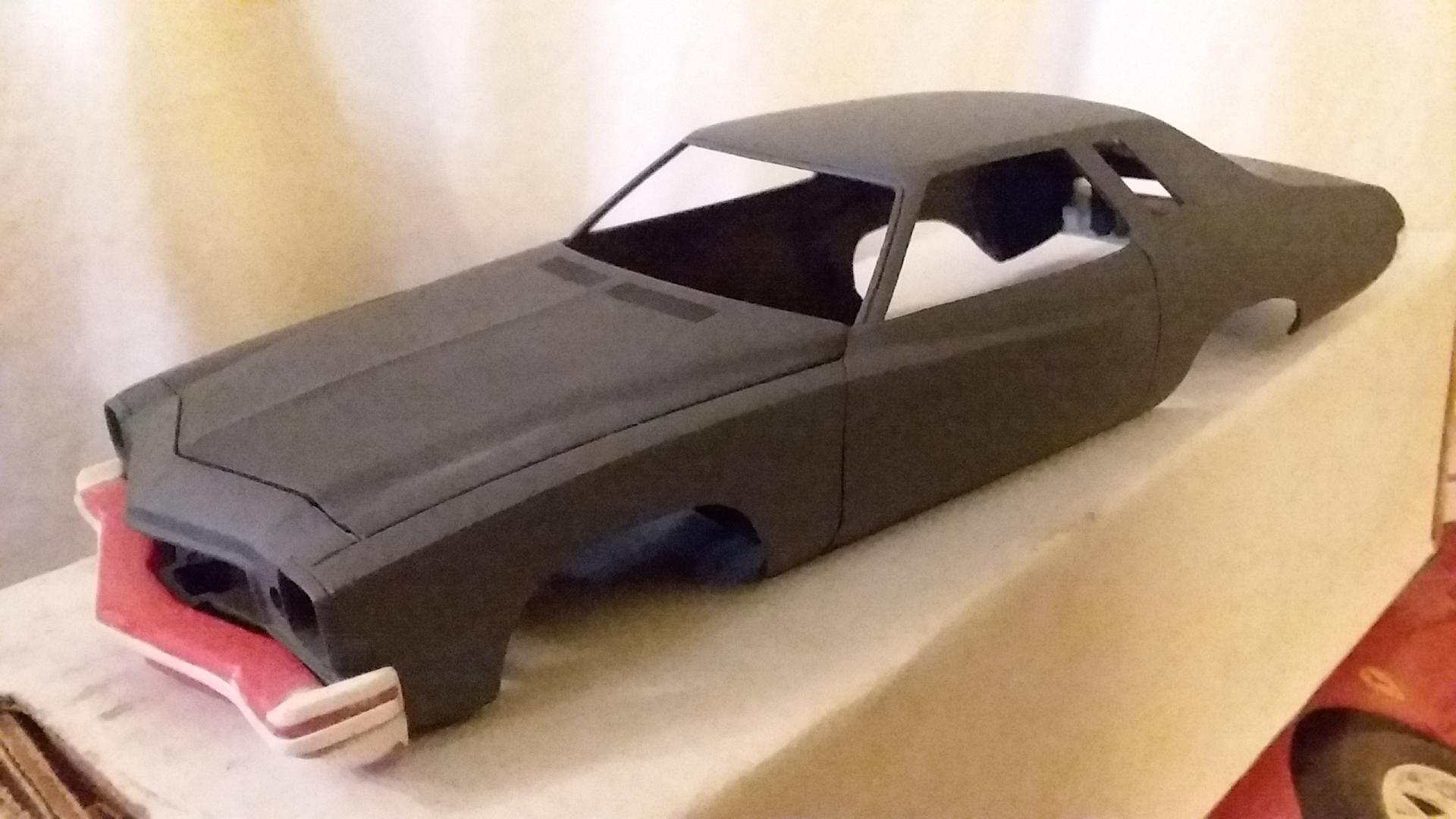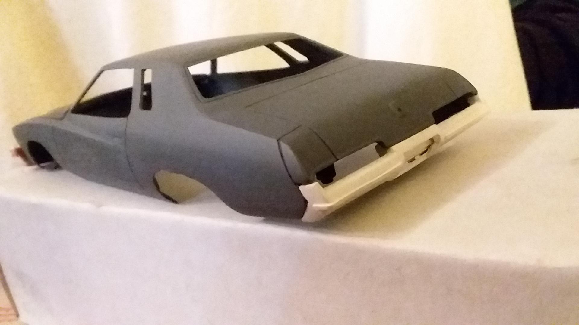 Yes, the front bumper started with the Olds center (red) with bits o' plastic added to the ends. Rear is all pieces of plastic forming the shape. I'll find the Oldsmobile for you. Use your red Cutlass as a guide for the angle of the B pillar and the shape of the side windows will follow. -