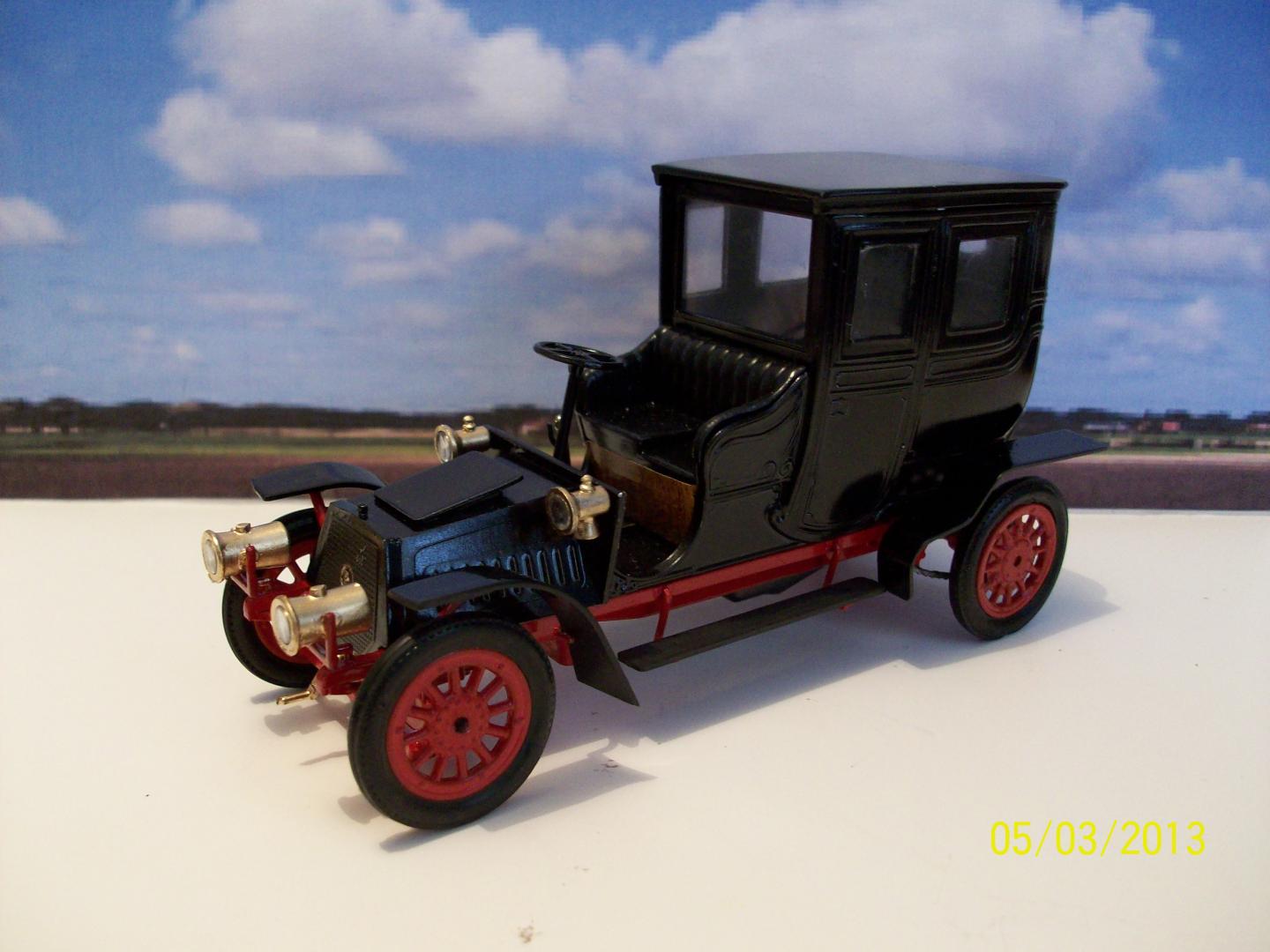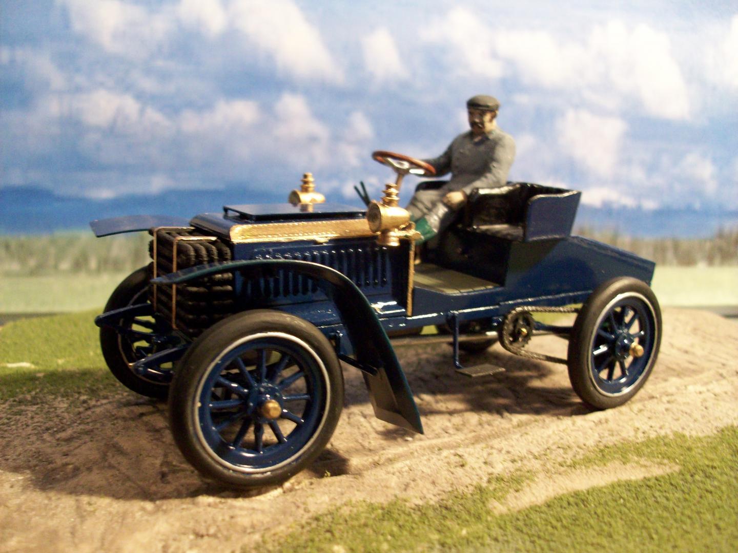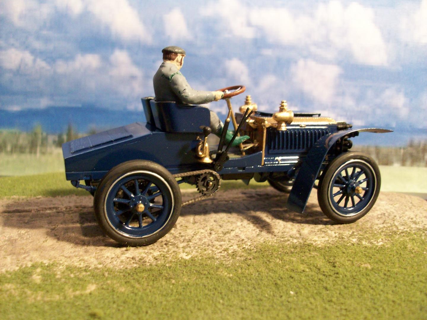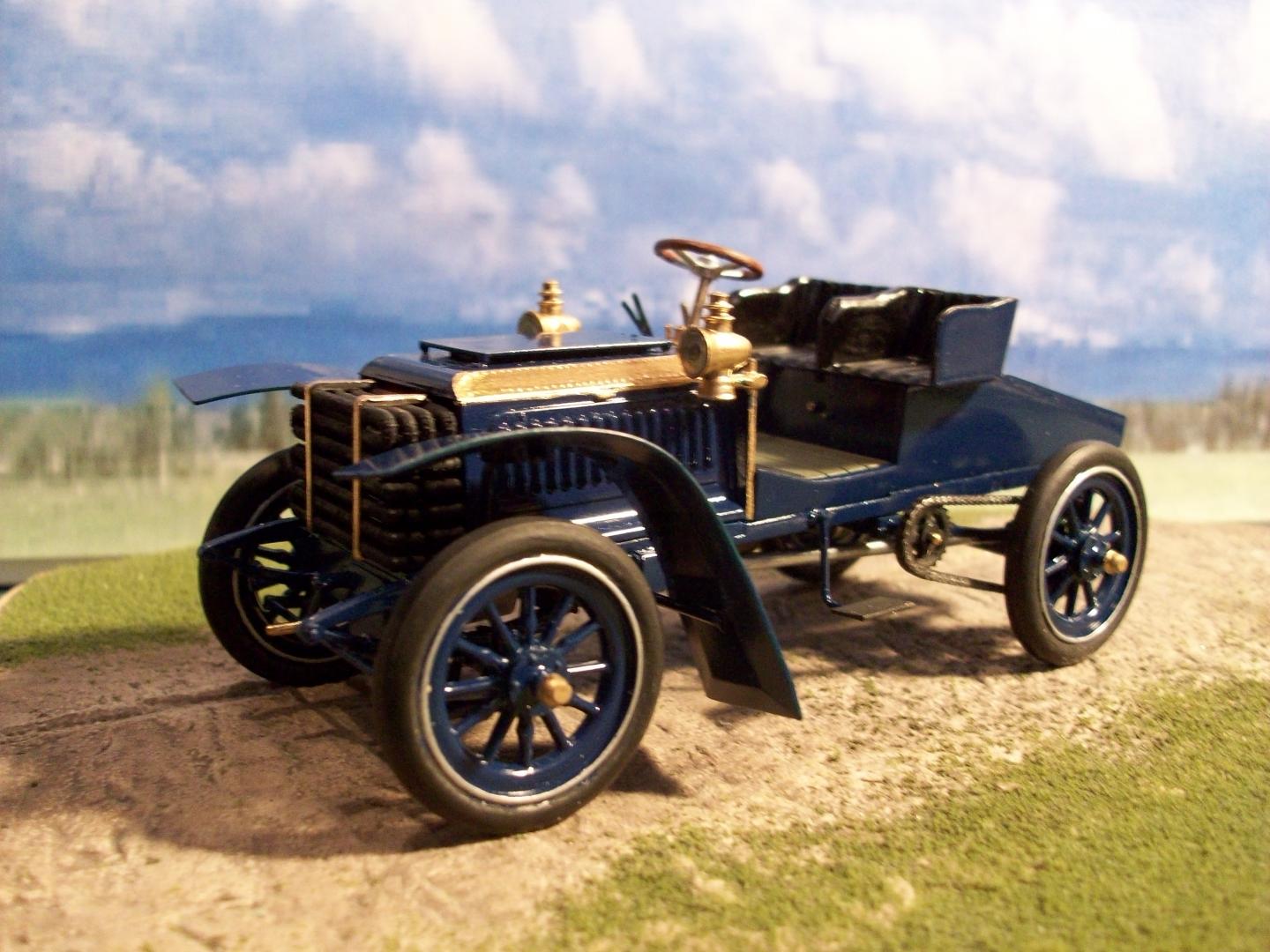 This is another one of those fairly rare 1/32 scale "Europe" kits, the 1895 coupe. I am only aware of three kits in this Panhard series, but there may be more. I added the scratch built trunk to sit on the rear "shelf" as it looked kinda empty without something. Hope you like it. Tony