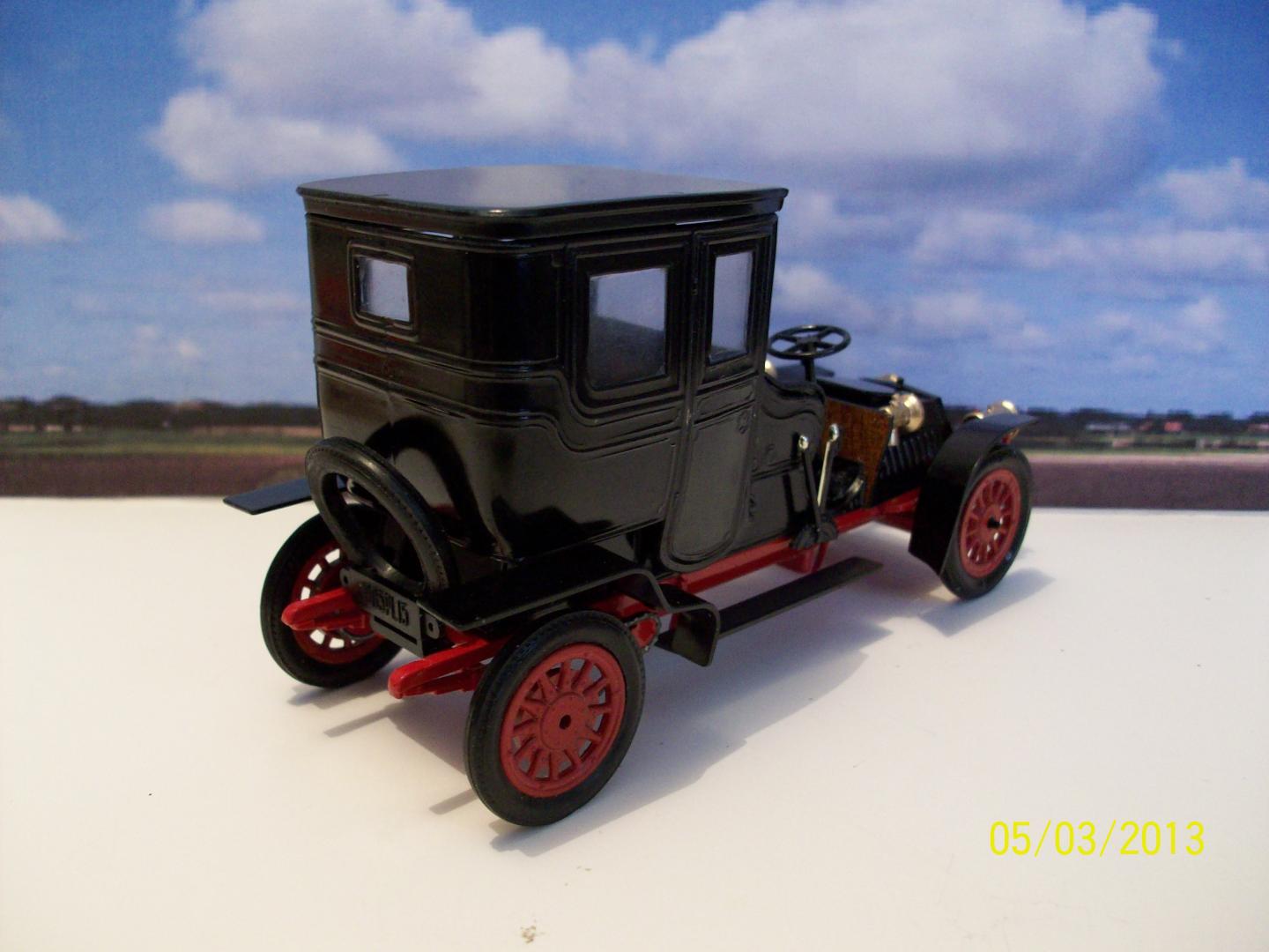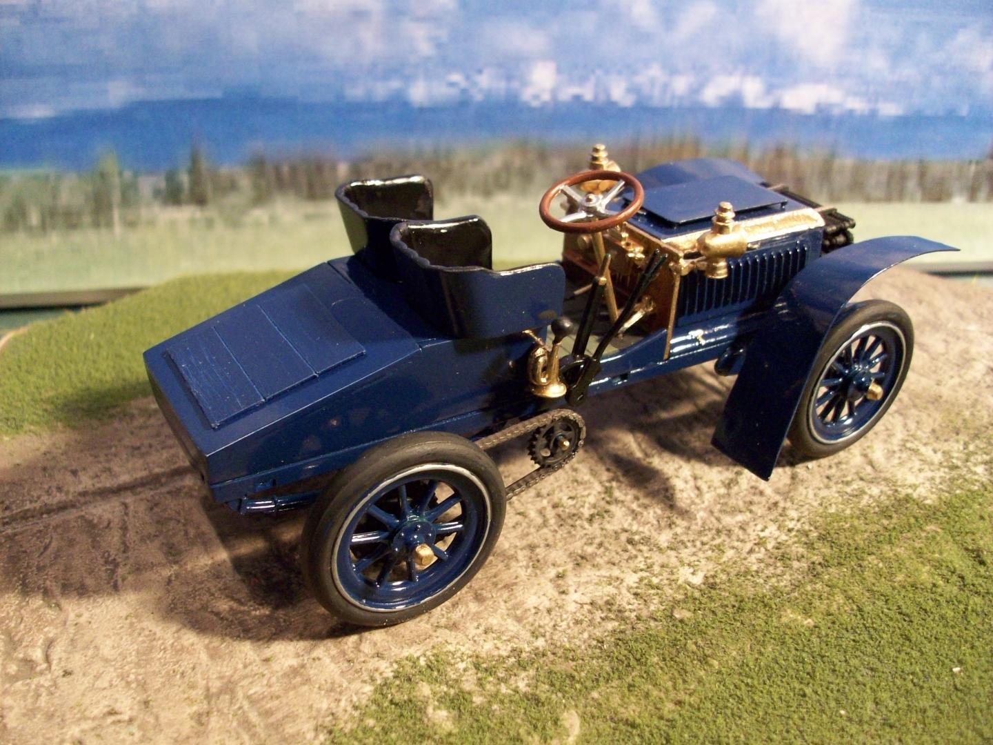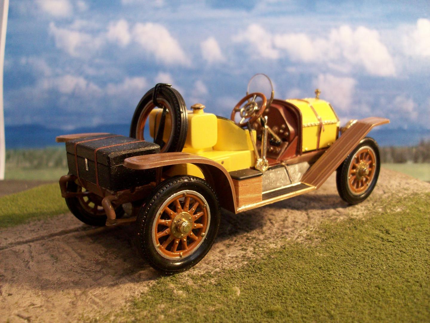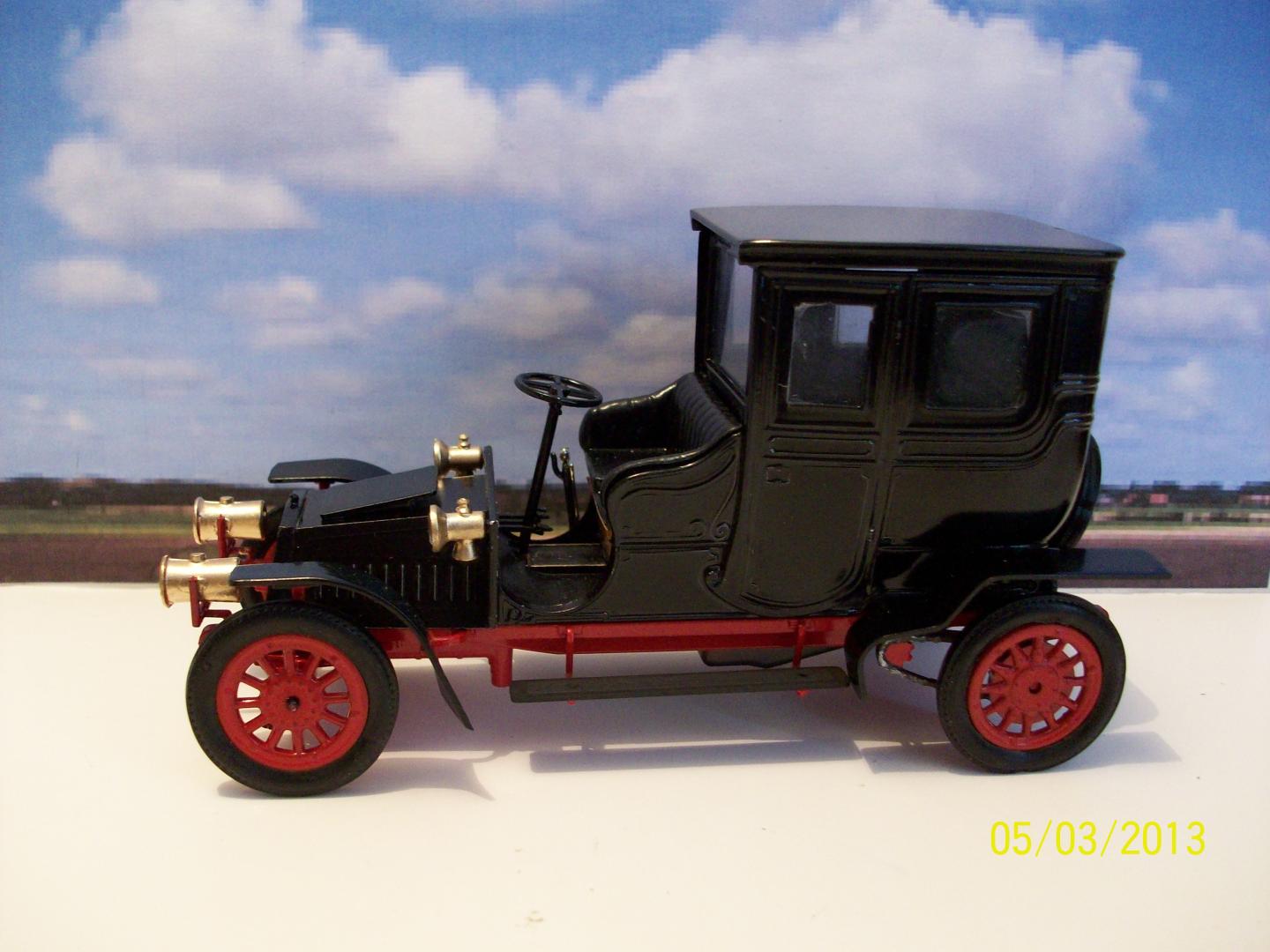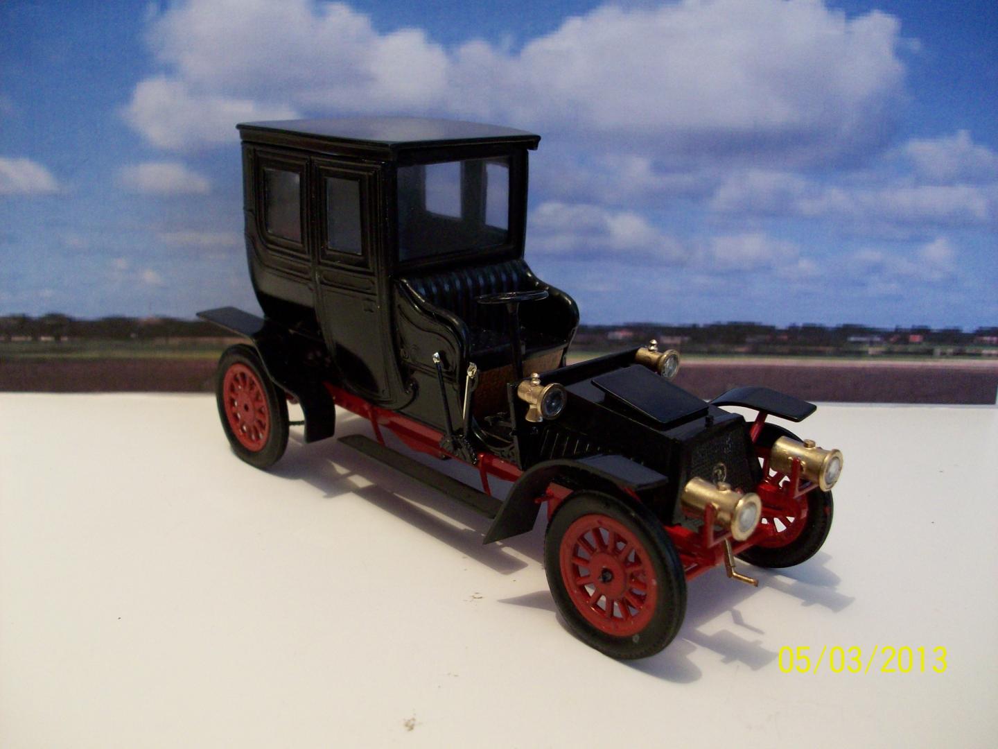 This is another one of those fairly rare 1/32 scale "Europe" kits, the 1895 coupe. I am only aware of three kits in this Panhard series, but there may be more. I added the scratch built trunk to sit on the rear "shelf" as it looked kinda empty without something. Hope you like it. Tony