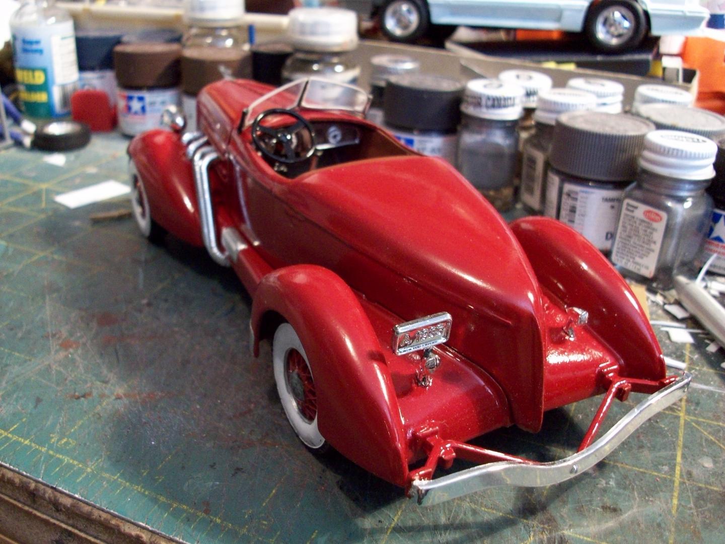 Here's the Custom Convertible pretty much completed: A little disappointed with the size of the spokes on the wheels, but not much I can do about t at this small scale. With this one done (almost - just have to align the hood, paint the tail lights and the running boards, and add the radiator mascot - all things I didn't notice until I took the photos!). Then I can get back to the Convertible Phaeton. Tony