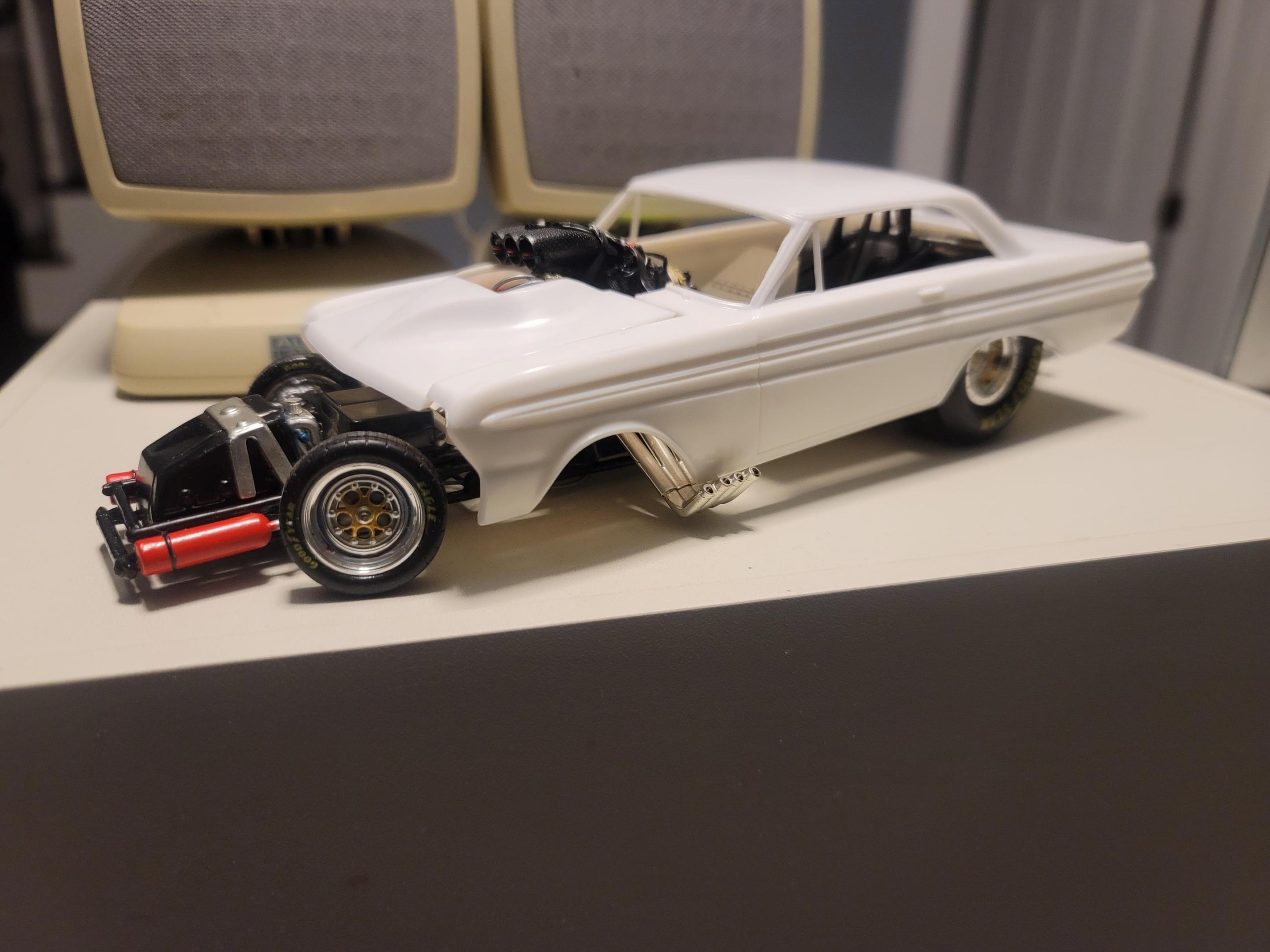18. I ended up getting a VERY thorough/nicely detailed diecast funny car cheap at a junk shop, but since I cant stand modern funny car bodies, I had to try a few different bodies on it, the falcon won so far. The plan is to eventually extend the body once I find a few more bodies