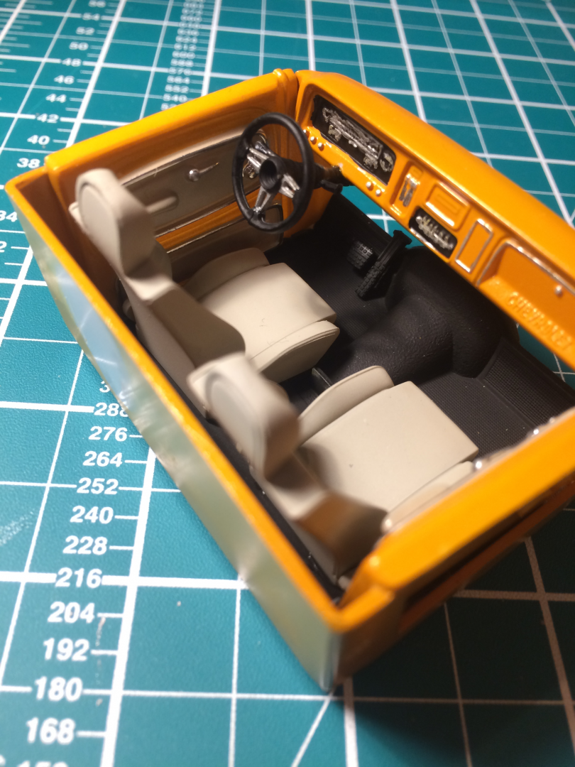 thanks! the seats are from a golf gti kit, nothing to aggressive but suit the build nicely, colour used on them was some tamiya "deck tan". also used on door panels but with a glossy clear coat to mimic differnent materials that would of been used. engine wiring sure is a tight fit. just need to paint exhaust and spare wheel and chassis will be rolling -