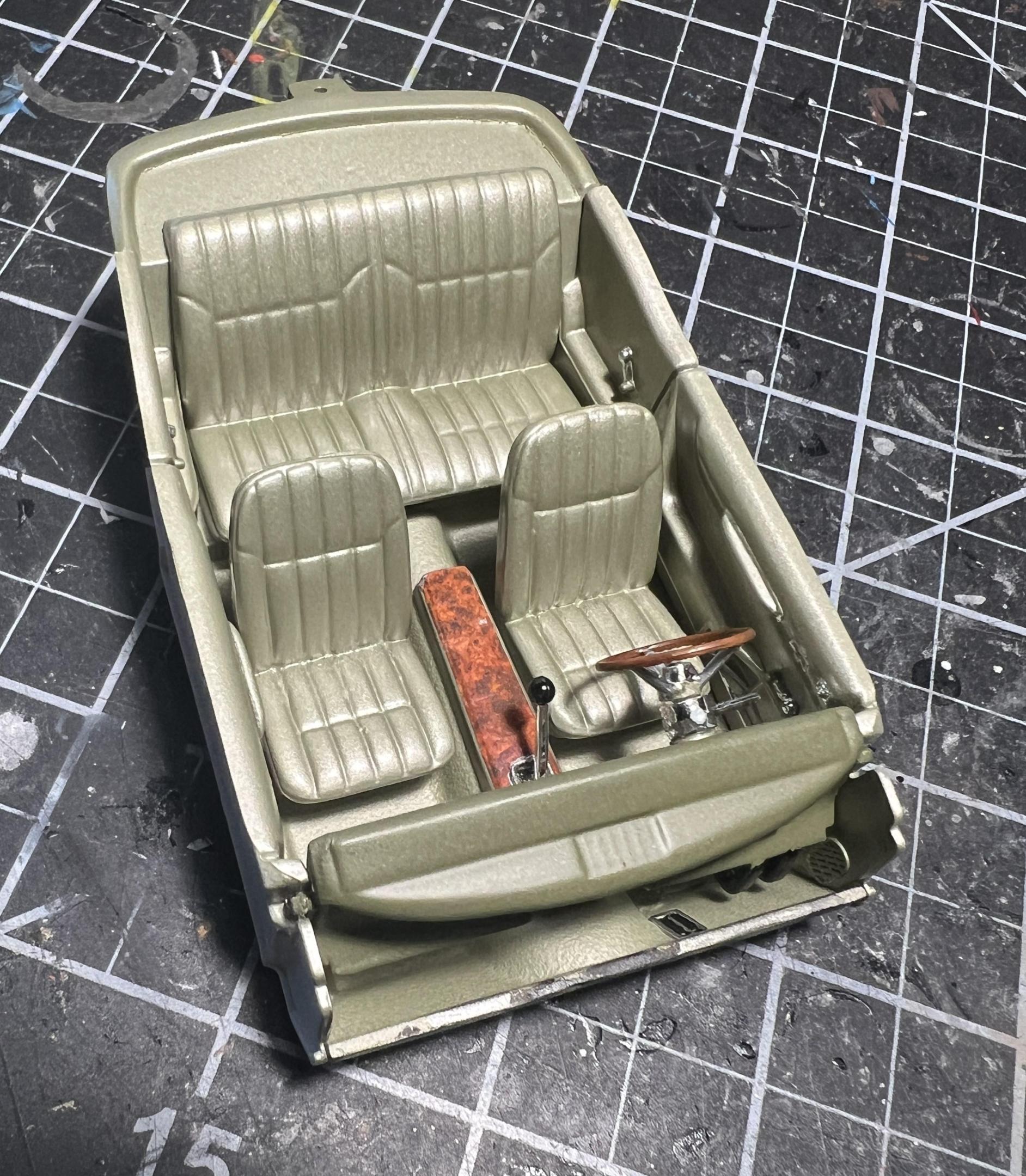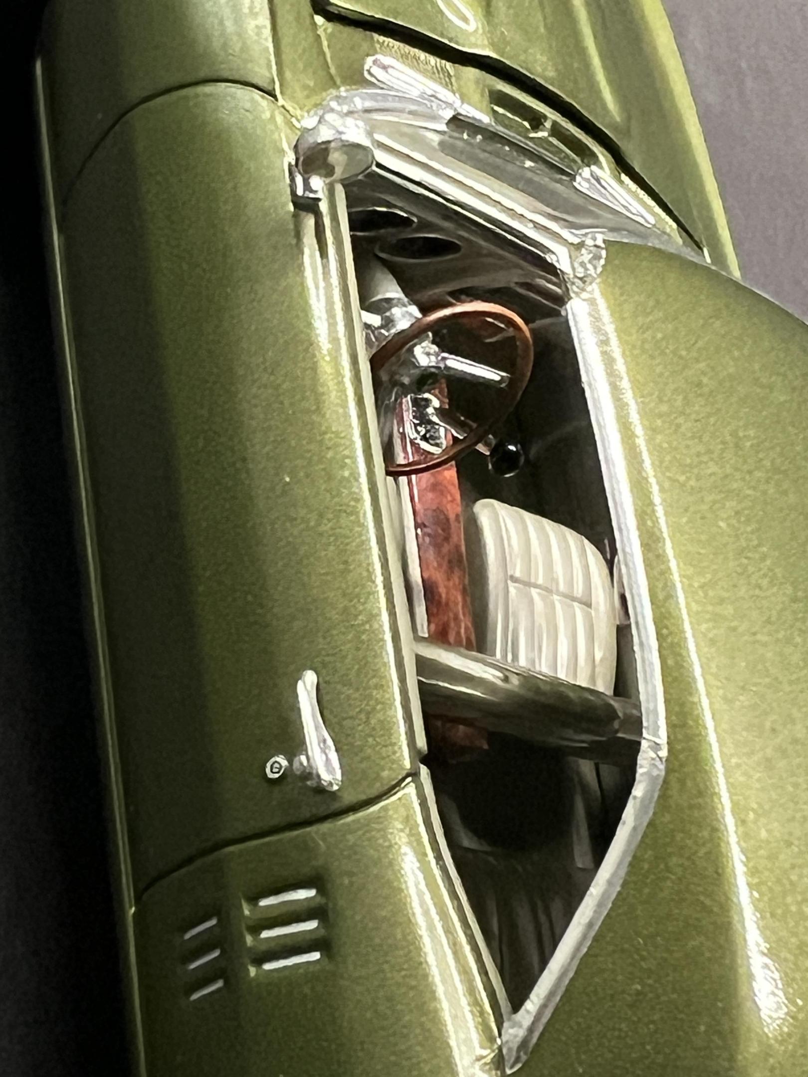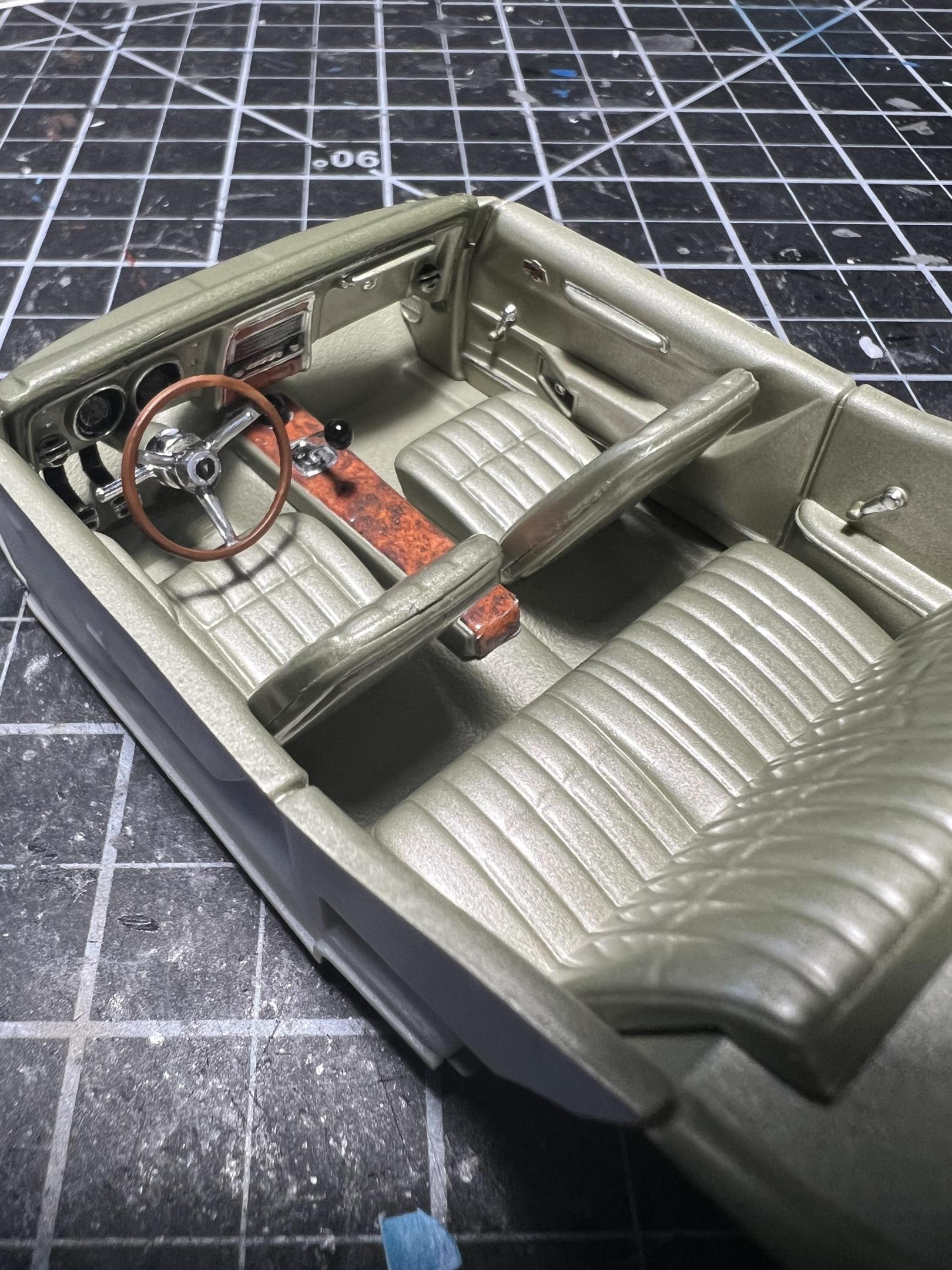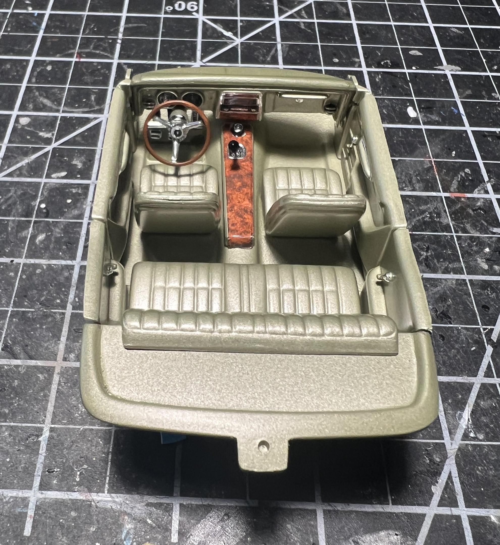 Always loved these cars - especially in this green. Used MCW Verdoro Green and clear for the exterior, and a blend of Tamiya Champagne Gold and Dark green for the interior - with more green to darken some areas. This was a nice kit, and had good detail. I didn't like the all in one nature of the dash woodgrain decal, so I made my own, and had to do the same for the console so they'd match. Other than that - done as a box stock build.