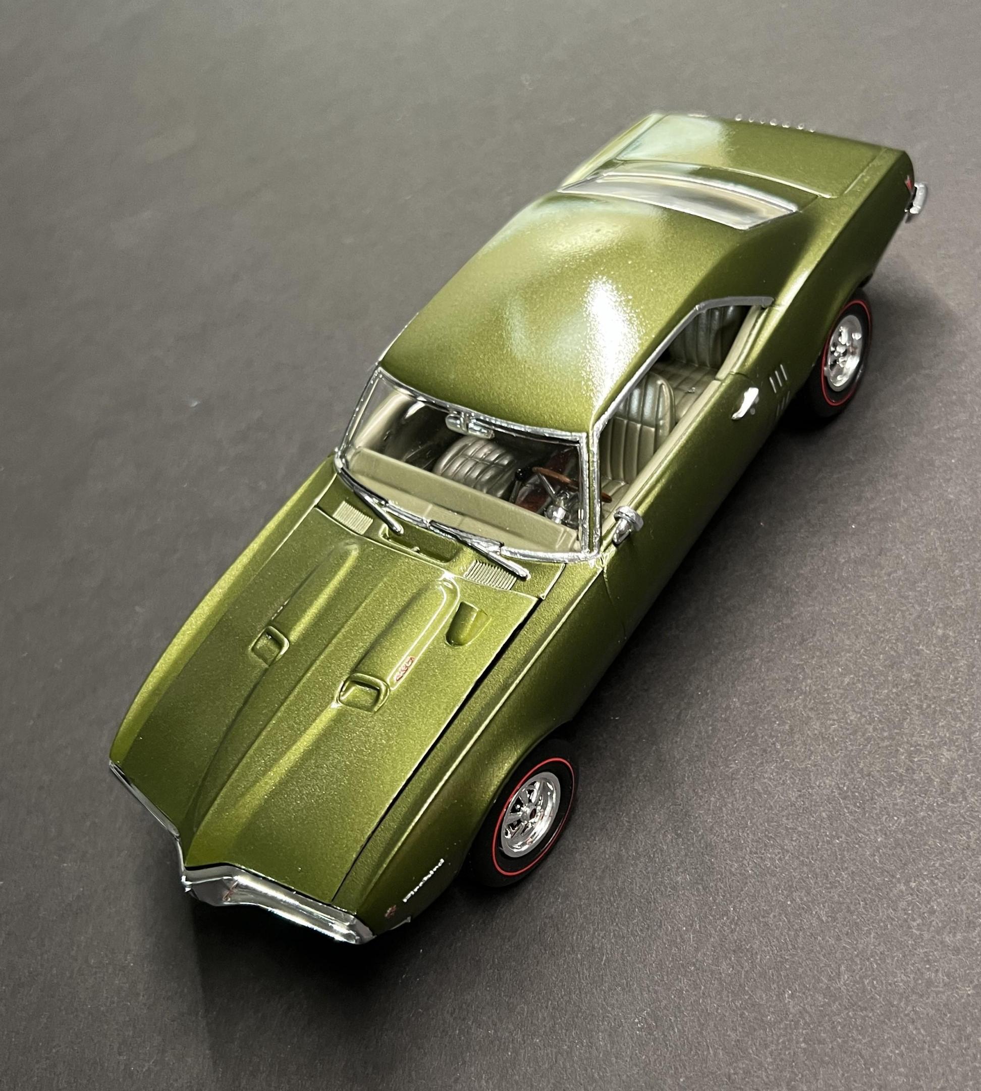 Really enjoyed this kit. Built it pretty much stock - with the exception of the Testors Metallic Red Extreme Lacquer paint. Also used the AMT red stripe tires. Tried to mimic the fiberglass bottom, with a mixed/layer series of greys and beige with a matte finish, but it didn't quite come out as expected.