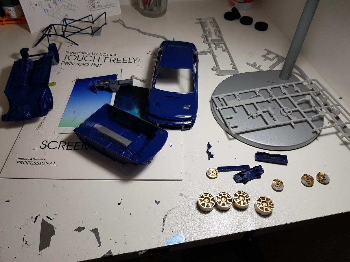 I also have the Aoshima 1:24 Mines Nissan Skyline R34 GTR, It's WIP, and perhaps stay in this status forever screwed up the painting of the bodywork,and I didn't know what to do with the position of the rear wheels Great first builds