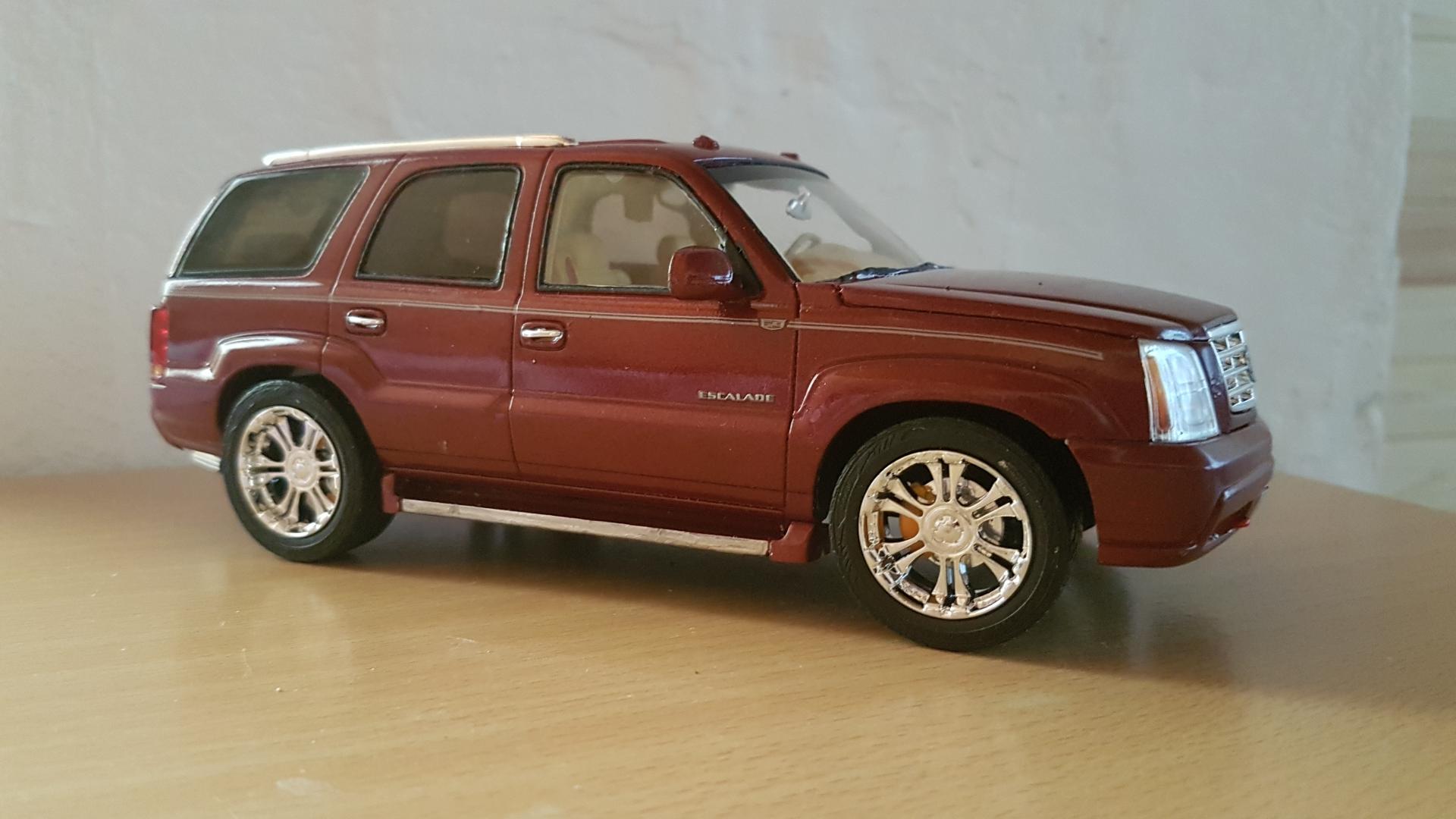 Hi Guys ! Here I would like to introduce you to my Cadillac Escalade. The model is by Revell USA in 1:25 scale. A nice construction kit, but in which the engine is shown only from below in the bottom plate. There are decals for different types of decorative stiffeners, the attachment requires patience. In addition, the kit has two different sets of wheels. Greetings to all from Jan