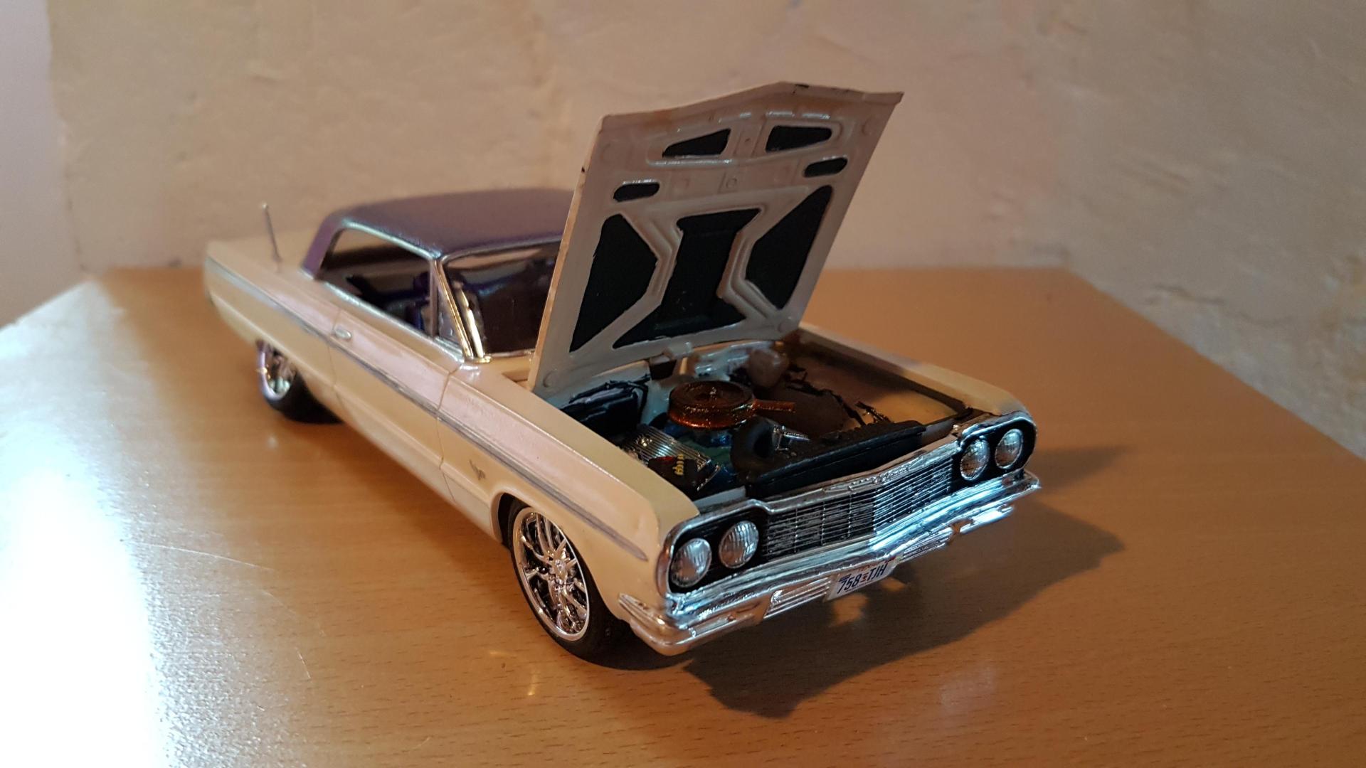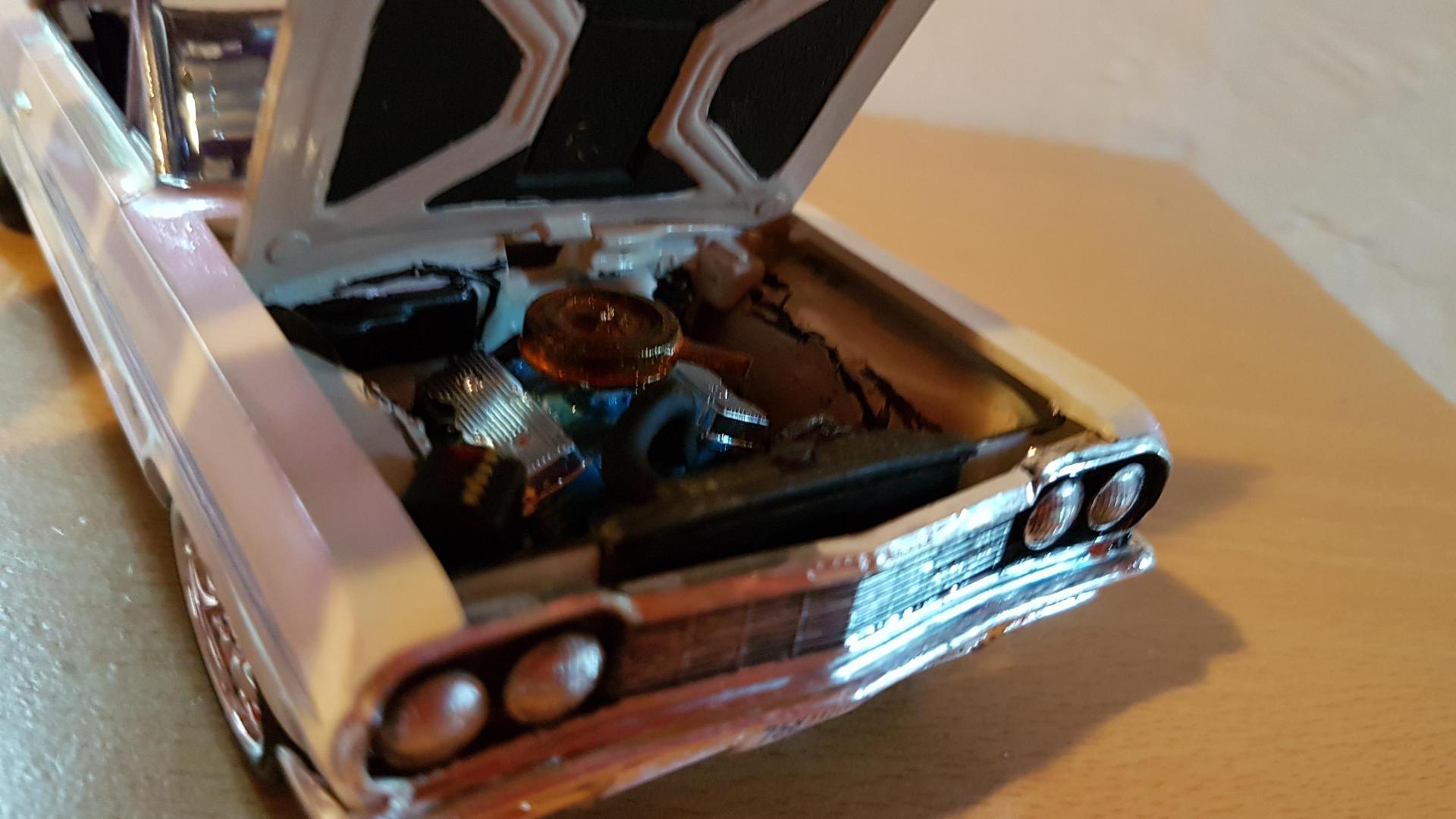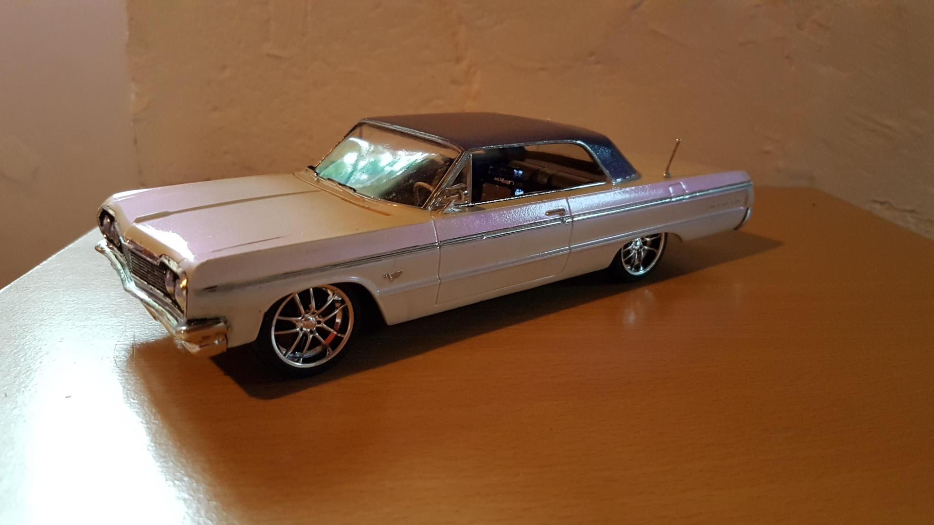 HI Folks ! The kit from AMT got a slightly different interior and wheels and tires from Fujimi. Lacquered with white base coat over it violet iridescent nail polish. The roof in silver, above a mixture of blue and red for a slightly violet effect with silver flitter paint. Greetings from Jan