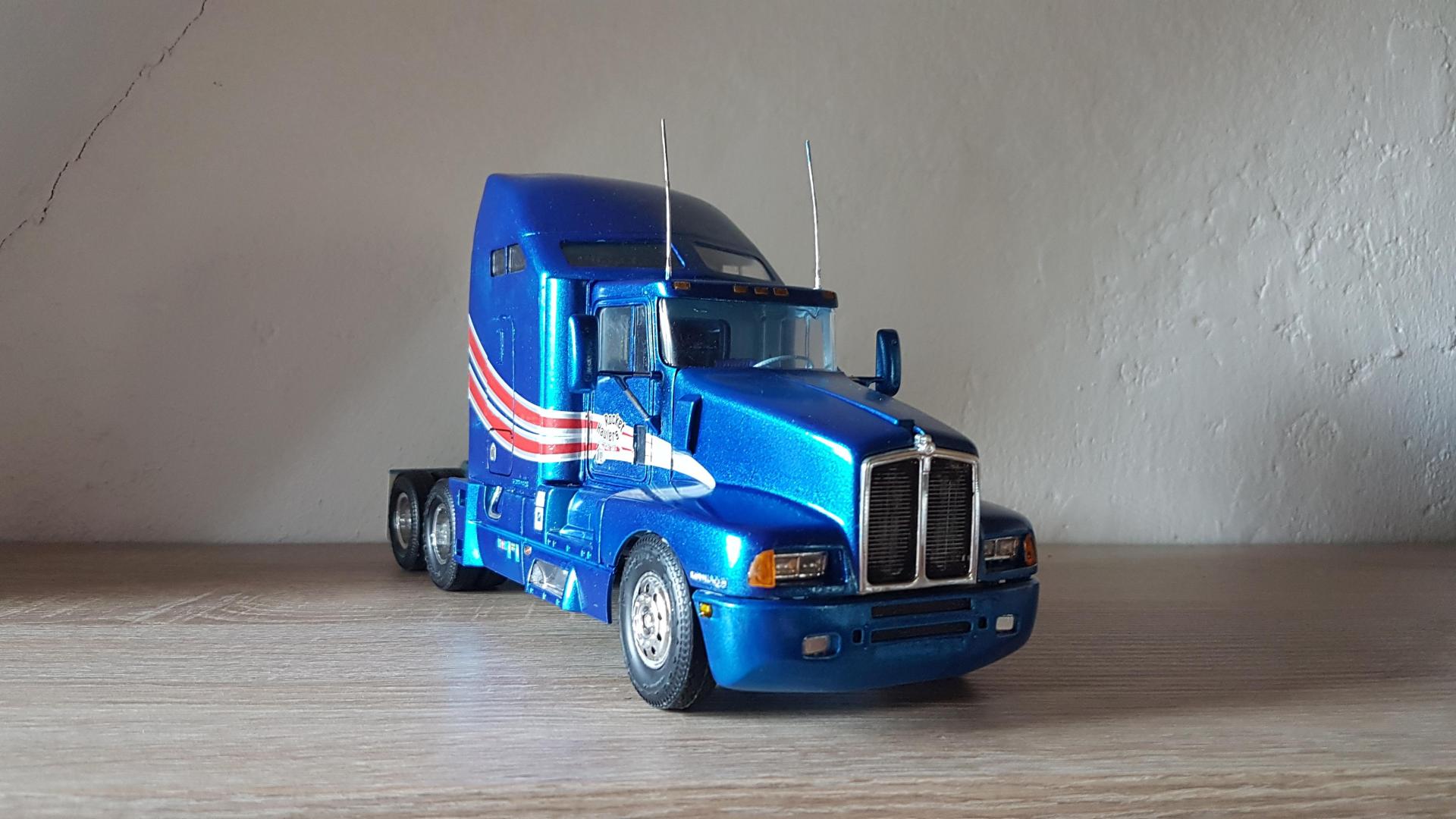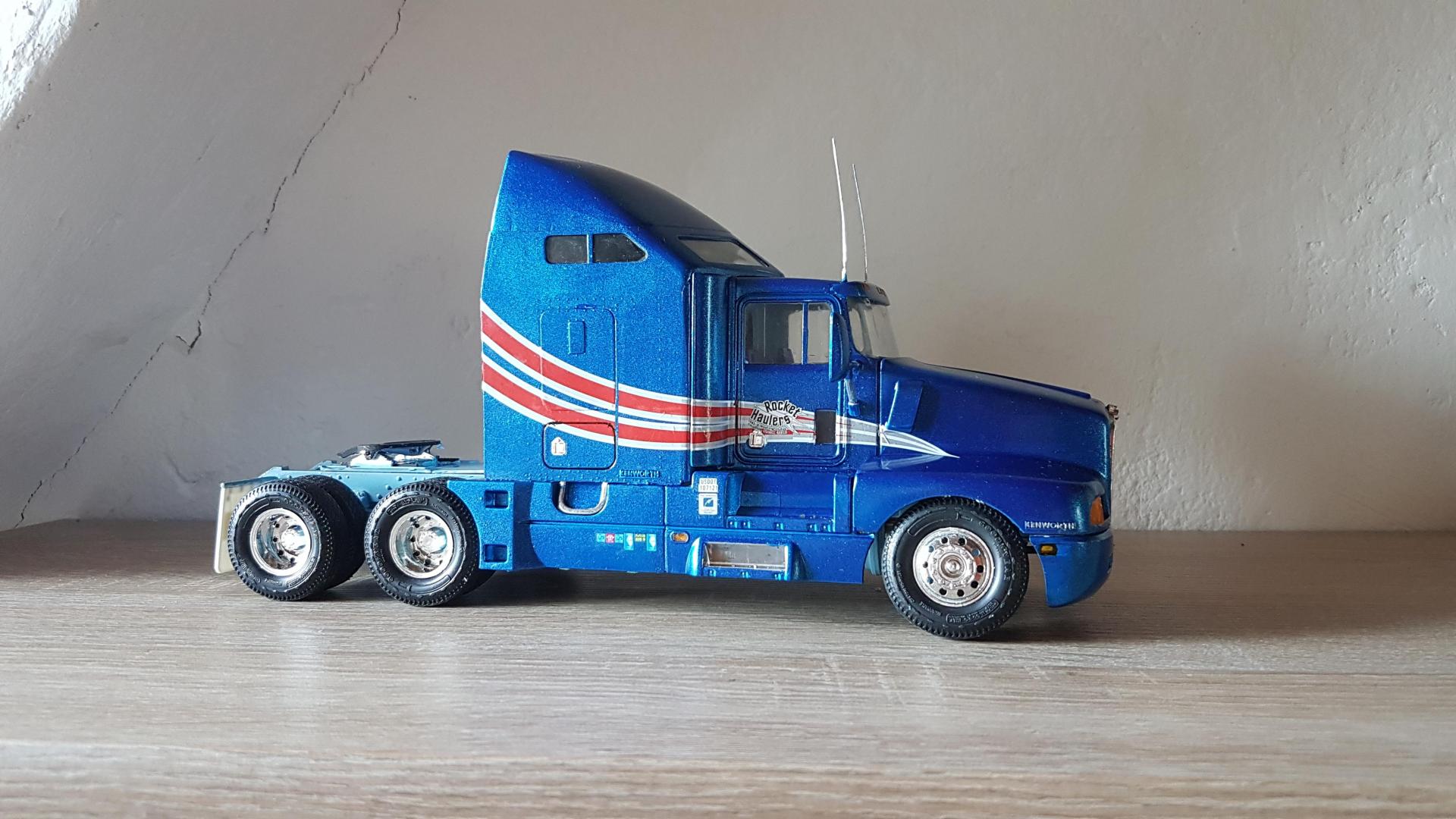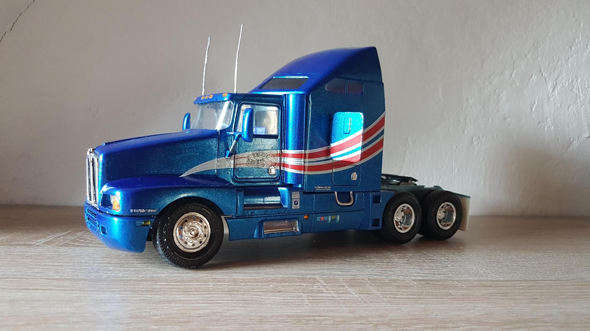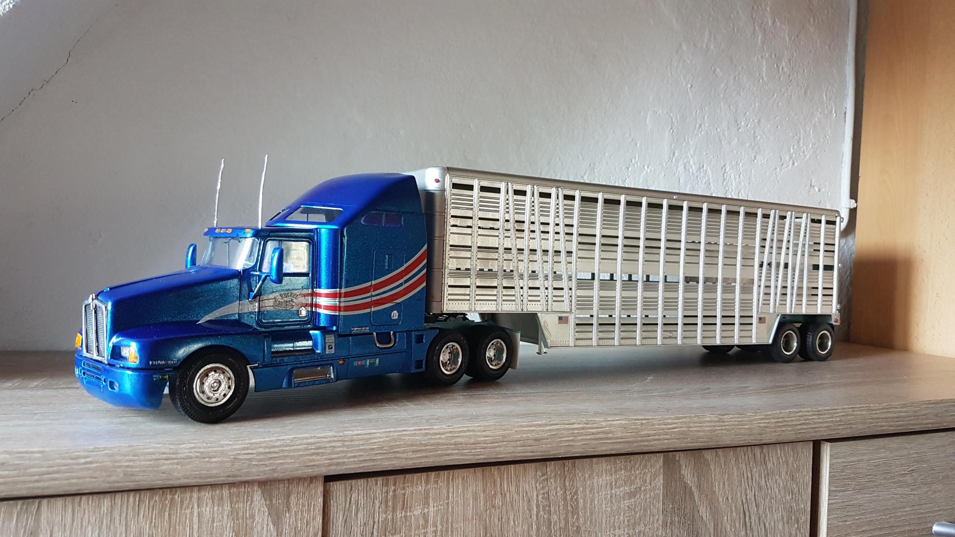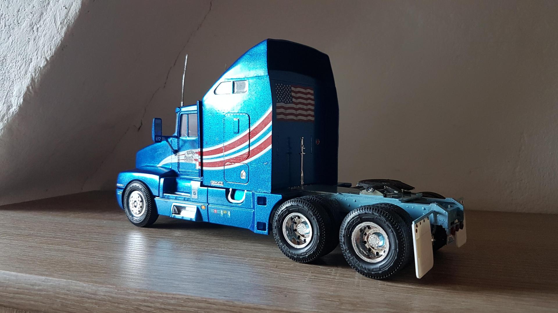Hi Jeff ! This Jan from Germany ! Very nice Truck , That`s awesome ! The combo with the traylor is perfect ! I like to ask you about the traylor , how did you build this separated axle`s on it ? Cause every kit has this standart double axel old scool. I have been in the US for several times and very soon , i will make a next journey with my wife to see my daughters in law and our grandchilds. So by this journeys i saw so much trailors like your ´s . This is now comon. But on the market , there isn`t no kit like This. Greetings from Germany ...Jan My buildings you can look at the car part under glas of this platform under my users name `aquaflug`