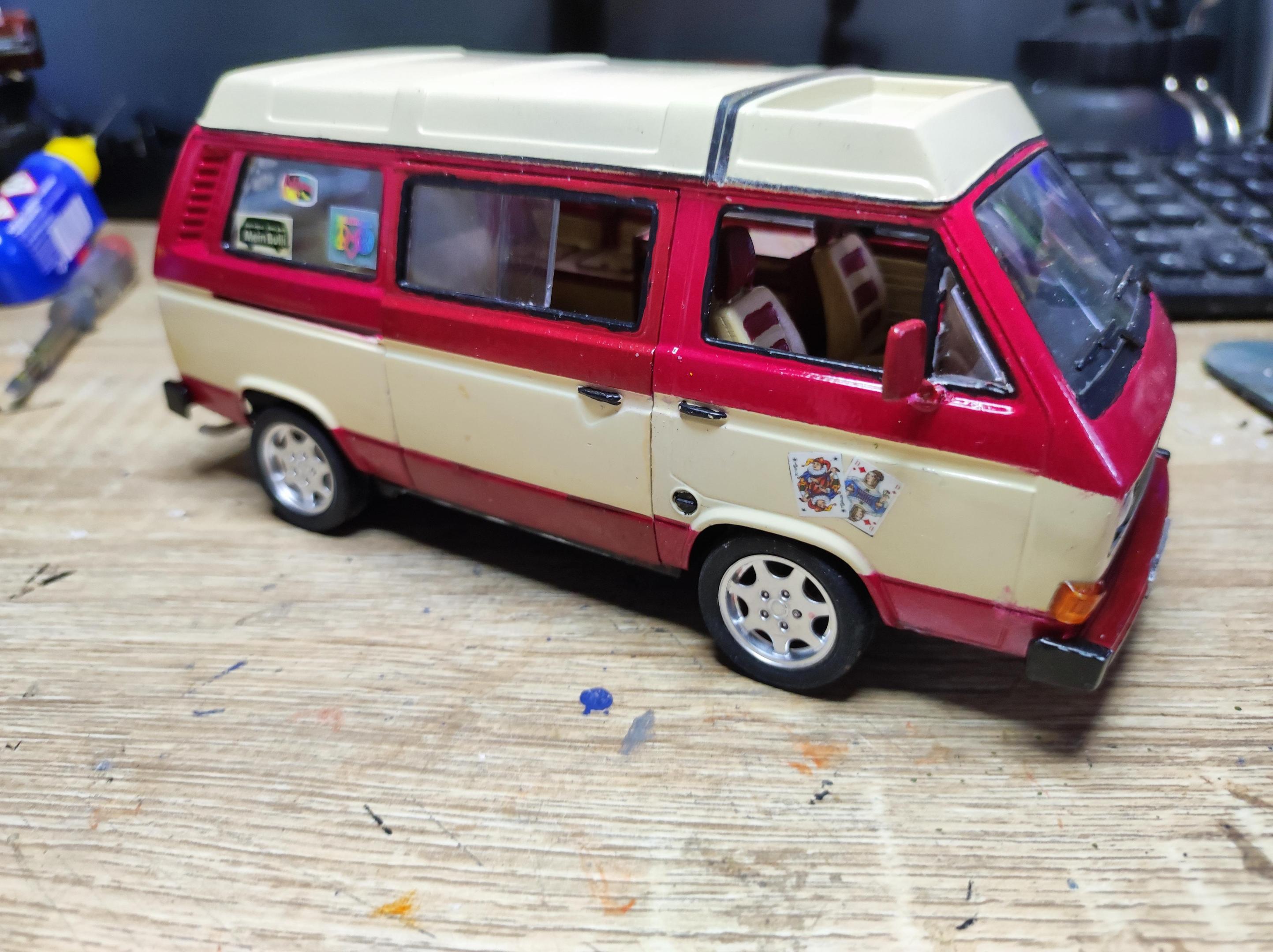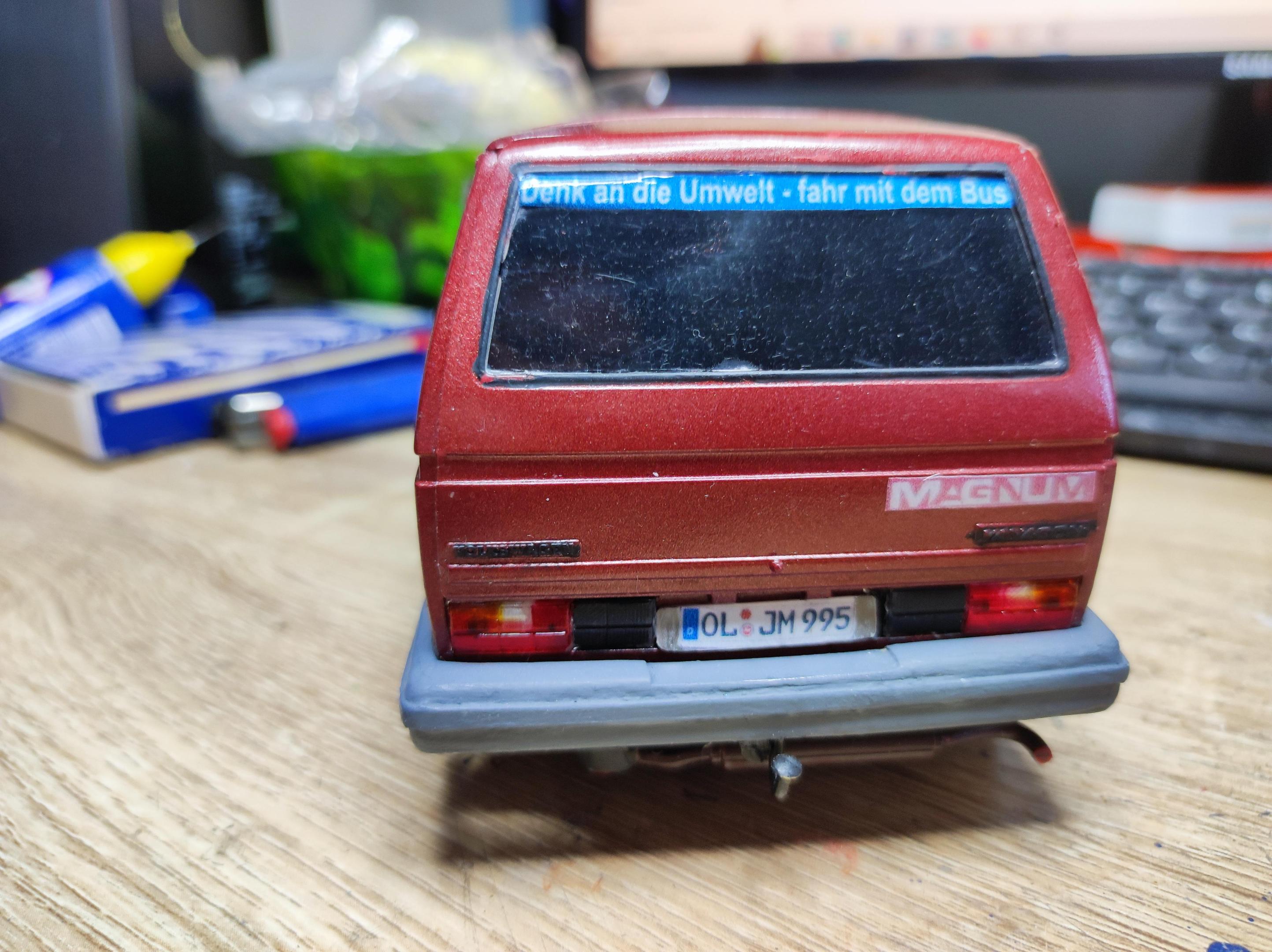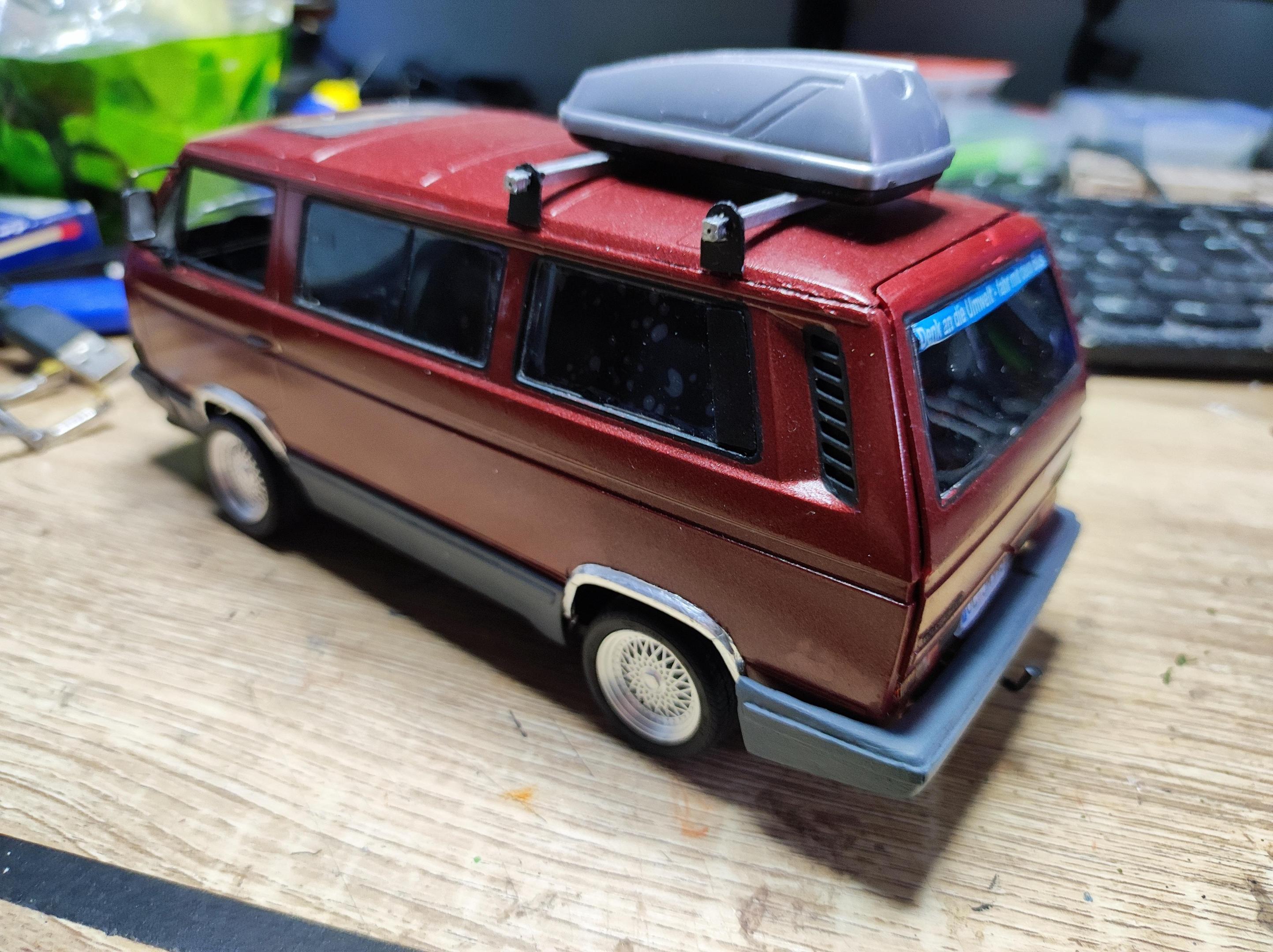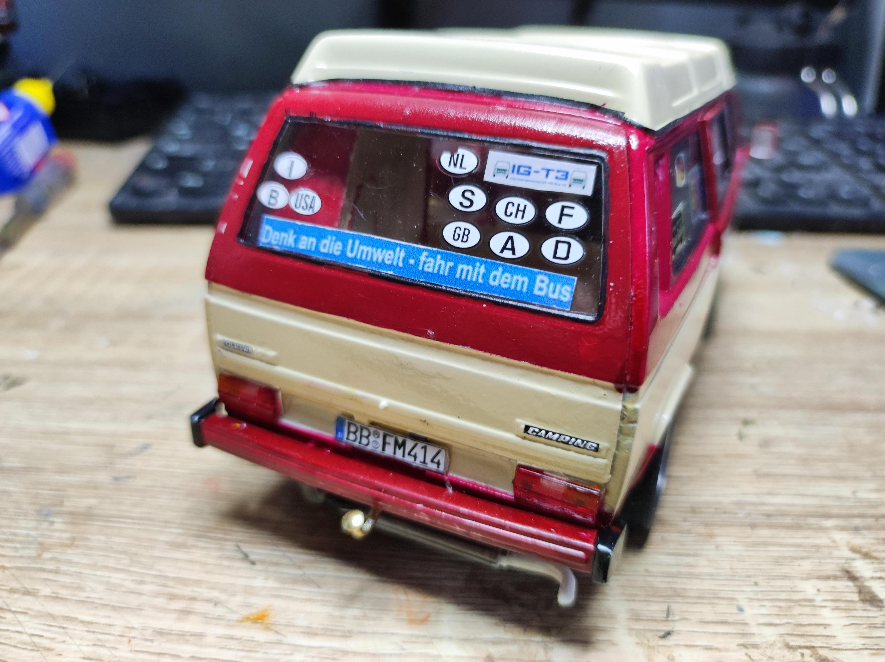 Hi Folks ! I like to show you an another Revell Camper. Based on a original car i 've seen several years ago. The pics , that i snapped , got missing on my pc by defrag / new start or other mistake. So build this car from my memory. The car was by a local shopping center in my town and i was very impressed. Some decals on the windows i print by myself . Enjoy the pictures. Coments are welcome . Greetings from Germany and happy modeling