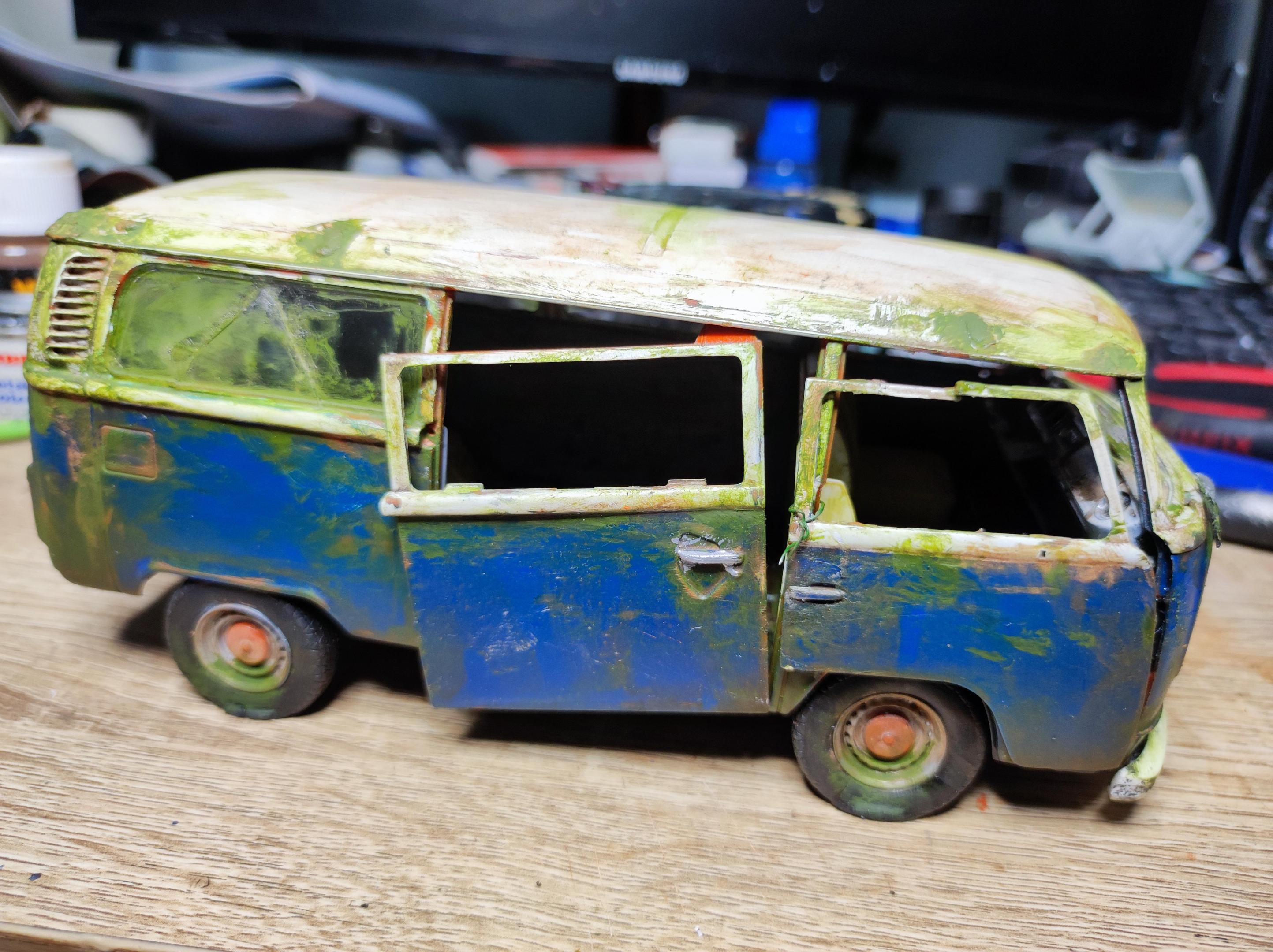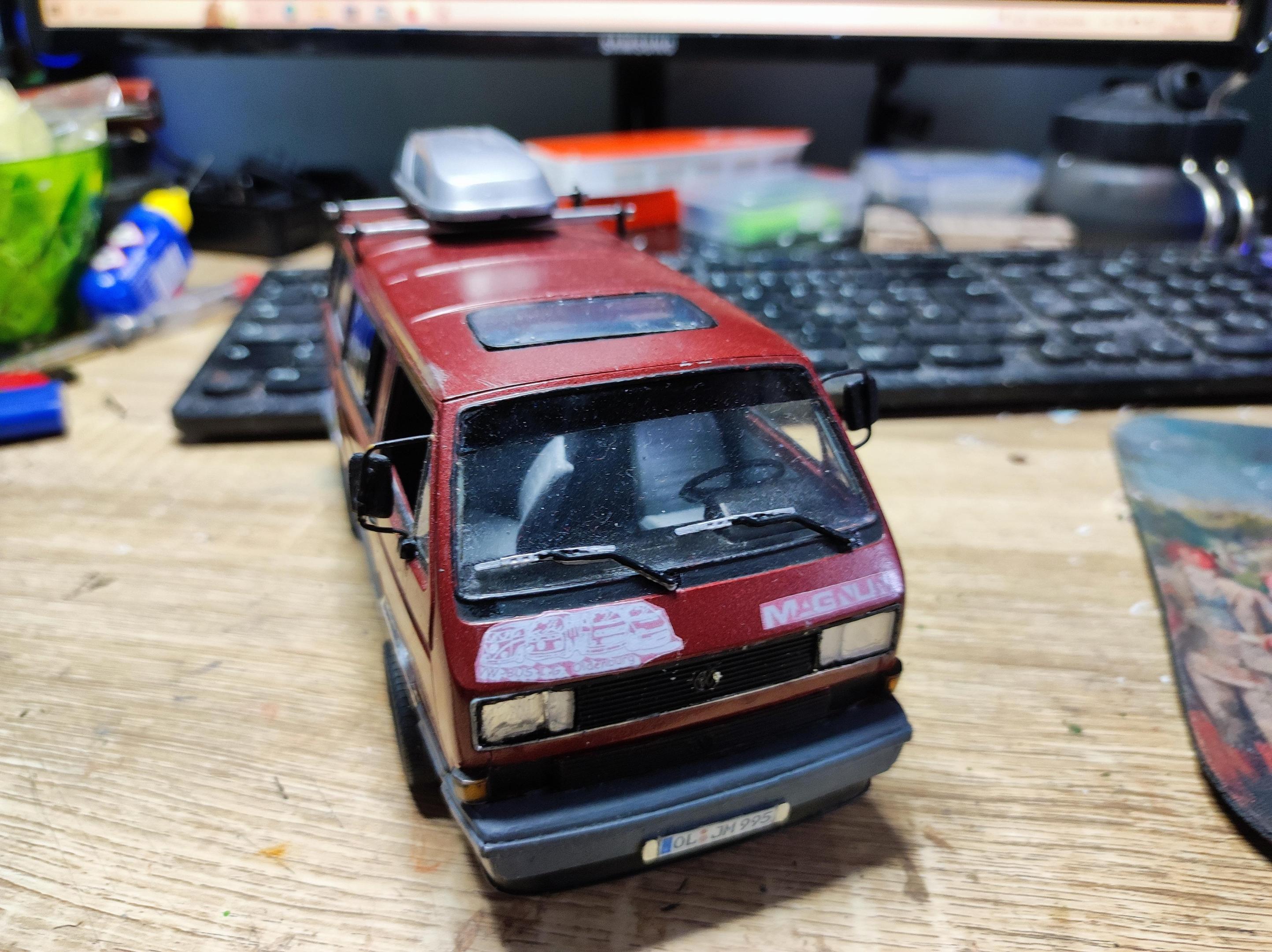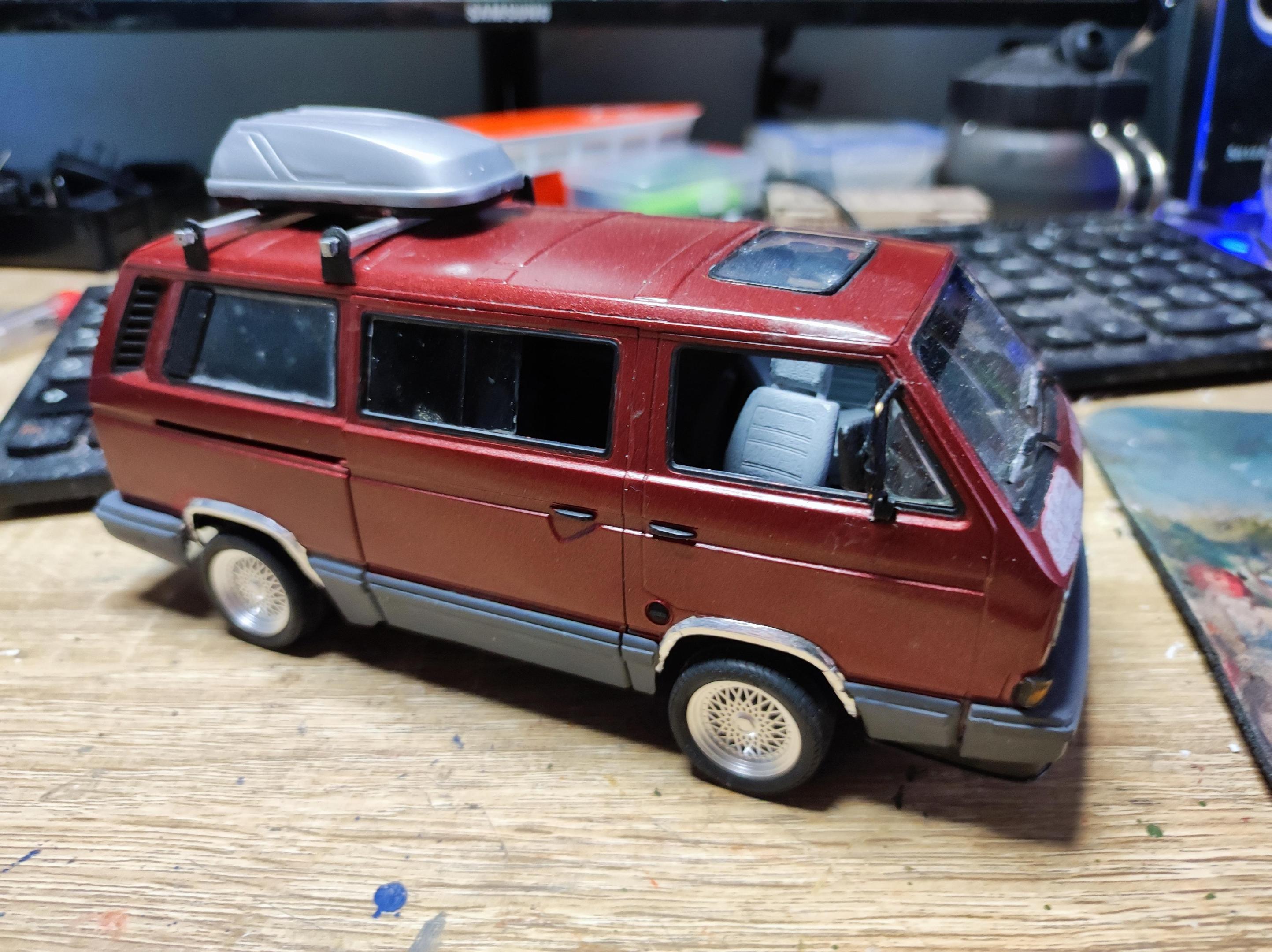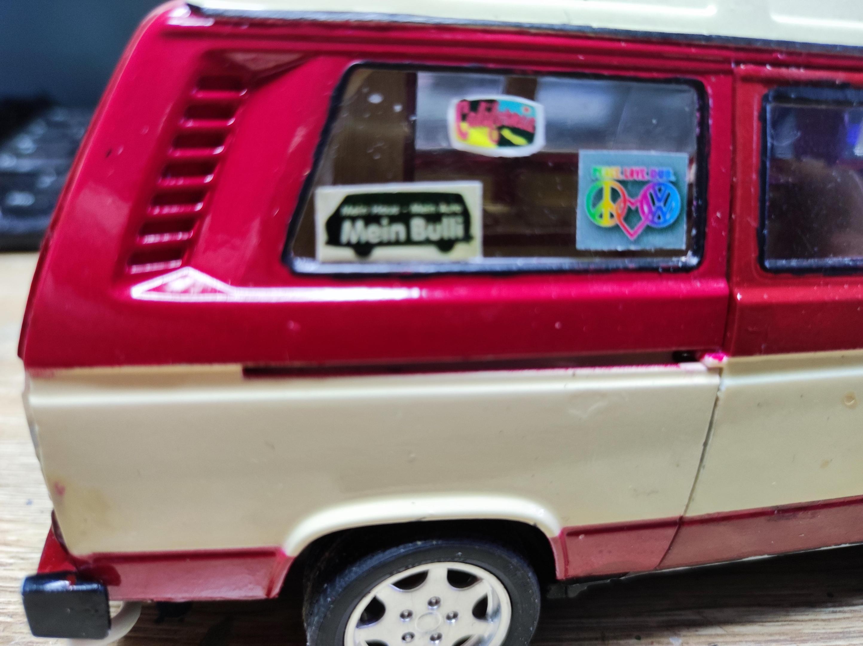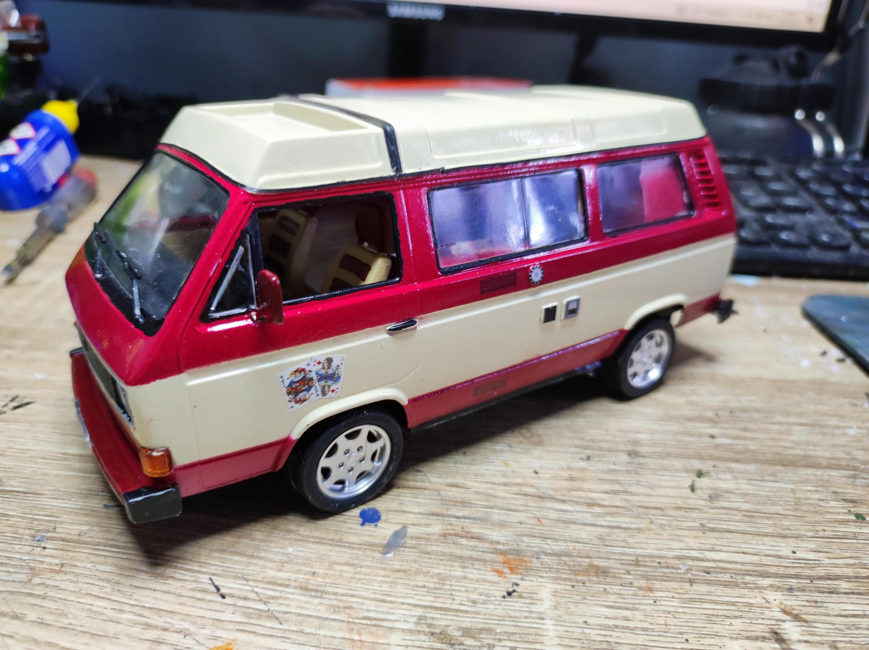 Hi Folks ! I like to show you an another Revell Camper. Based on a original car i 've seen several years ago. The pics , that i snapped , got missing on my pc by defrag / new start or other mistake. So build this car from my memory. The car was by a local shopping center in my town and i was very impressed. Some decals on the windows i print by myself . Enjoy the pictures. Coments are welcome . Greetings from Germany and happy modeling