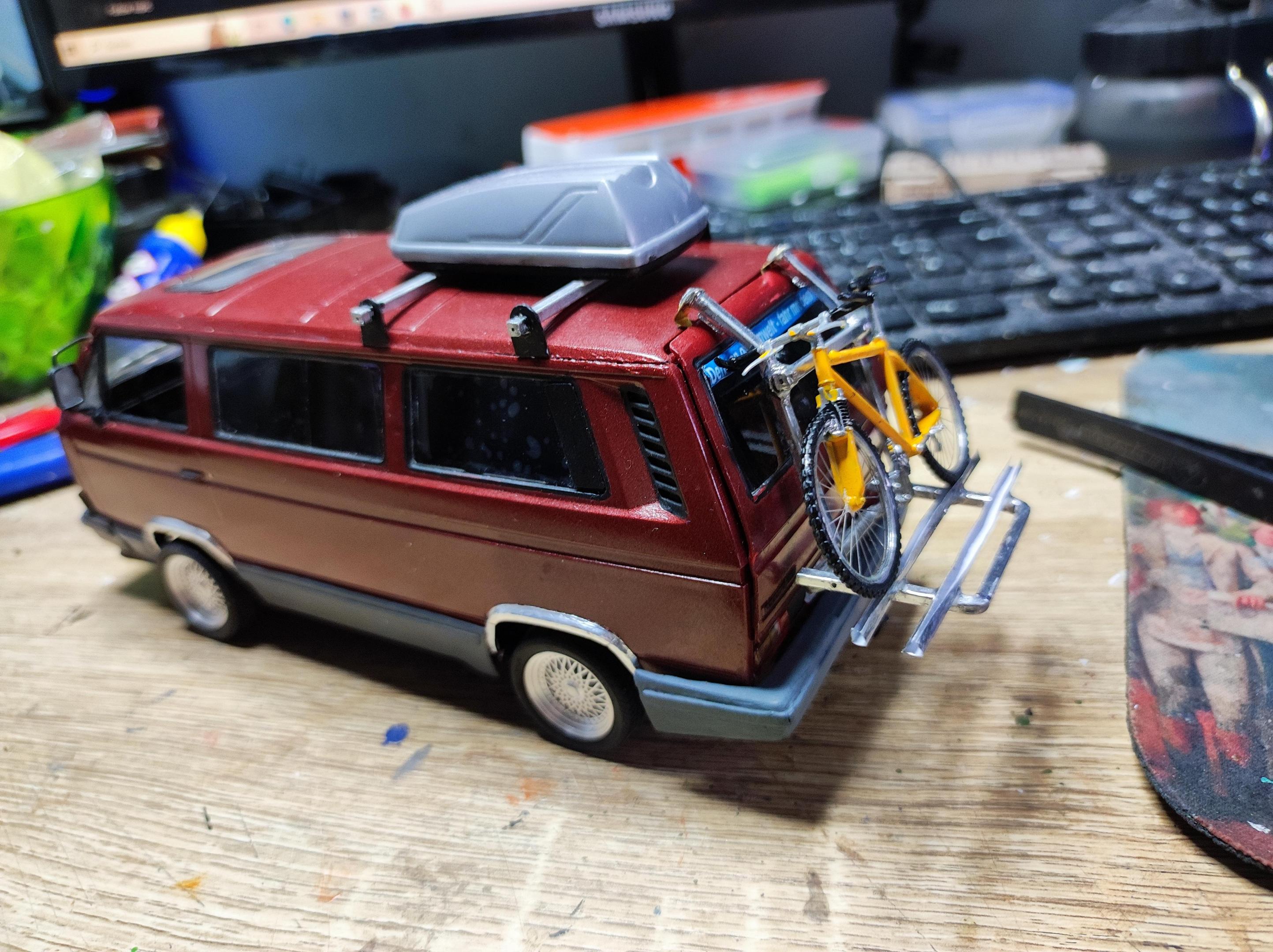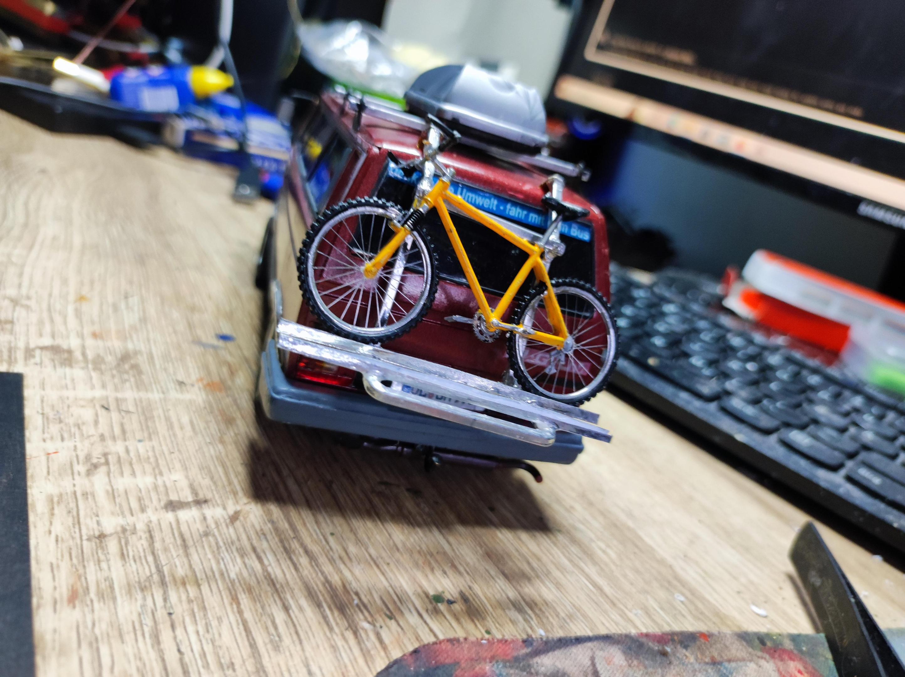 Hi Guys ! This was my car from 2003 -2007 ! It had an modified 1,9 l Golf 3 engine with a turbocharger, intercooler and oil cooler. The origianl car had also a lot of special items like a small flat screen tv, a satellite antenna an much more . this car model has a lot of scratch buildings like the turnable right front seat, a fridge , the planks around . the bicycle holder is scratch build, too......enjoy the pictures. Greetings from Germany