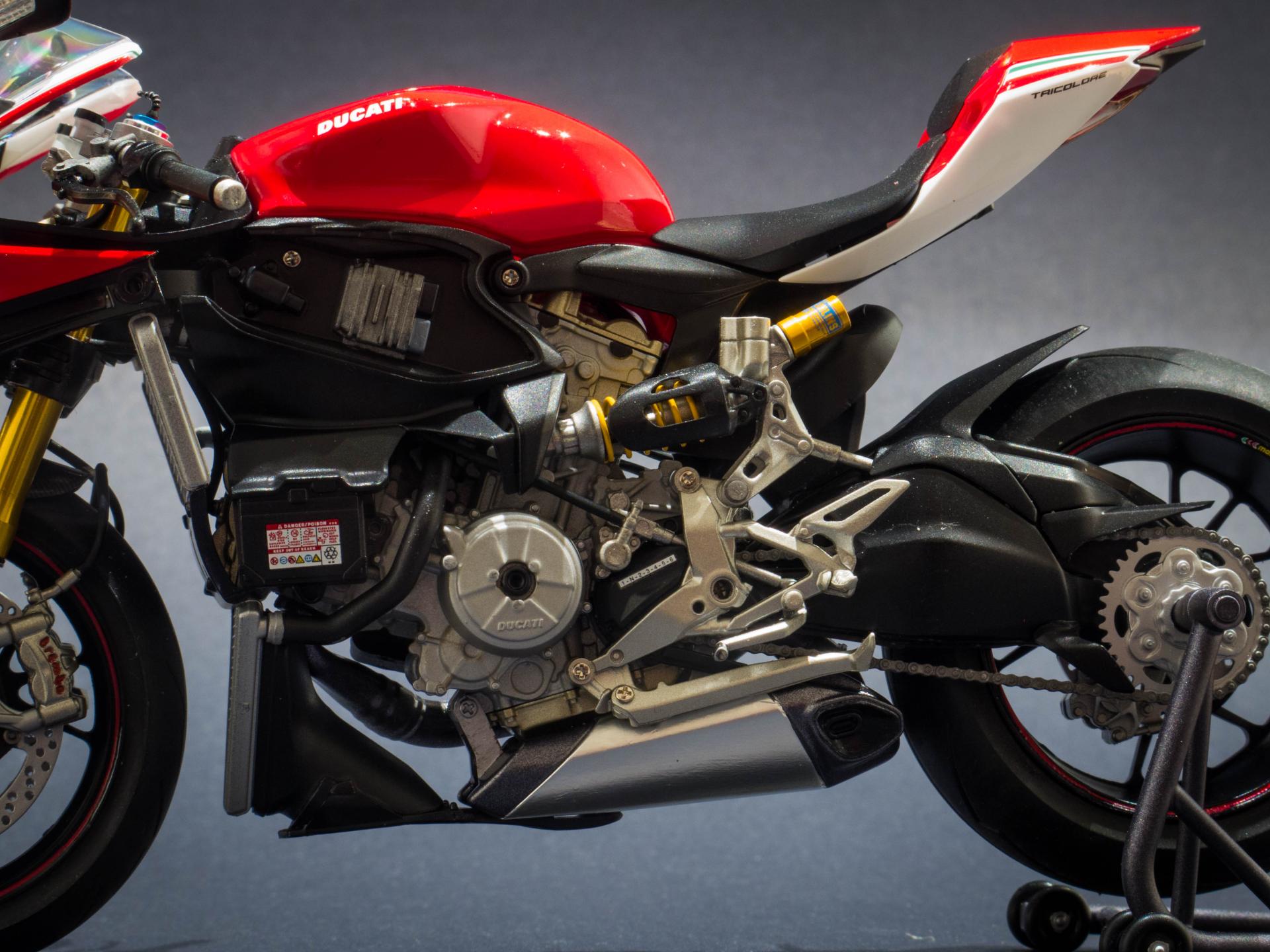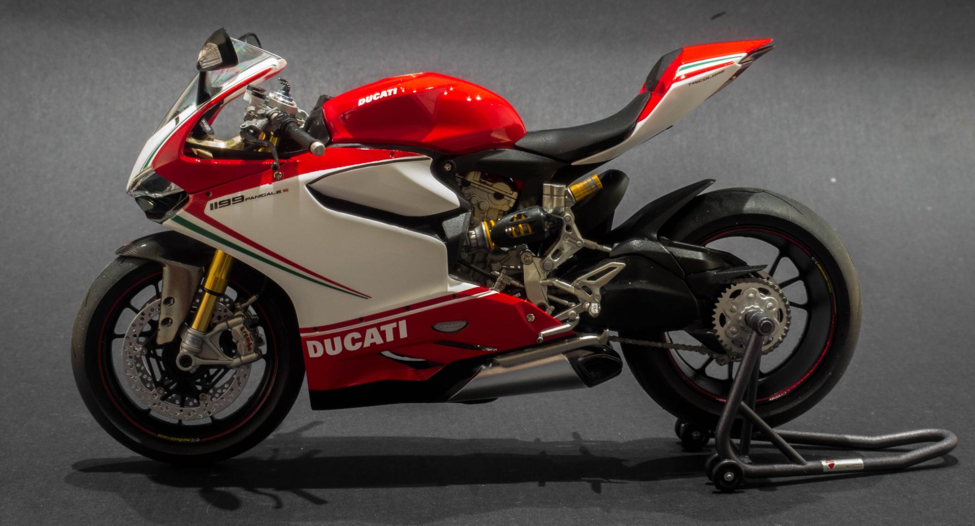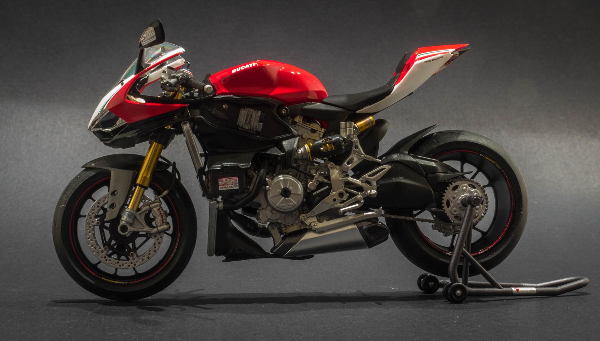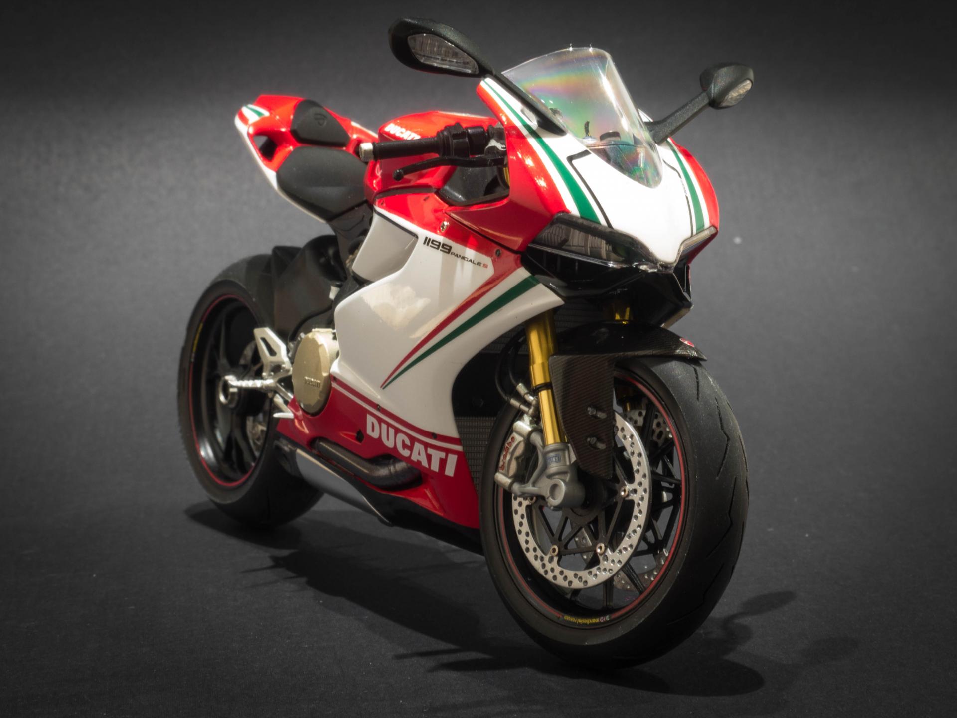 Hi all, Here is my first ever attempt at a motor bike kit. The kit in question is tamiya's Ducati 1199 Tricolore in 1:12 scale. This is my favourite motorbike, I really like the design of it and how everything is packaged so neatly in the body. The kit was very easy to work with, very little modifications had to be made. In addition to the kit, i got the detail up set from tamiya which adds metal suspension forks, rear suspension oil resivoir and disc brake rivets. for the little bit extra cost, I highly recommend getting this, as the added detail is unreal. Anyway, enjoy the photos below. Thanks