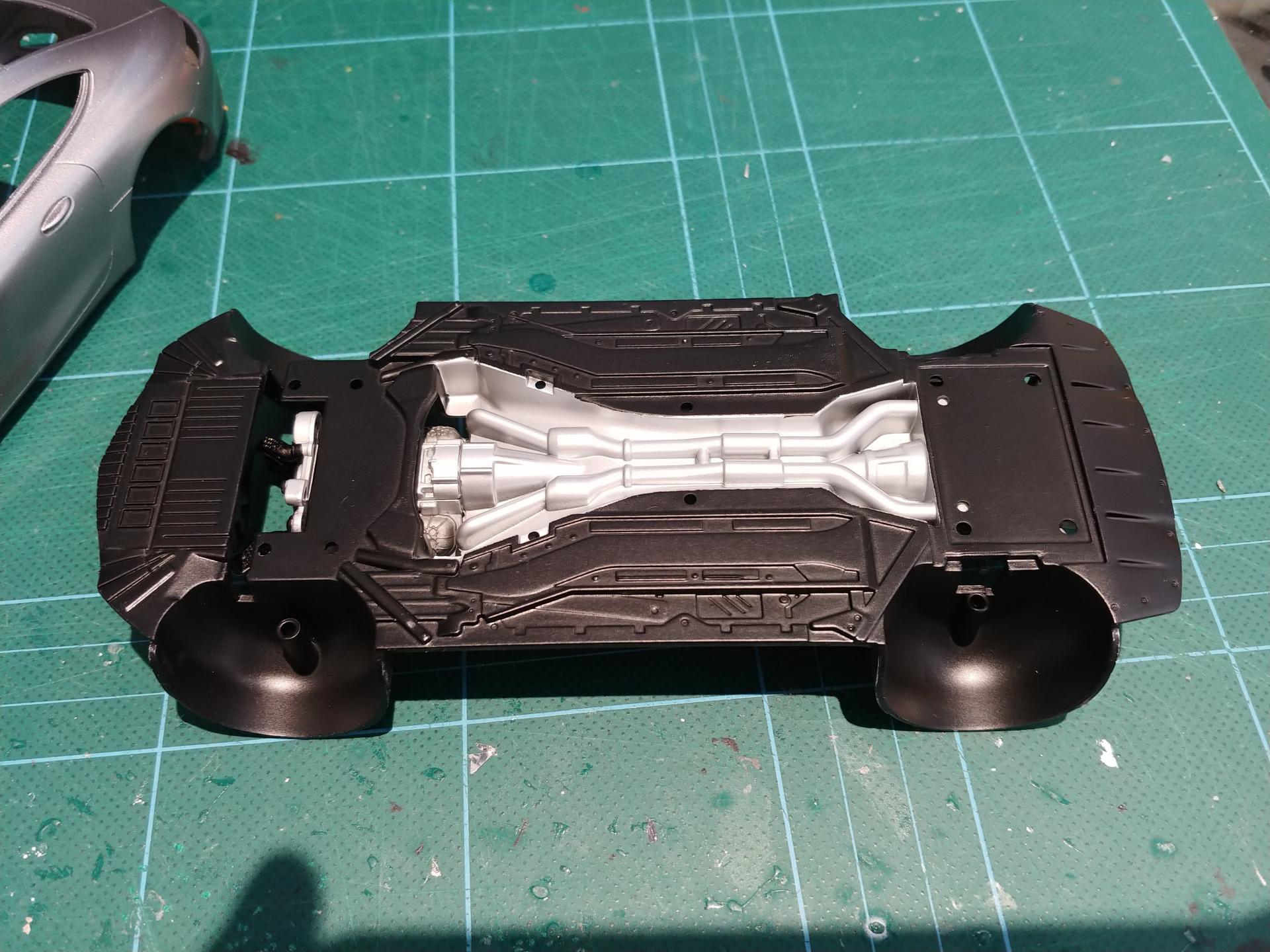 Hi All, The other week, i was overseas for work, and went to a toy shop near by to get some presents for my nieces and nephews. The store also had a small hobby section, so i couldn't leave without getting myself a present too I bought the Revell AMG GT kit along with the Revell Mk1 Golf GTI, which i will build sometime in the future. Normally i dont like revell kits, but i heard that they have gotten better. (we'll see) first up i sanded back a few mould/part lines on the body and prepped it for painting. My plan for this build was to do a matte or semi gloss colour to do something different. Tamiya have recently come out with a new colour for their GT3 version of this car which is a semi gloss light gunmetal. My LHS didnt have this colour in stock, so i got the Gloss version of the colour (TS42) and will do a Semi gloss clear coat over the top. This kit does have some engine detail, but like most new cars, it as a large intake manifold / engine cover which doesn't allow you to see much of it. This kind of explains the limited detail revell have added to the kit. Its decent, but not great. Because of this i didn't spend a great amount of time on it, as you wont be able to see it once the kit is complete with the engine cover piece. Another strange detail is the rear diff and exhaust. Both parts have a decent amount of detail, but these wont be seen at all once the kit is complete as the chassis covers it all. Next part was painting the chassis. This is one big piece with moulded in exhaust and transmission. The chassis was painted in semi gloss black, then masked off and then sprayed with bare metal silver. I plan to add a few extra colours to weather the exhaust, but haven't done that yet. Thanks Nathan