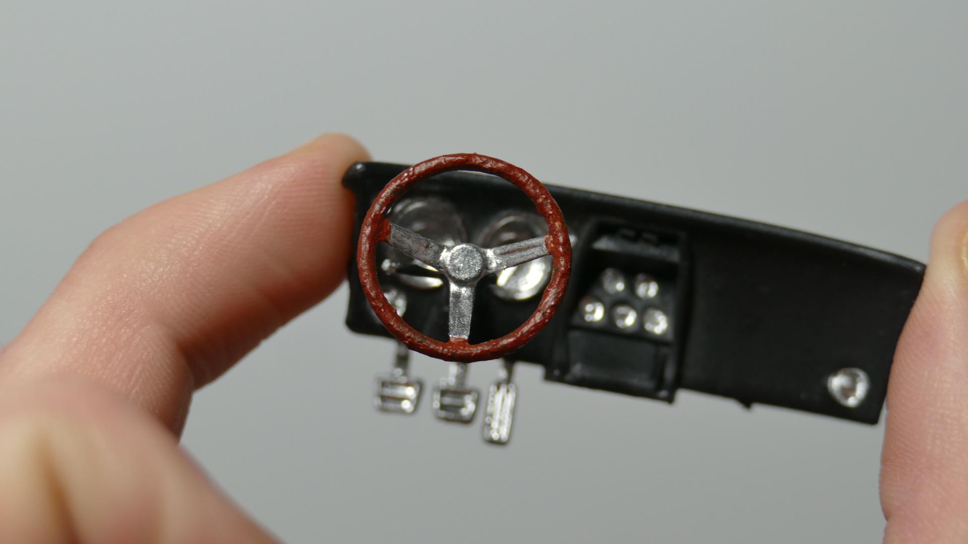 Okay so here is some progress... I decided that the interior was not detailed enough. I detailed the dash, door panels, etc. with my Molotow chrome pens. I love these pens! I'm currently working on the steering wheel, I'm giving it a "wooden" rim. Anyway here are some pics of the dashboard and interior piece: Stay tuned!!