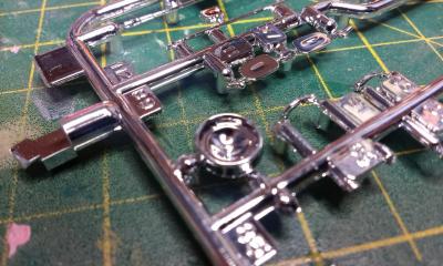 Headlamp bowls fitted, I just wish model companies would mount the chrome parts where the cut mark is going to be visible, thank god for BMF .... it was the same for the rear lamp housings, attached to the parts tree right at the top and side of the part.