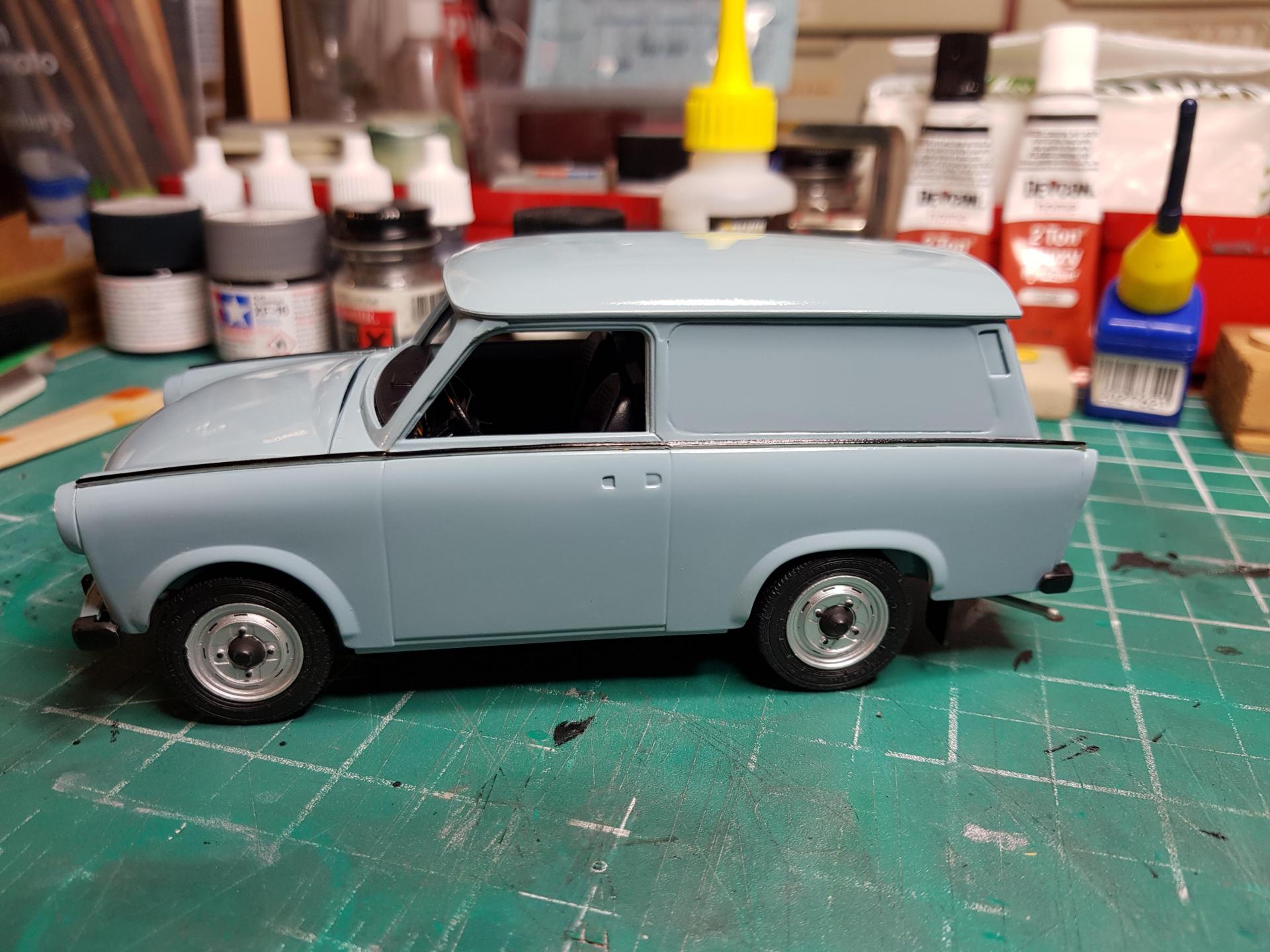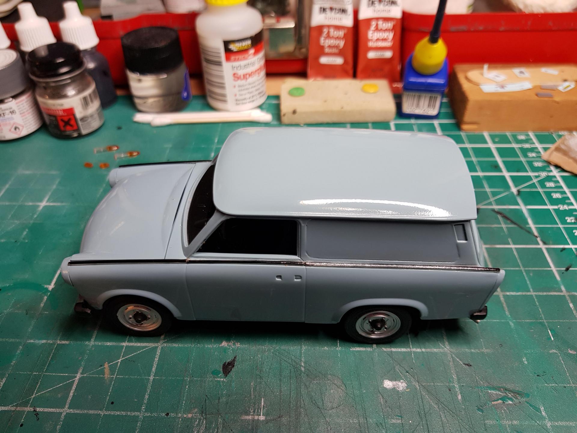That's everything painted for the Trabant Lieferwagen, just a black wash to add to the rear lamps and side vents, I'm hoping to get it finished this weekend.