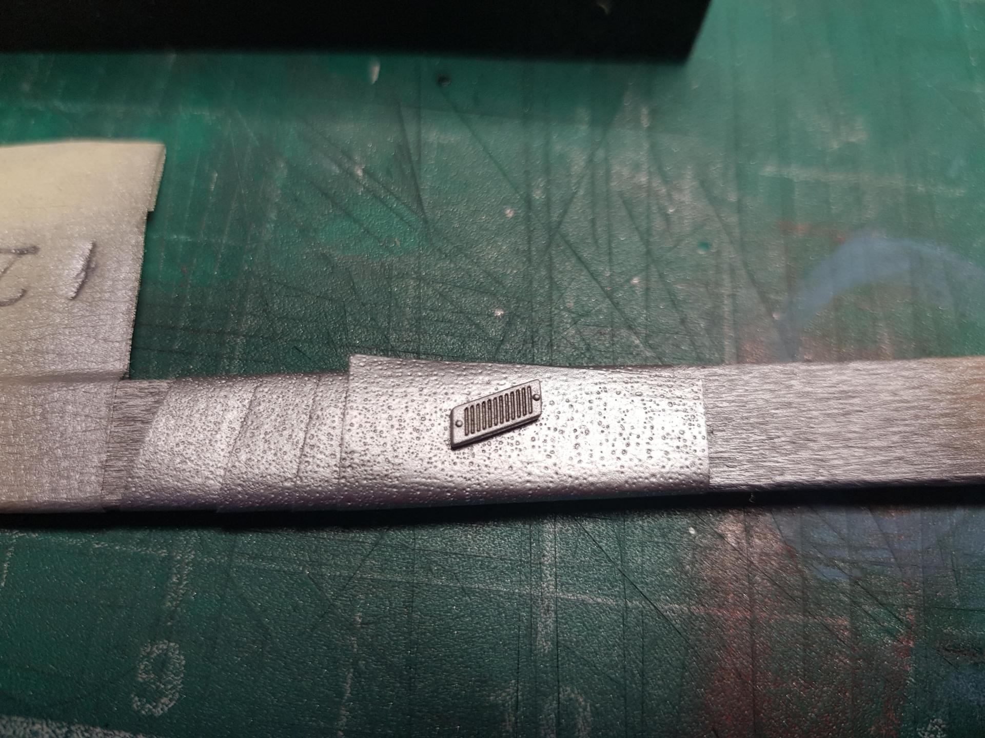 Carrying on with the smaller details, rear reflectors airbrushed using Tamiya clear red and fixed in place using some 10 minute epoxy ,rear C pillar air vents airbrushed using Tamiya Silver leaf and a black wash added to bring out the details, tow bar fitted,with the cap picked out using Tamiya red enamel.
