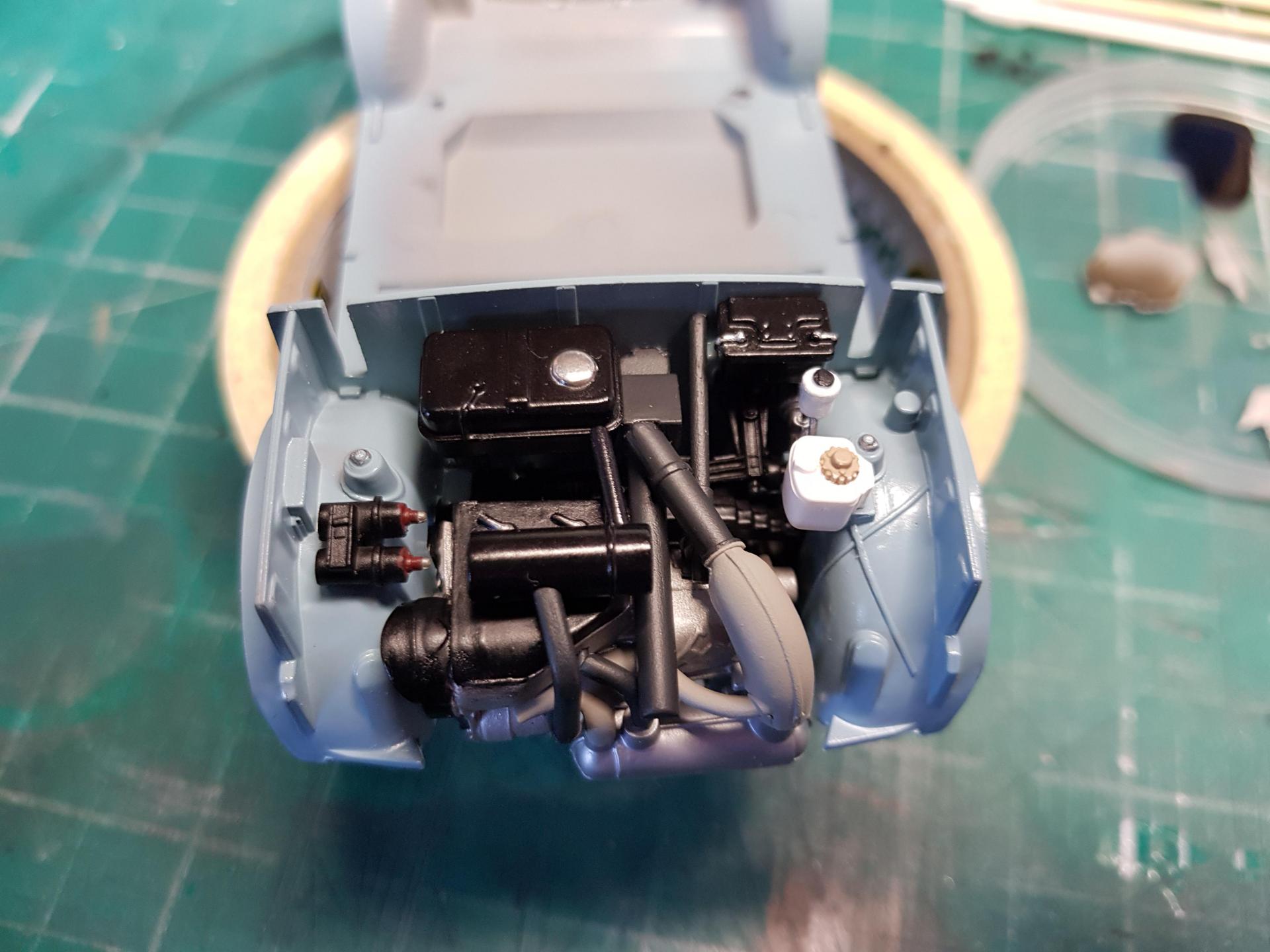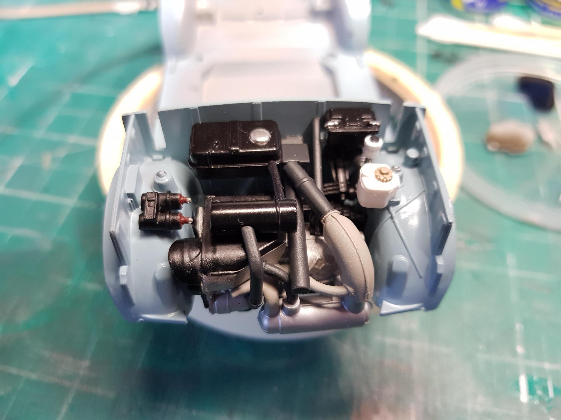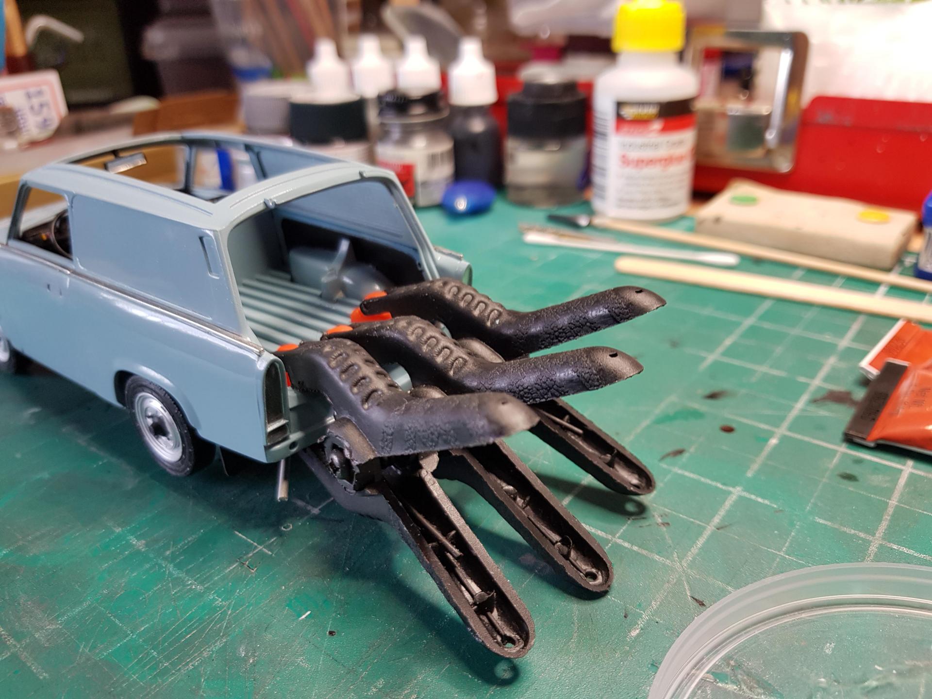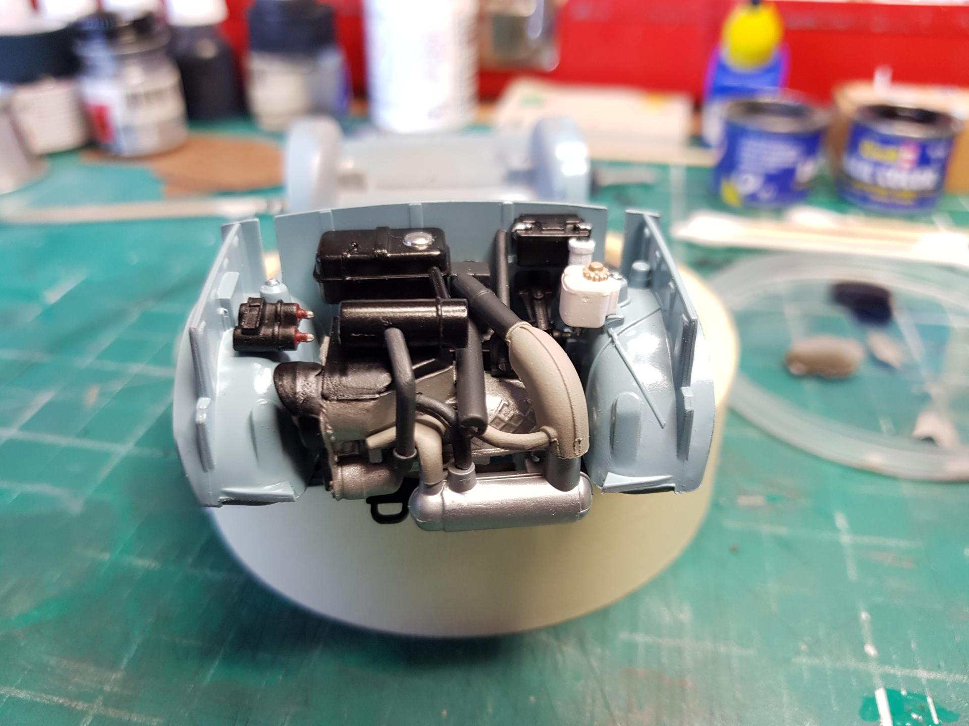Engine compartment finished, just the towbar to fit onto the chassis,although the Instructions say to fit it before the exhaust goes on, it will actually fit afterwards.