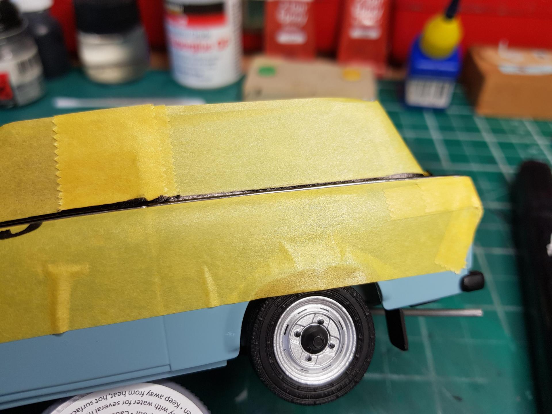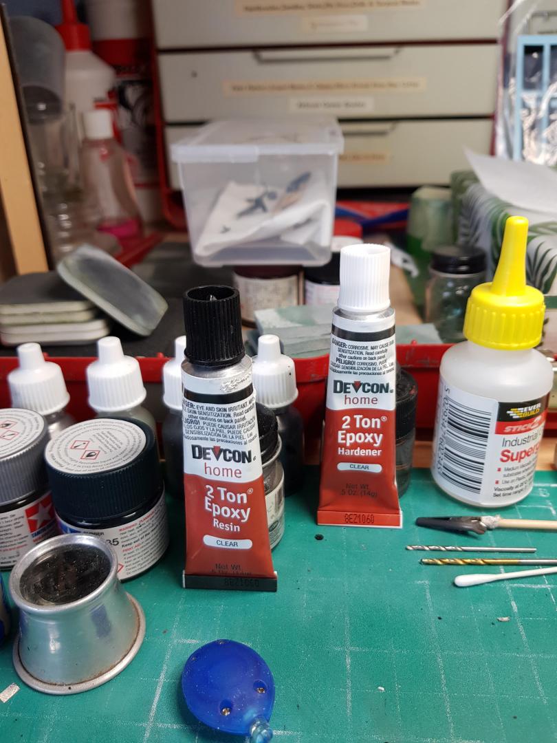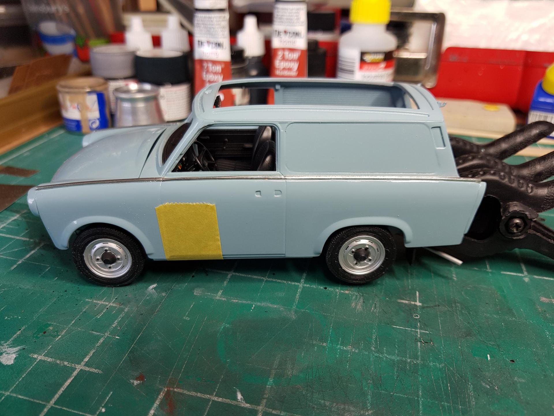 Thankfully the epoxy glue arrived this morning, so first thing I did once I got home was to glue the Trabbi together, I think the Devcon will be strong enough
