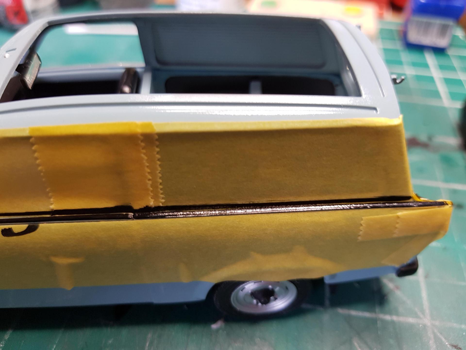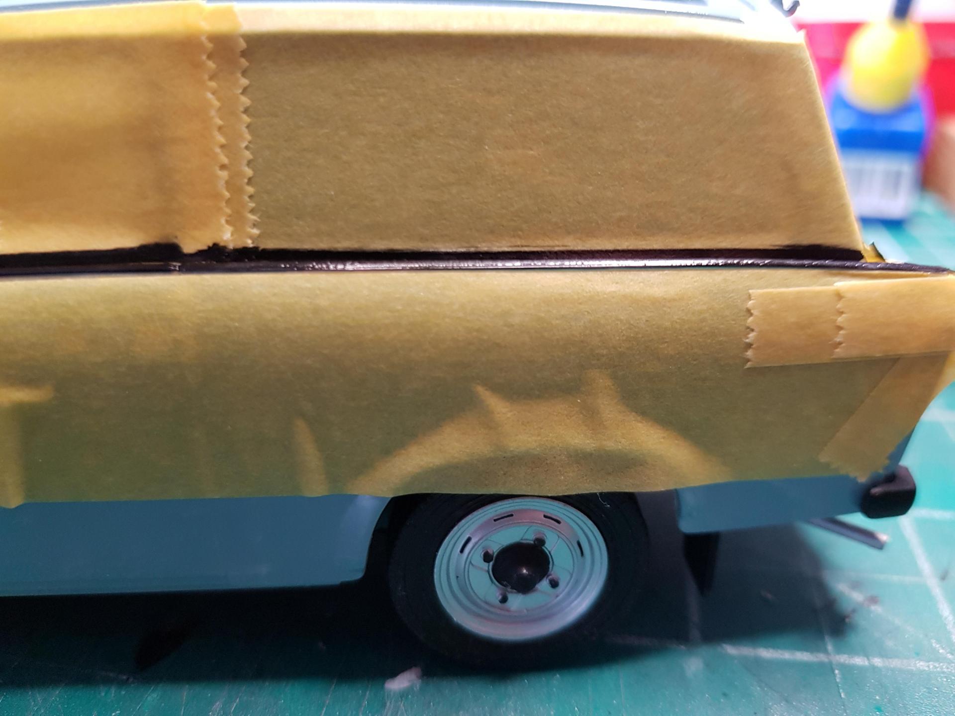 Rubber trim on the one side done, using a chisel edge permanent art marker, pretty hard to see under the bright light, it's the first permanent marker I've found that hasn't got a purple tinge to it when dried.