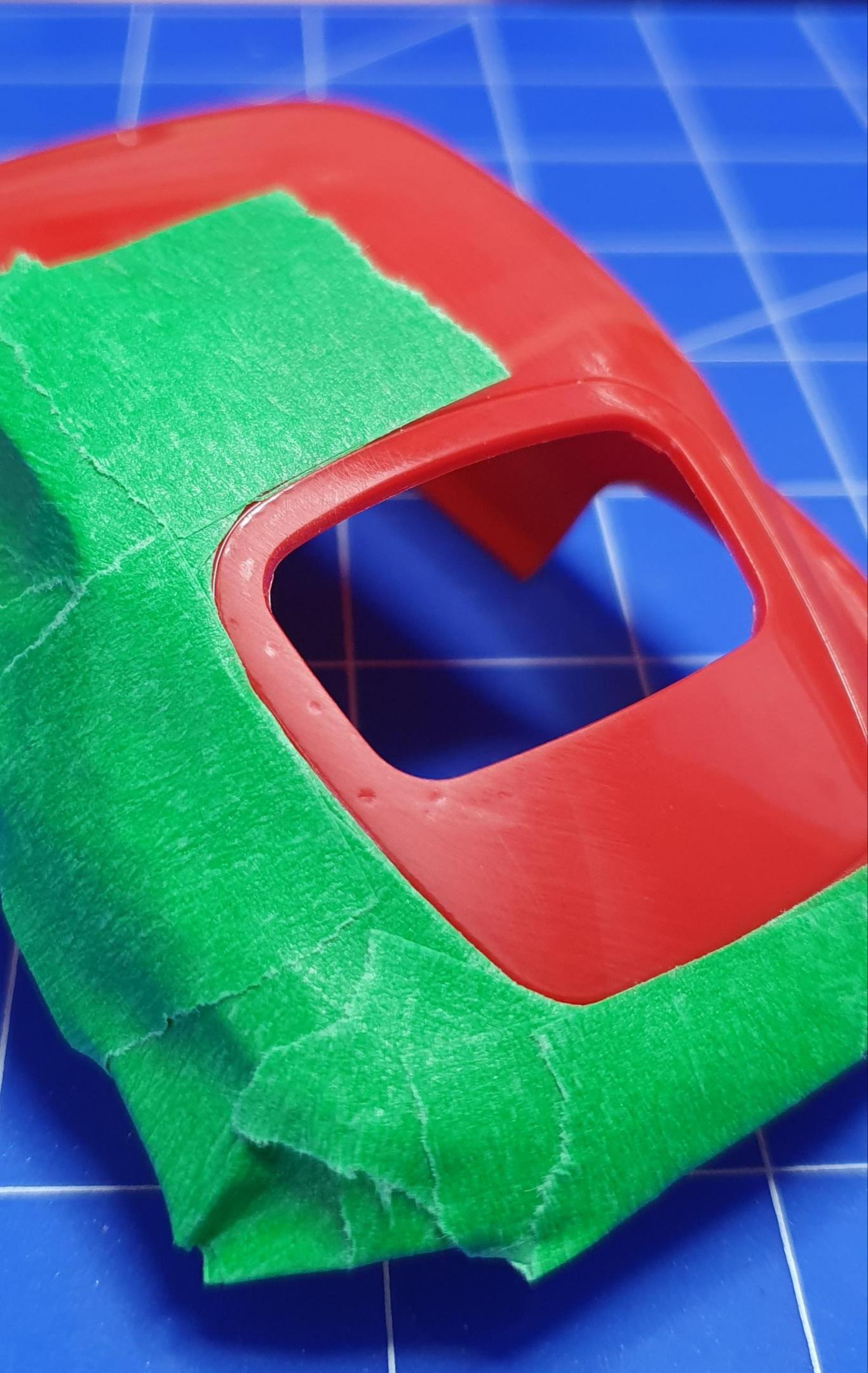 I use Hycote plastic primer, I buy there grey and white primer, decanted from the aerosol and mix them 50:50 so I end up with a very light grey primer. I found using Zero and Gravity paints, I set the airbrush at around 15 psi, and use the #3 needle and tip on my Paasche VL, put on a light coat to just hide the primer, leave it around 10 minutes and come back and do another light coat, and keep doing that until I've covered the primer completely, once I've got a good uniform covering I leave it to dry for at least 24 hours, then put on the acrylic clearcoat, again made by Hycote. -