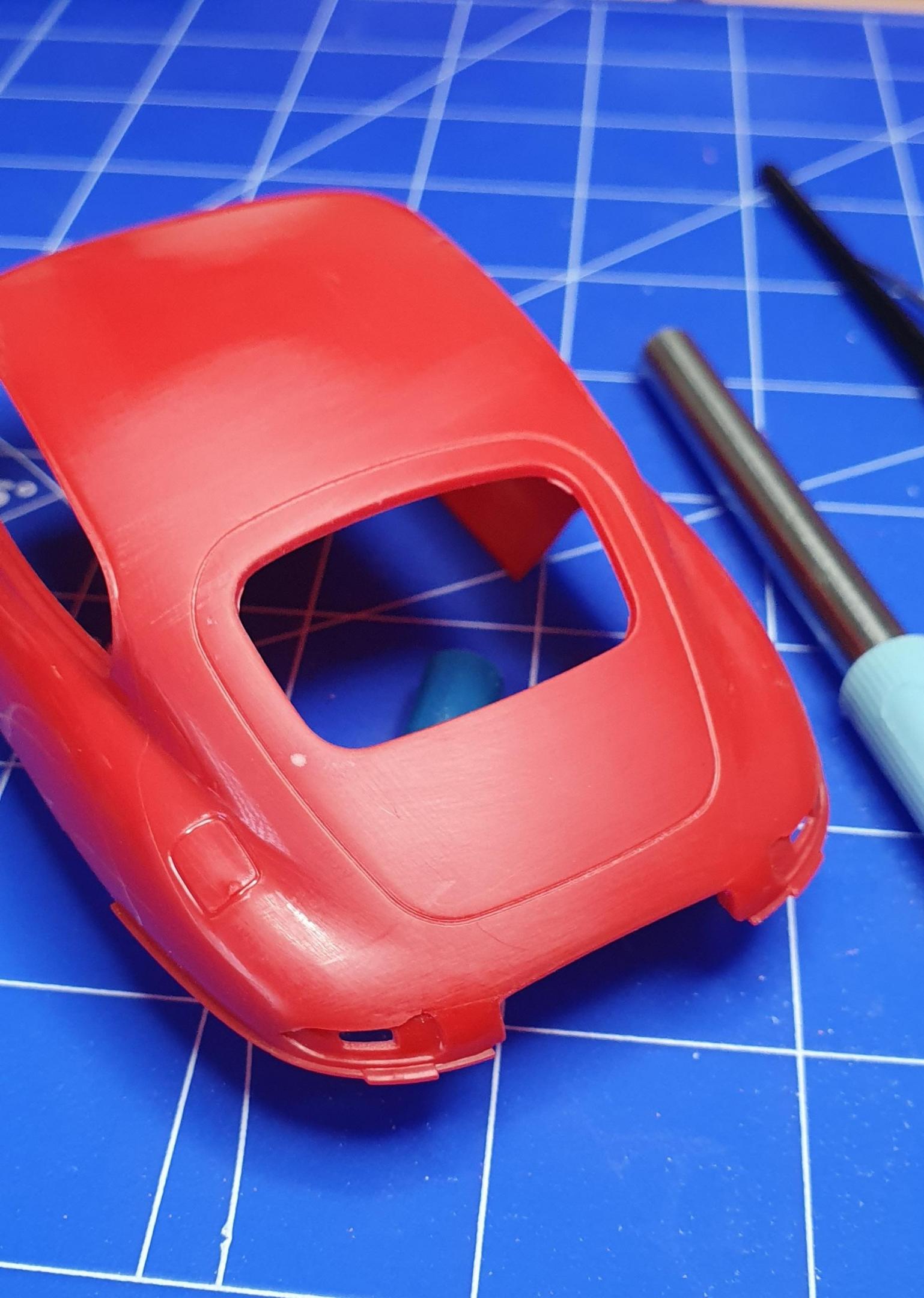 One thing I noticed about the bodyshell was the small sink marks on the tailgate, didn't take too long to sort them out, while I was sorting them out I noticed more mould lines on the rear quarters that needed removing, after I'd got the sink holes sorted, I rescribed the panel lines.