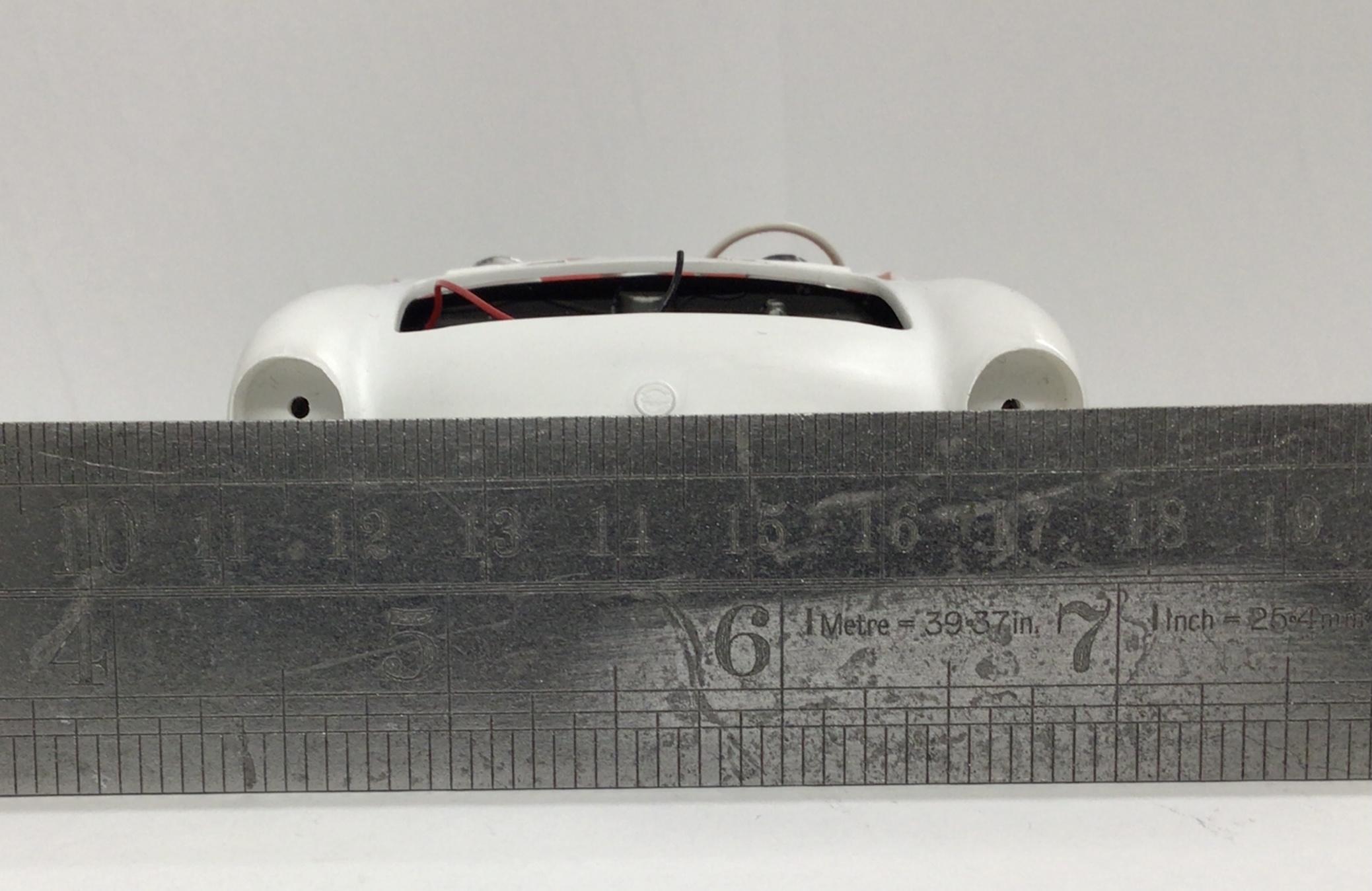 I made a new side mirror since I didn’t like the kit piece.? My first attempt on the right, second on the left…and what it’s supposed to look like. Close enough for me.? And the kit piece.? And I managed to get some paint on it. I used Tamiya TS-26 pure white (I know it’s not quite the same as polo white?) from the can. The hood scoop outline telegraphed through even though I filled the groove with styrene and sanded everything smooth.? So It’s in the pond and will get a coat of Zinnser before another attempt. Then I got to work on the foil this morning, and I think it turned out OK.? The script and front emblem I foiled before painting. Now to fix that hood.