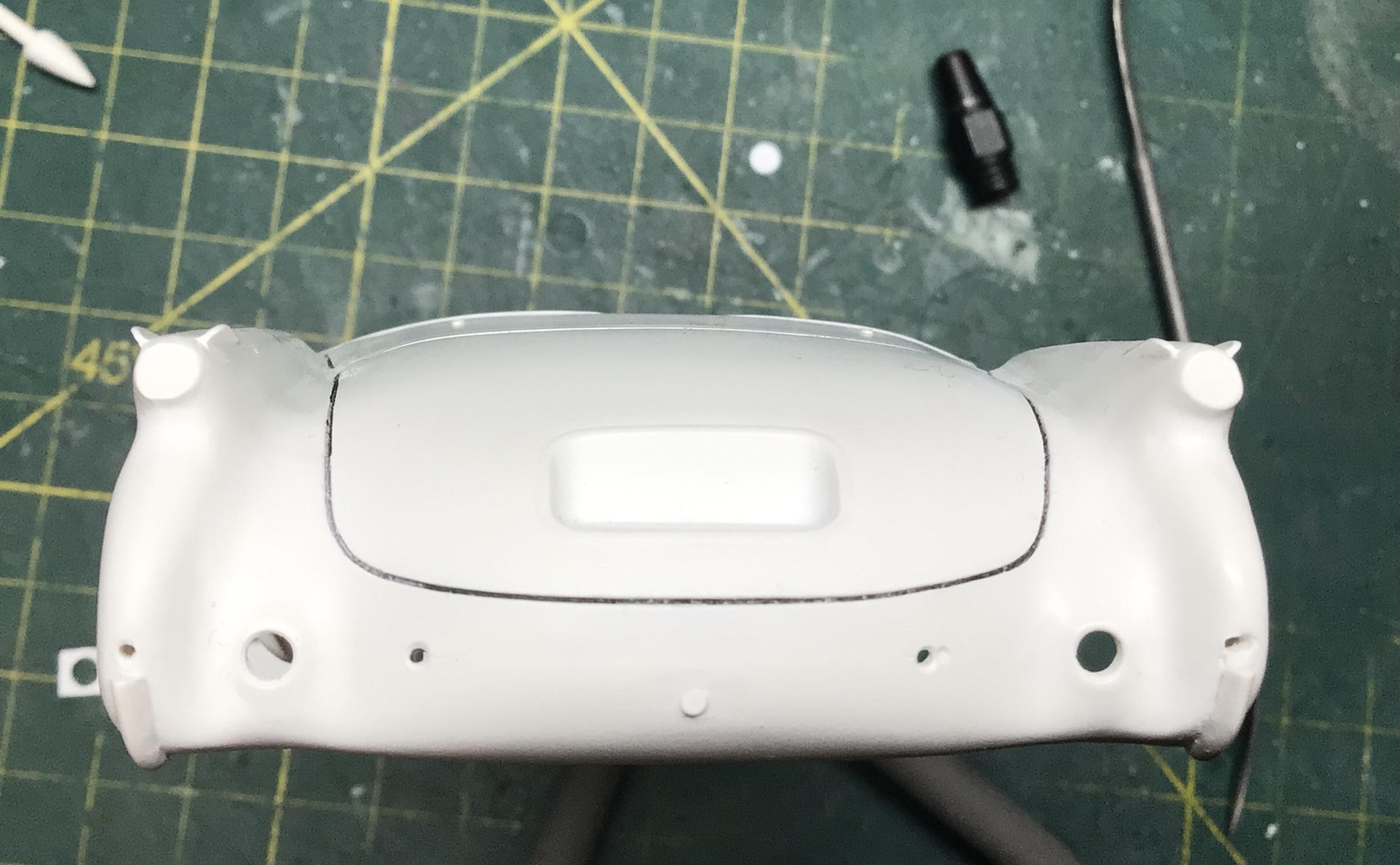 I scratch built a rear view mirror for it since the kit piece was ugly. I’ve been working on the body, smoothing some blemishes and I realized that the tail light mounting surfaces are too small and not even close to round. So I glued a couple of .157”x.015” styrene discs in place and added some Tamiya putty. It still needs a bit of finish sanding, but they fit a lot better now.?