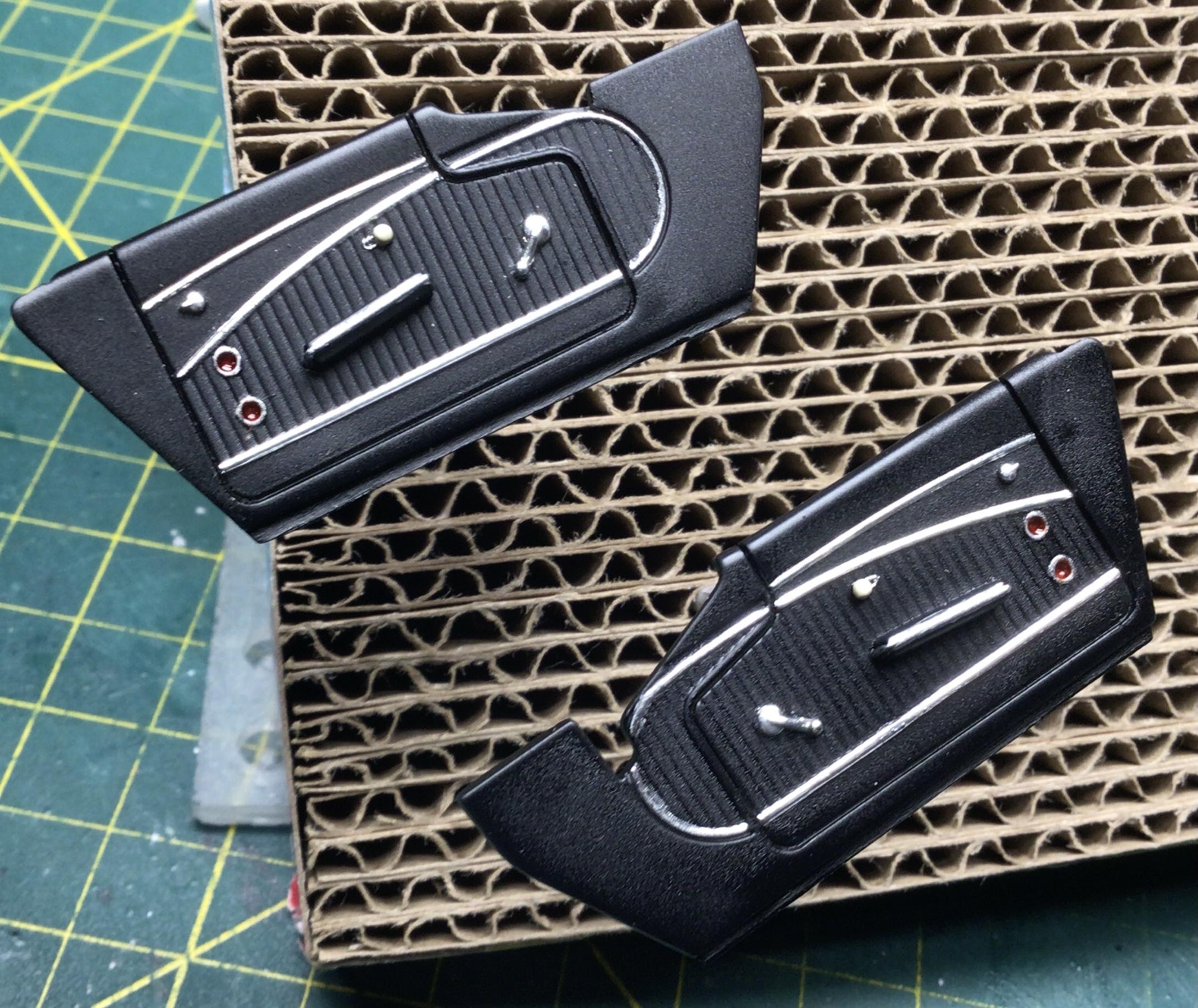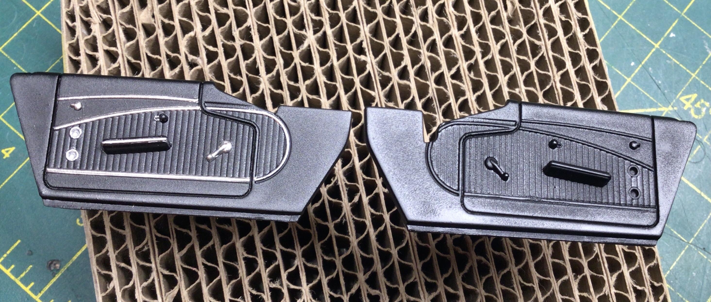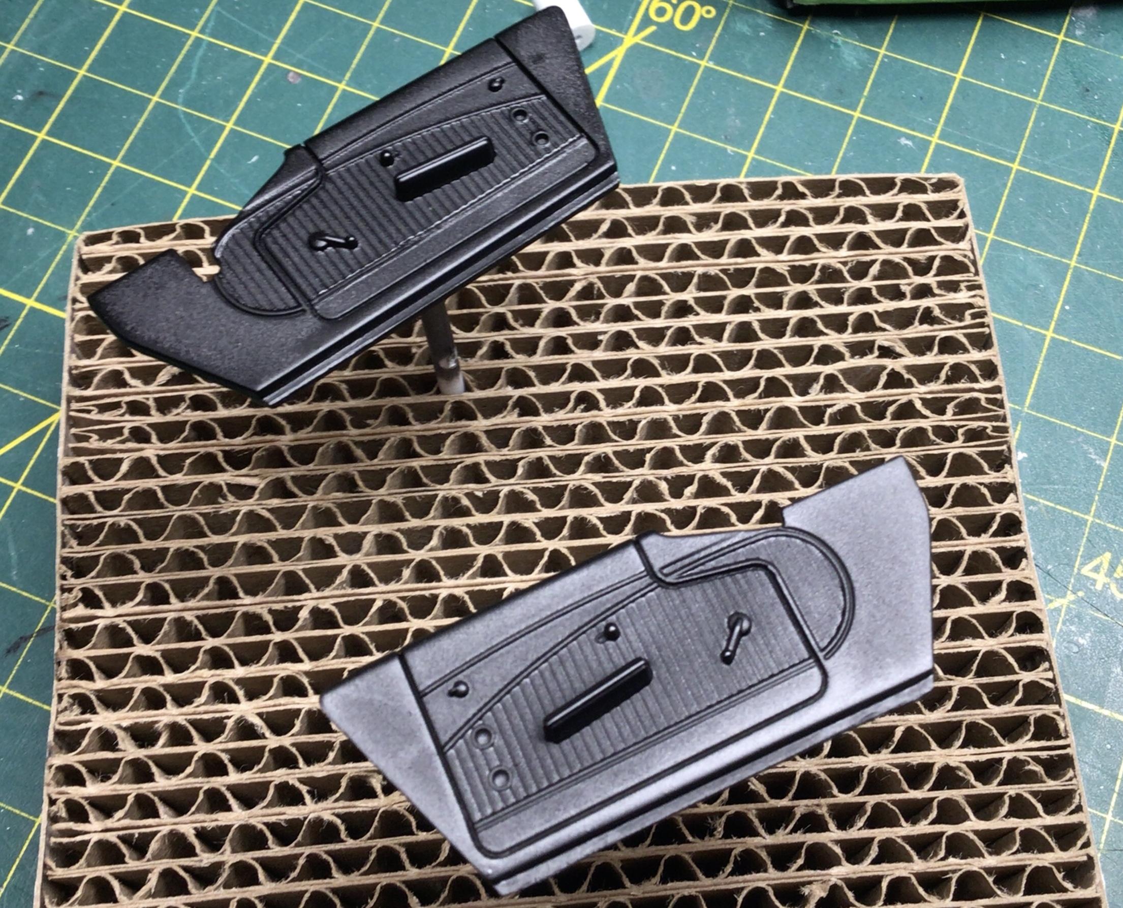 I got some black primer and SG clear on some of the interior parts, and got the door panels detailed. The dash needs a re-do and is in the pond right now.?