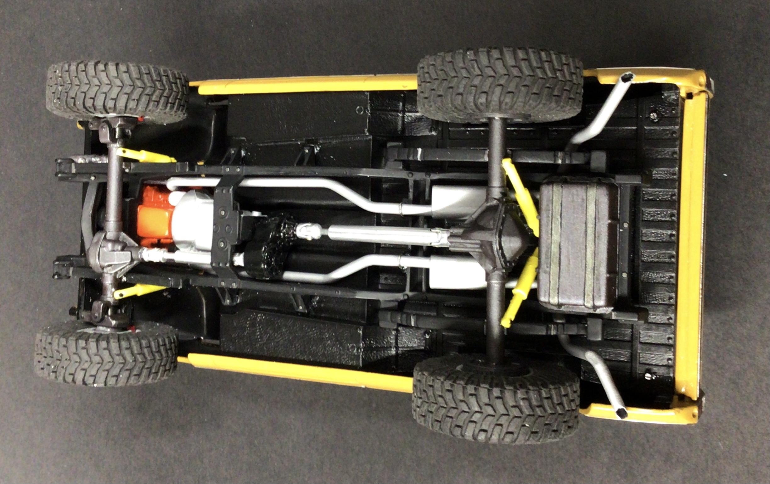 I made a cheap set of shock absorbers for it and got the interior installed and body mounted on the frame. I got some of the detailing done, and still a bit more to do. I have to scratch build some side mirrors yet and I see I forgot the center rear view mirror.? That’s all for now. -
