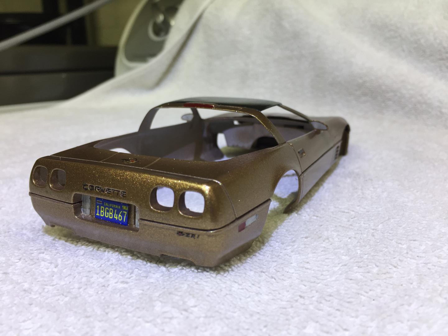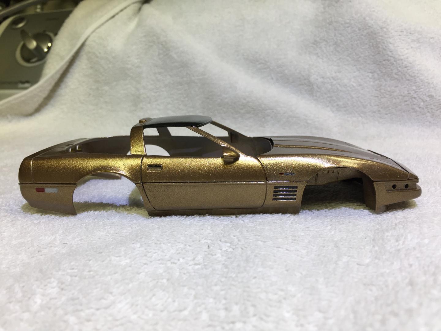 This is one I bought at a flea market. I stripped the blue paint off of it and found that the body was heavily crazed from whatever primer and paint the previous owner used. This paint is Craftsmart metallic brown thinned with and sprayed through my airbrush over Tamiya light grey primer, with 2 coats of Testors Aztec clear. I will likely give it a couple more coats of clear yet.
