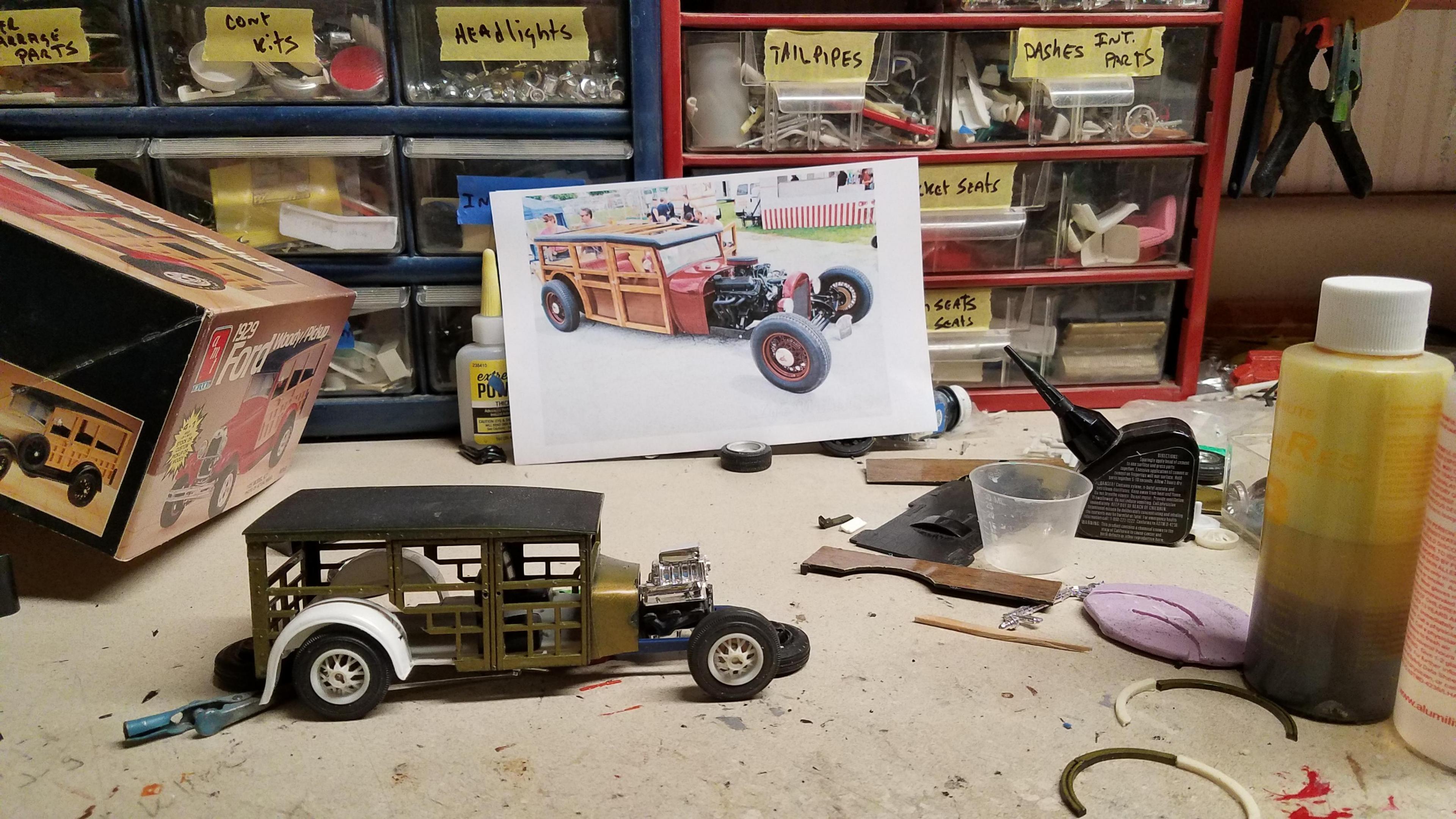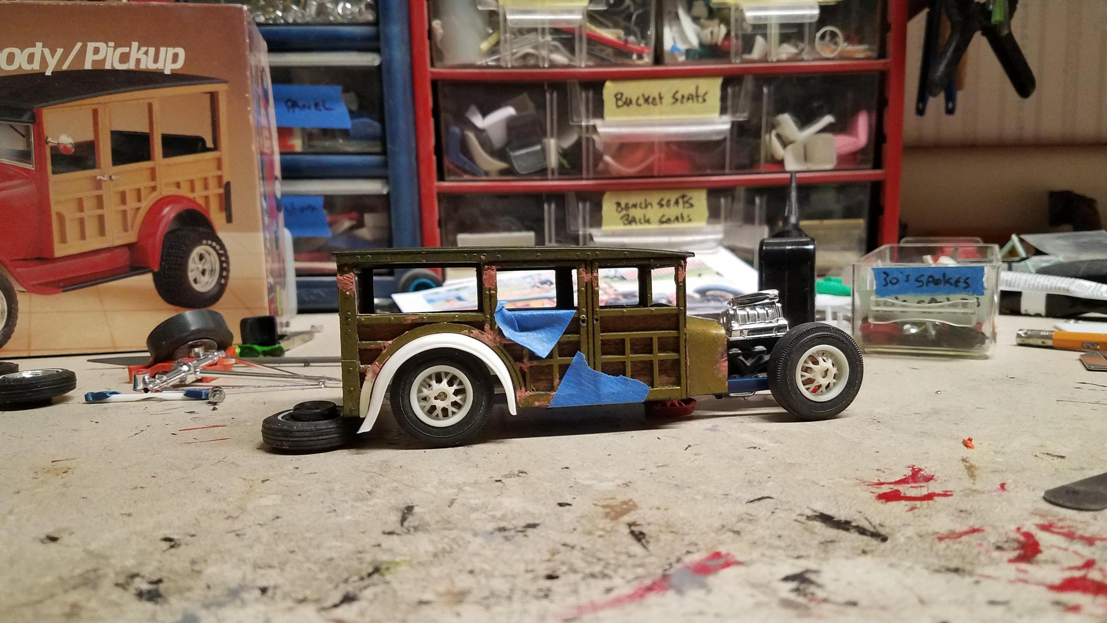 22. amt 33 willys coupe kit, 32 ford phantom vickie. vickie: the chassis is complete, floor, seat, dash, door panels were shortened little and trimed for back of coupe roof. the willys motor pins lined right up. just shorten. built 5/19/2020