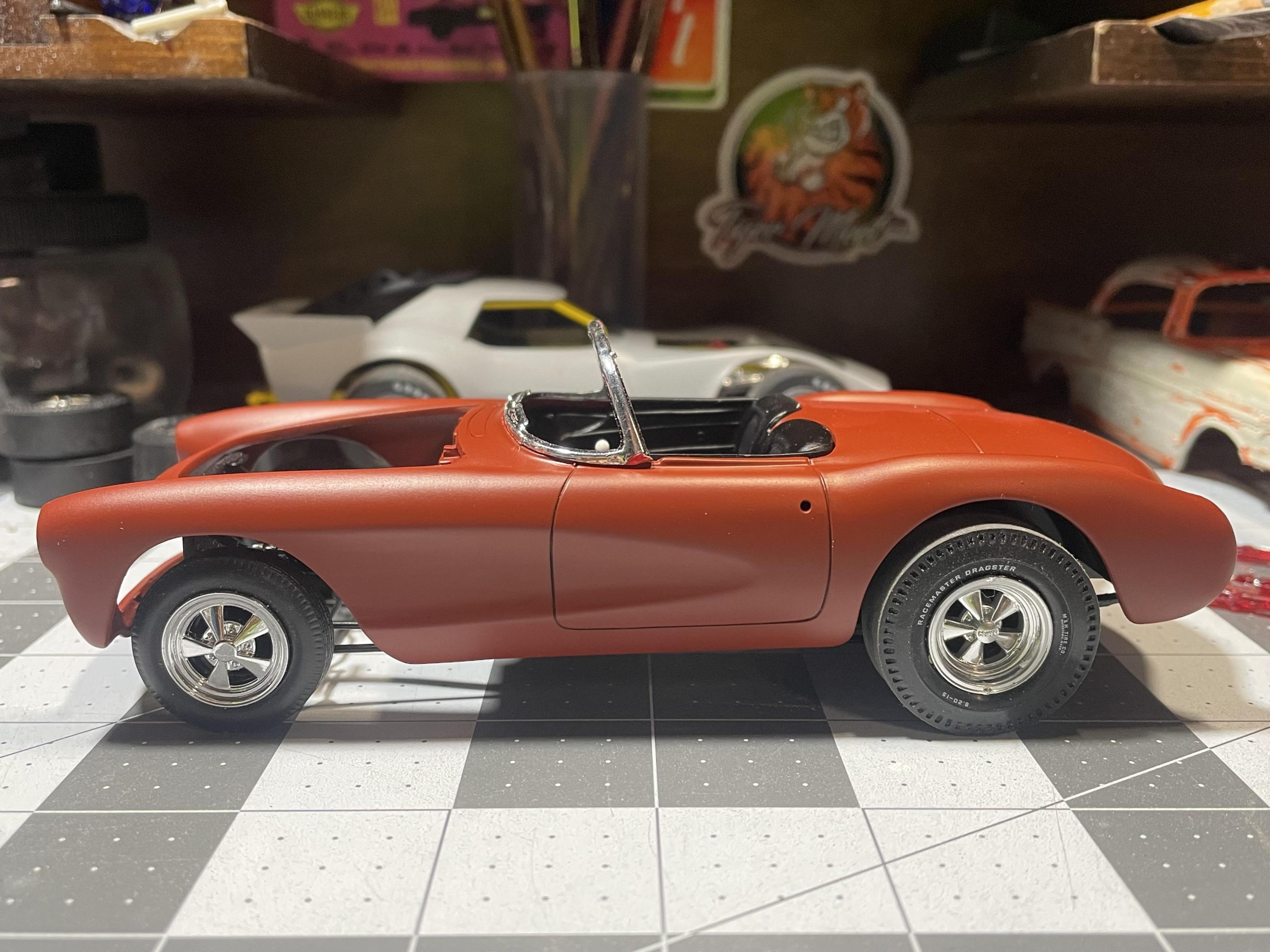 Well Eddie finally got all the suspension upgraded slicked the old body up and shot a fresh coat of primer. Pieced the interior back together. Now the rest of his funds will be spent on getting that big 409 thumping.