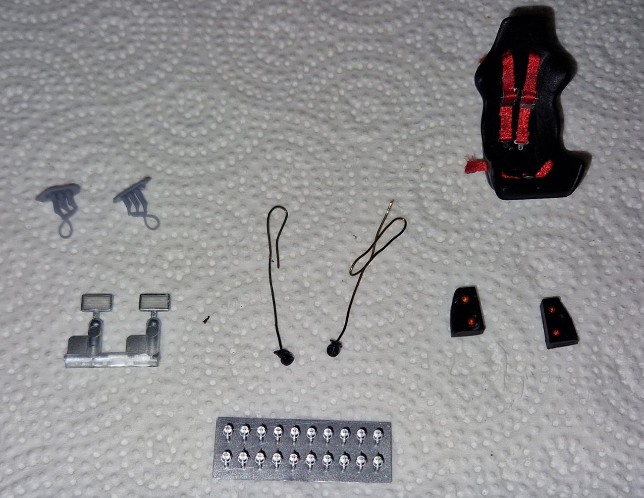 I have something for you again. I tried to replace the bulky windshield wiper with a 3D printed part. I continued with the mirrors. The belts were also installed. Of course, these are also printed parts. And finally I painted and fitted the lamp lenses.