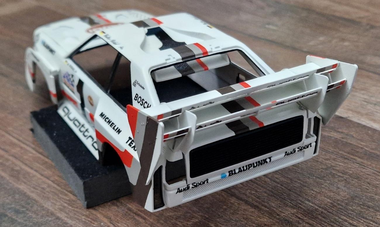 After a long time, the work continues. I have completed the marriage of the body, interior and underbody and then fitted the rear diffuser and spoiler holder. The spoiler is still loose at the moment. It was quite a hard job to connect the holder with the underbody and the diffuser.