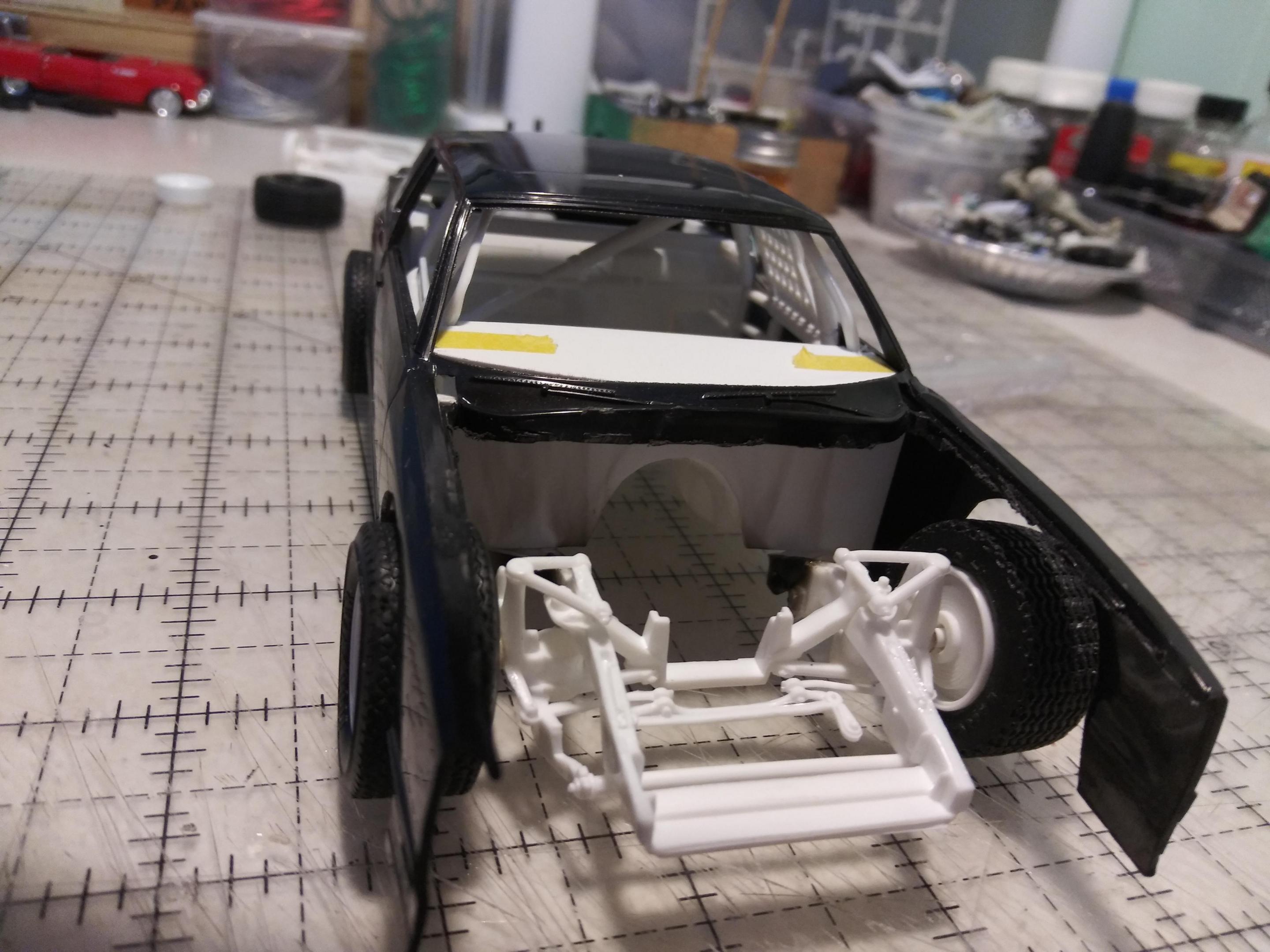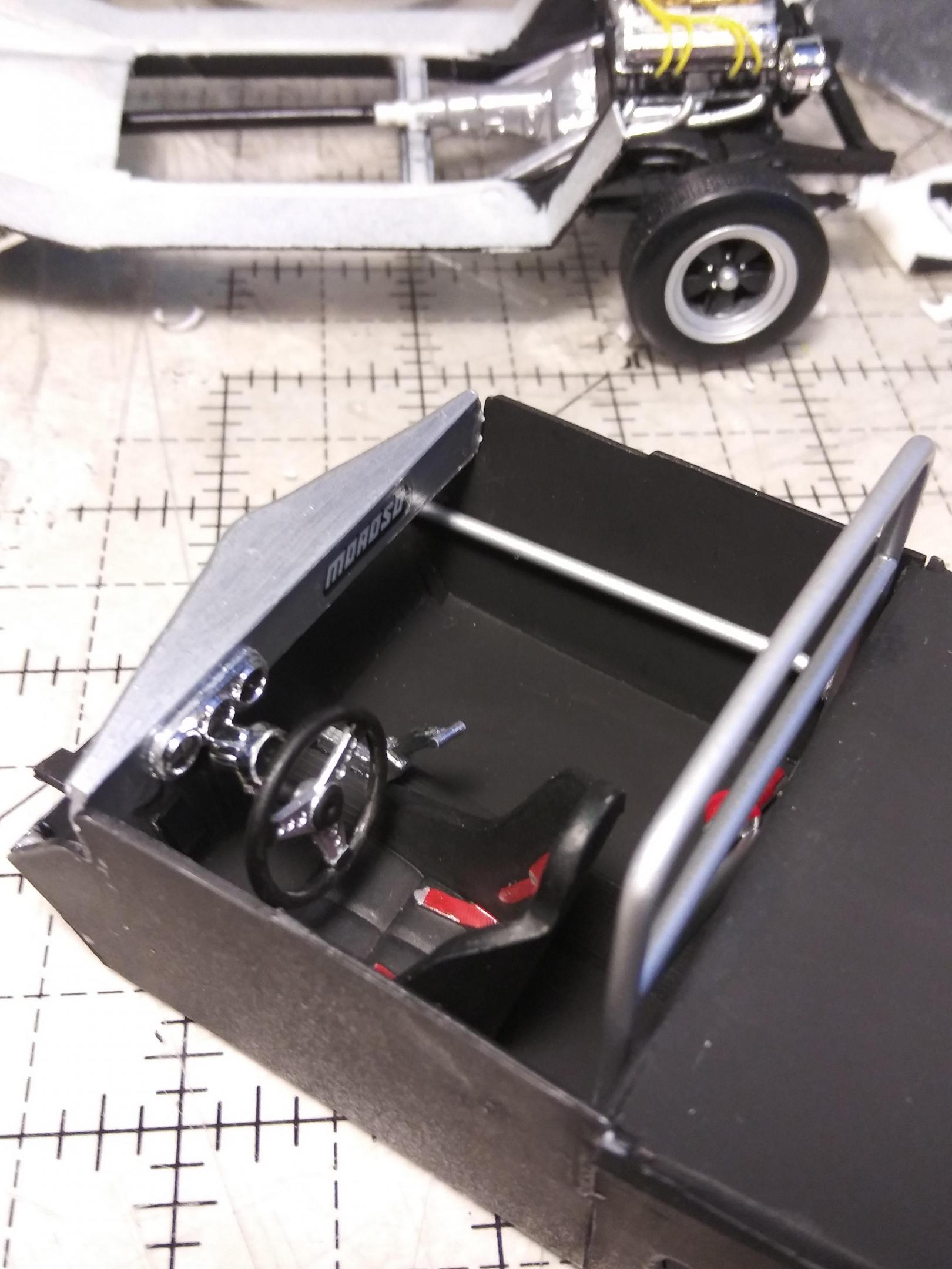 Making a little progress on the street stock. Got chassis fitting. Made some interior panels and firewall. Going to scratch build all the support bars for the front. As always comments welcome. -