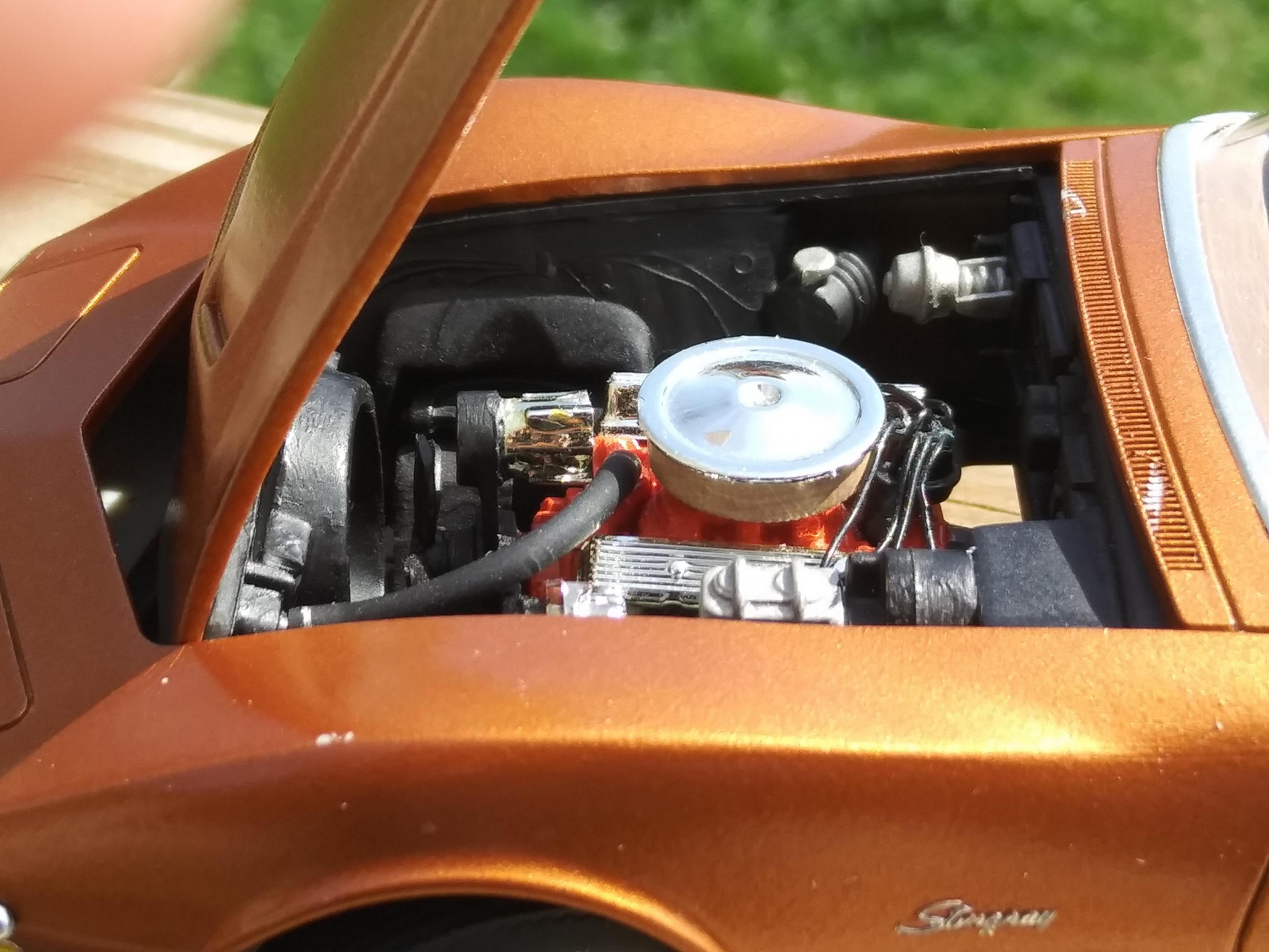 Just finished this one up. This one had bean on the back burner for a long time. Had somehow lost the hood for it. Finally got my hands on one. Neighbor had a 70 big block 396 when I was in my teens, just thought it was the ?. So I tried to replicate it from the 72 AMT kit. Still have a few details to finish. Think it turned out pretty ok. As always thanks for lookin and comments are always welcomed.