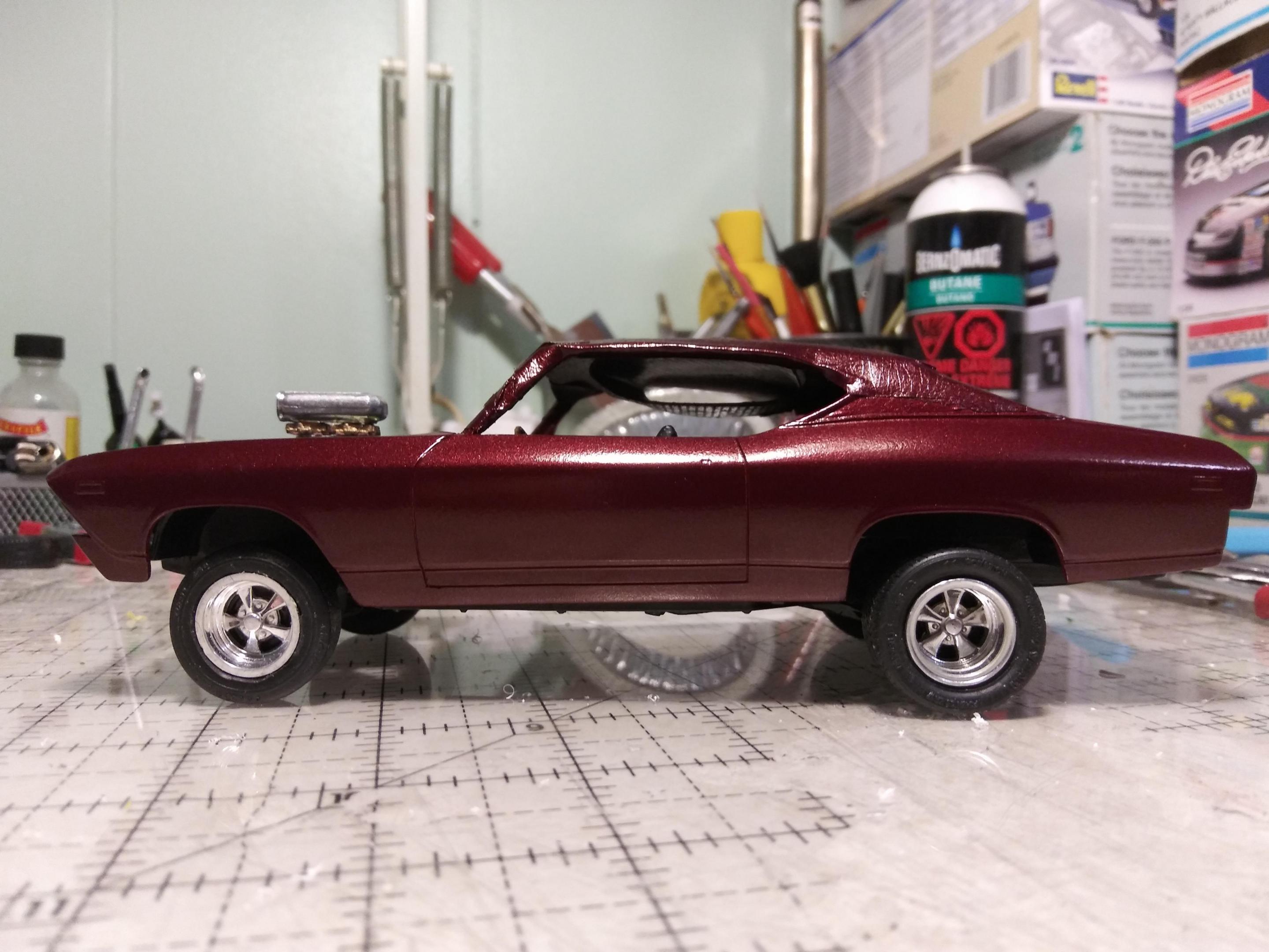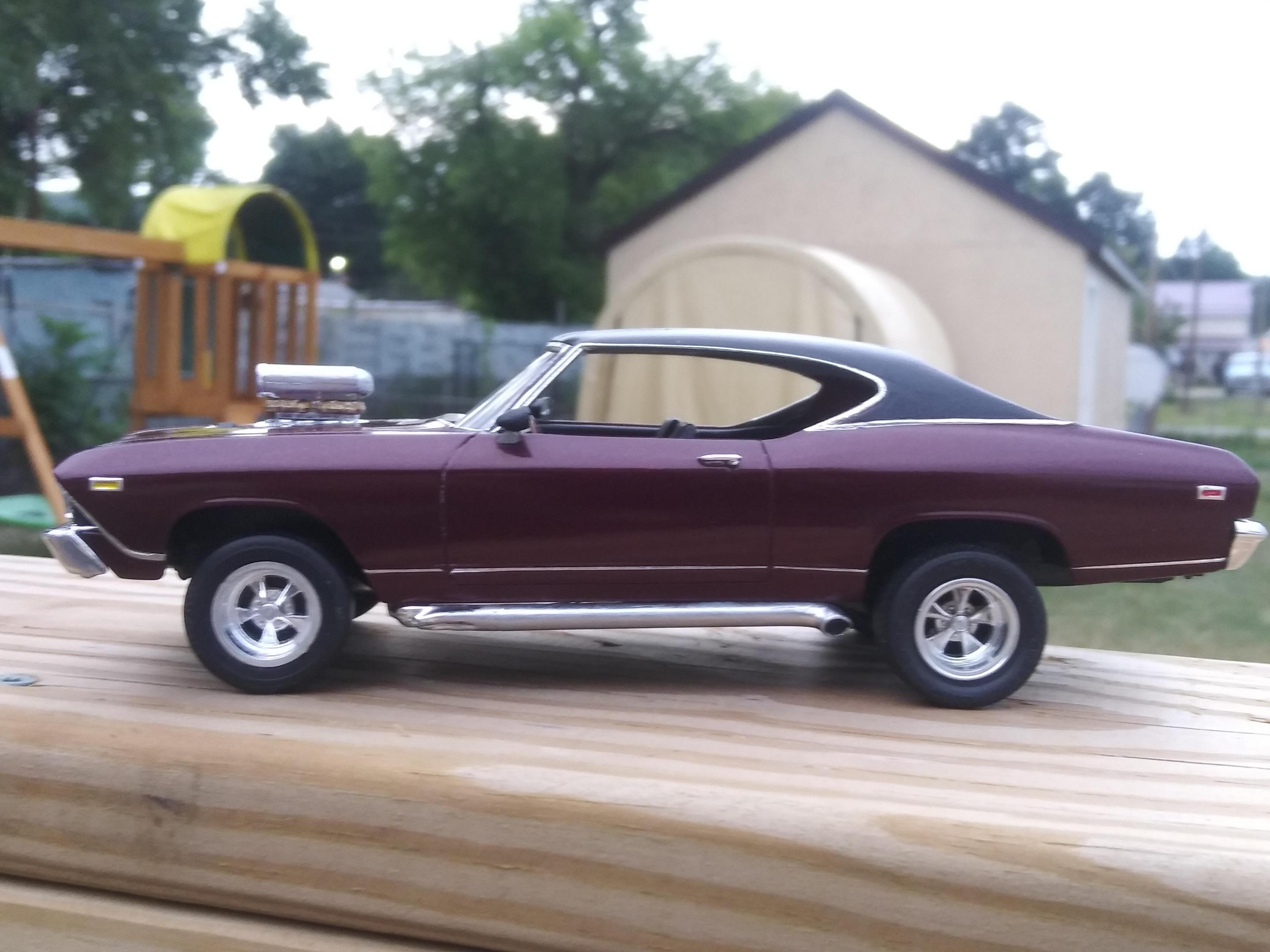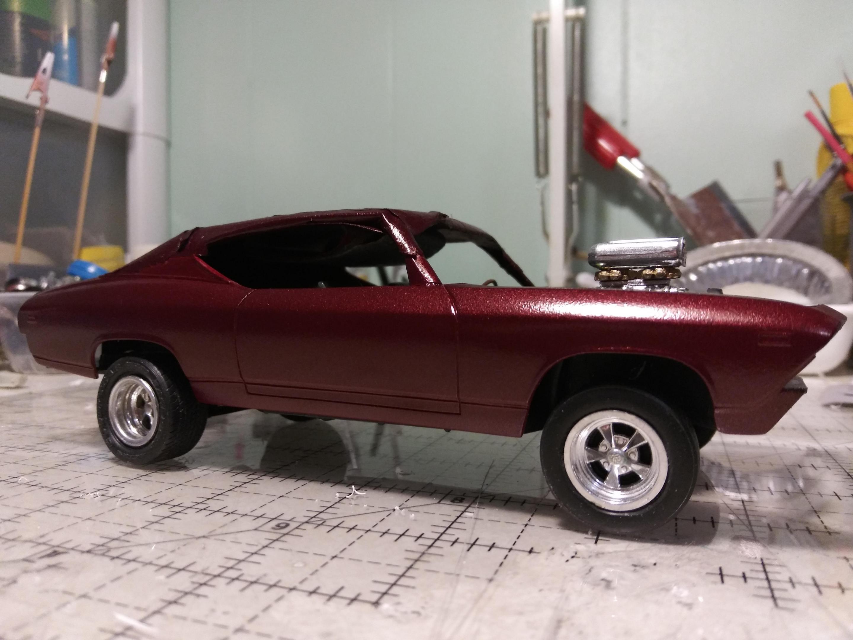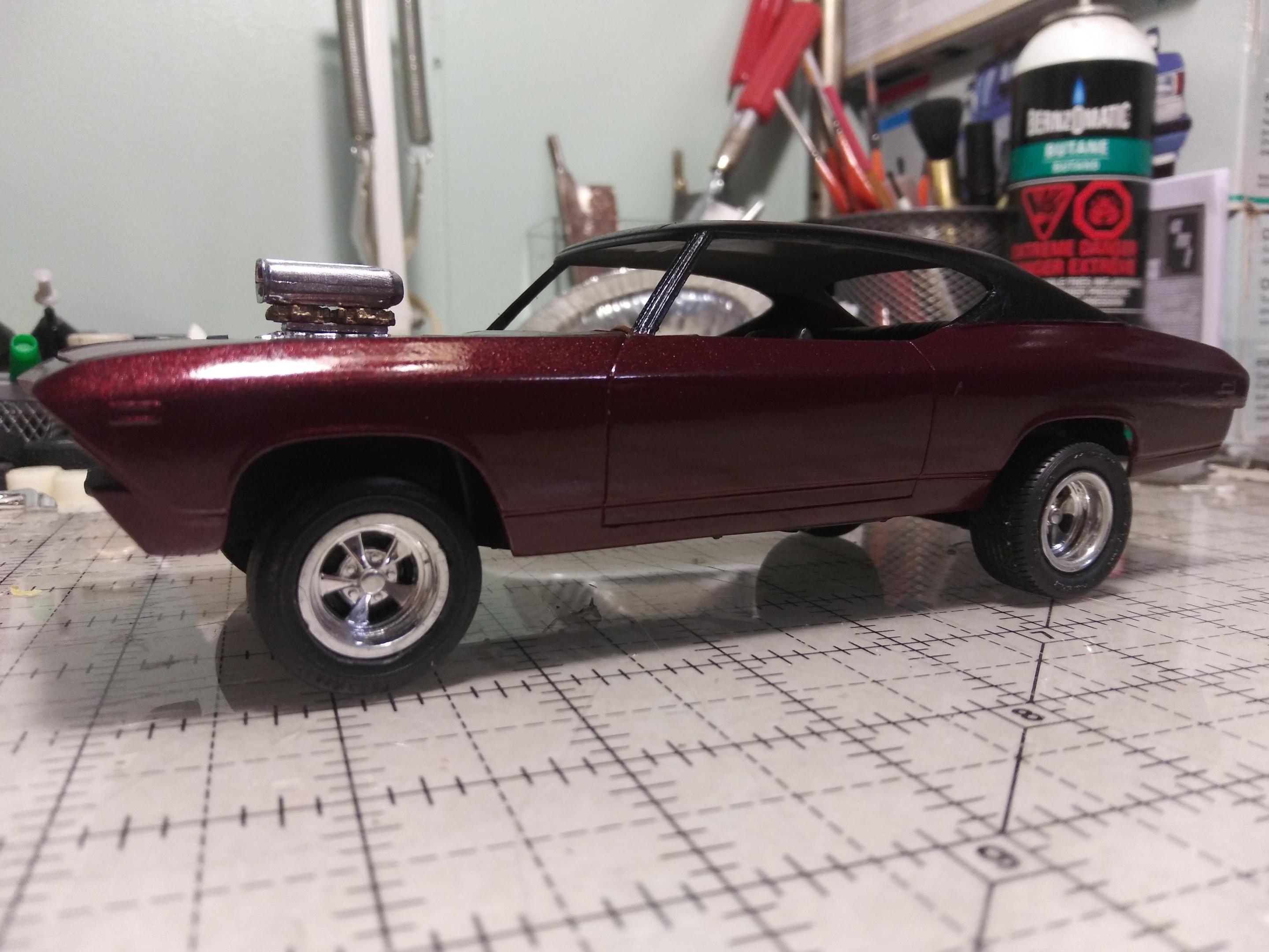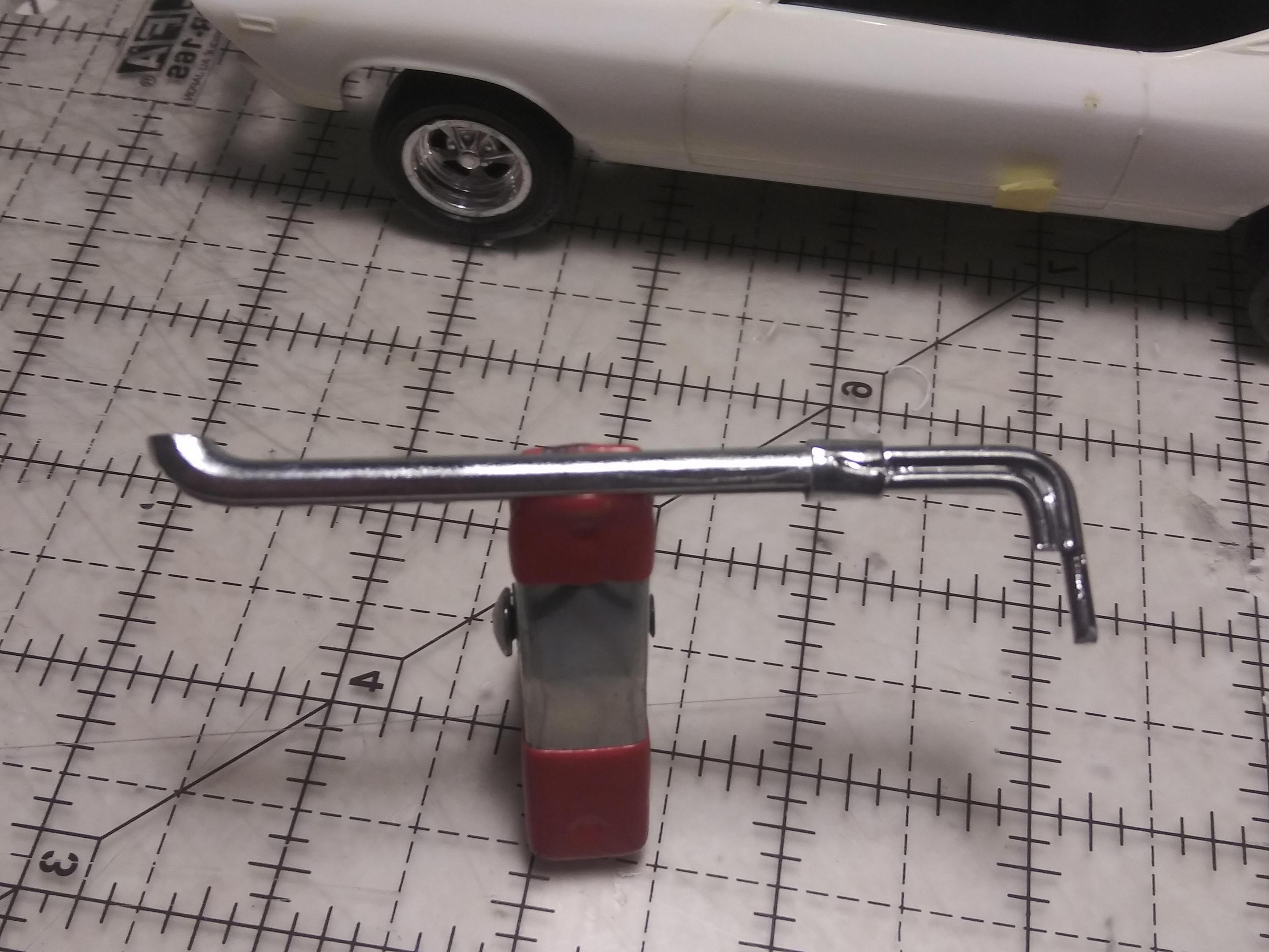 Got a little more done on the malibu/chevelle. Scratch built header style inlets for the side pipes, and dropped the carbs down a little on the blower. Any input or comments always welcome. Also removed emblems.