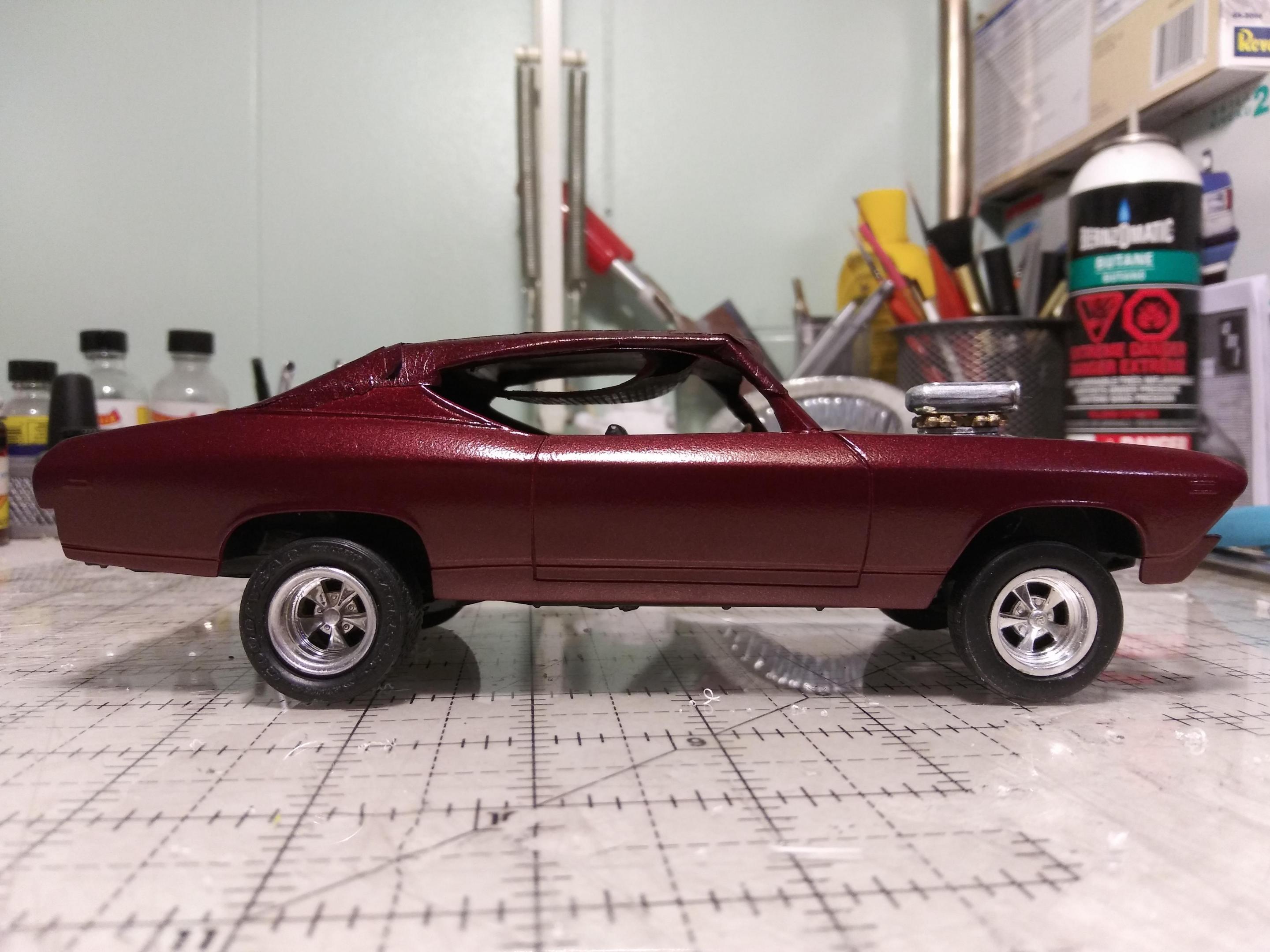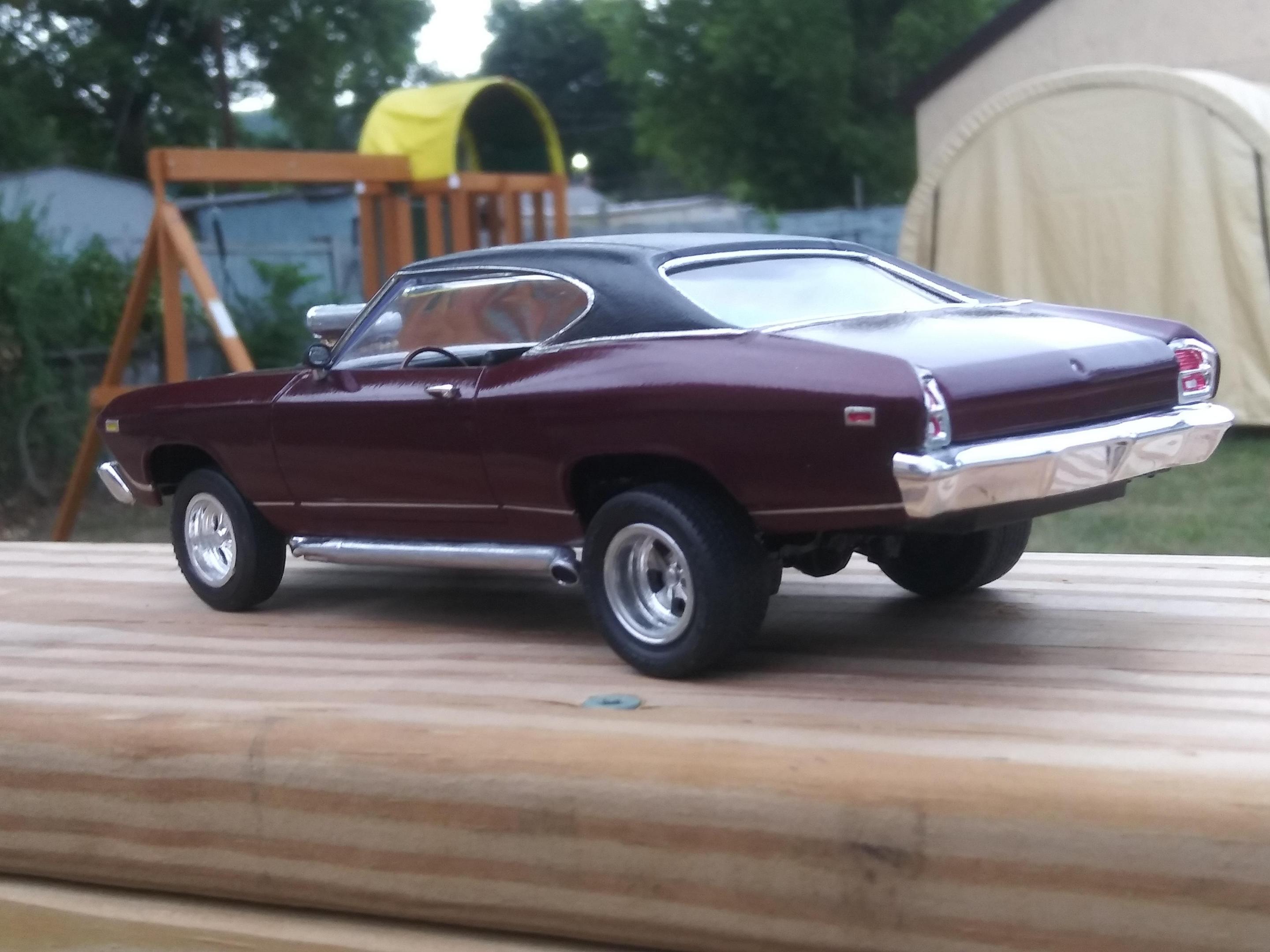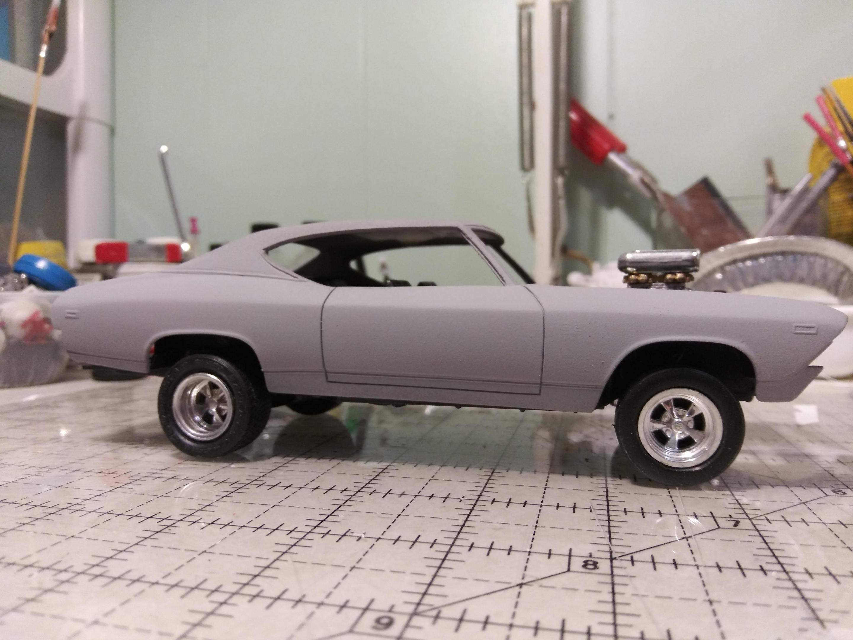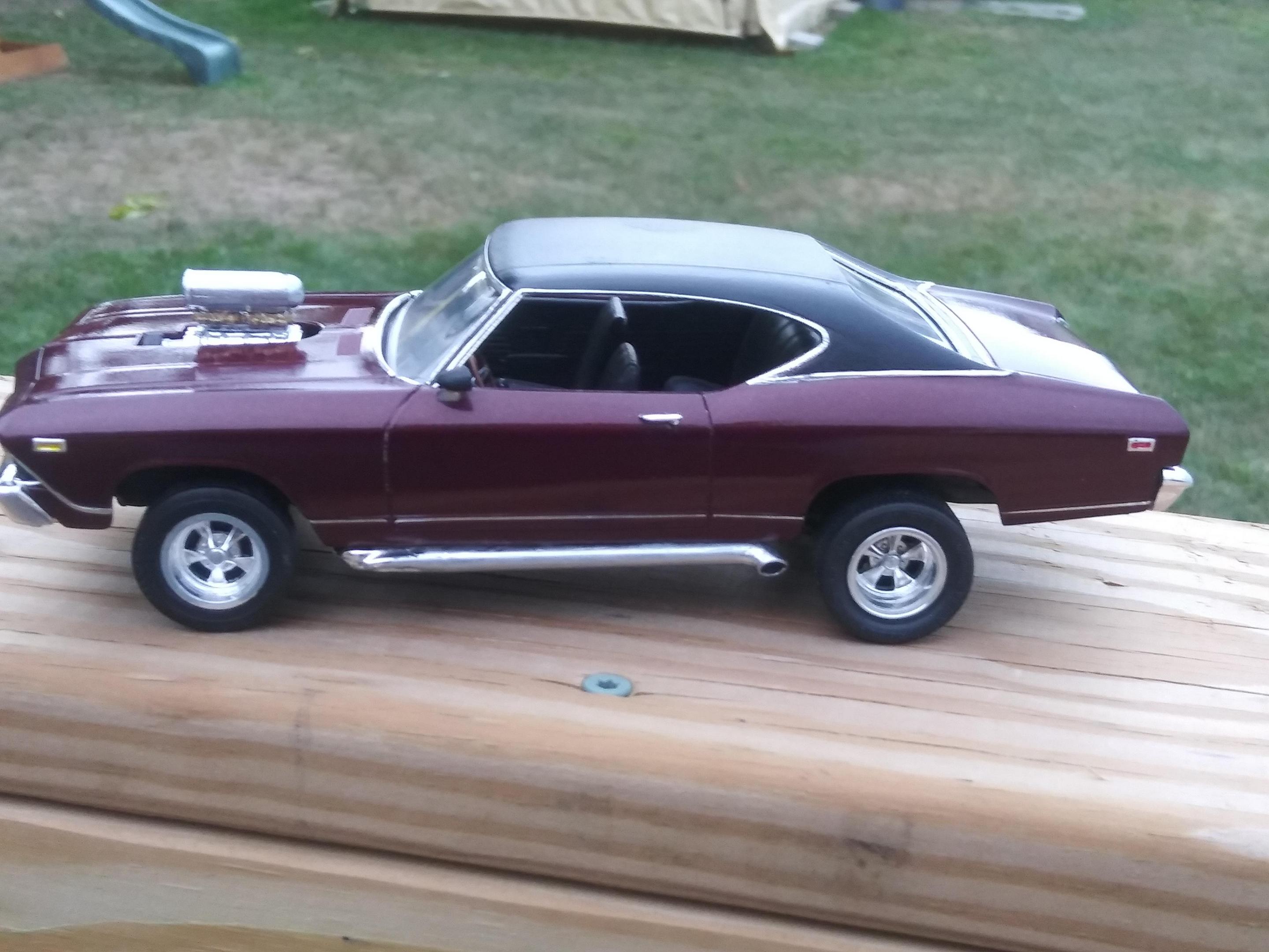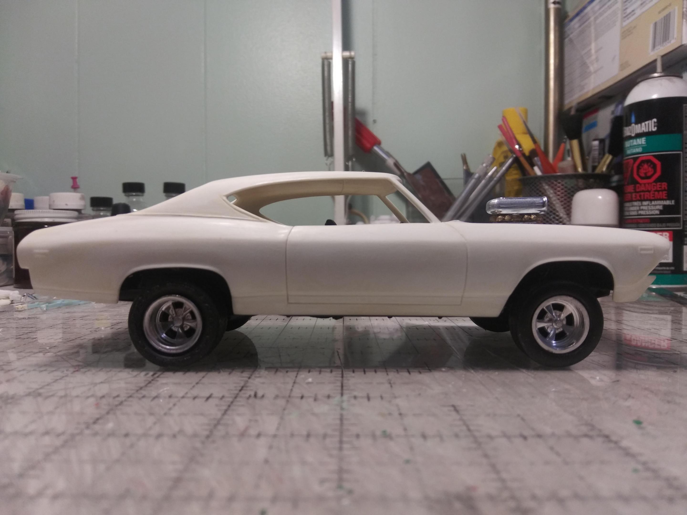 Got a little more done on the malibu/chevelle. Scratch built header style inlets for the side pipes, and dropped the carbs down a little on the blower. Any input or comments always welcome. Also removed emblems.