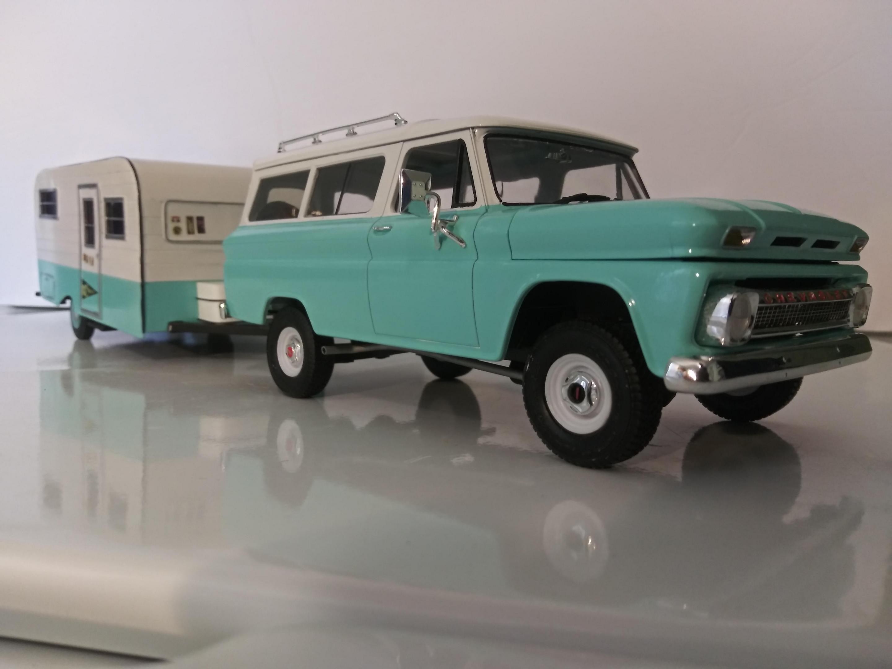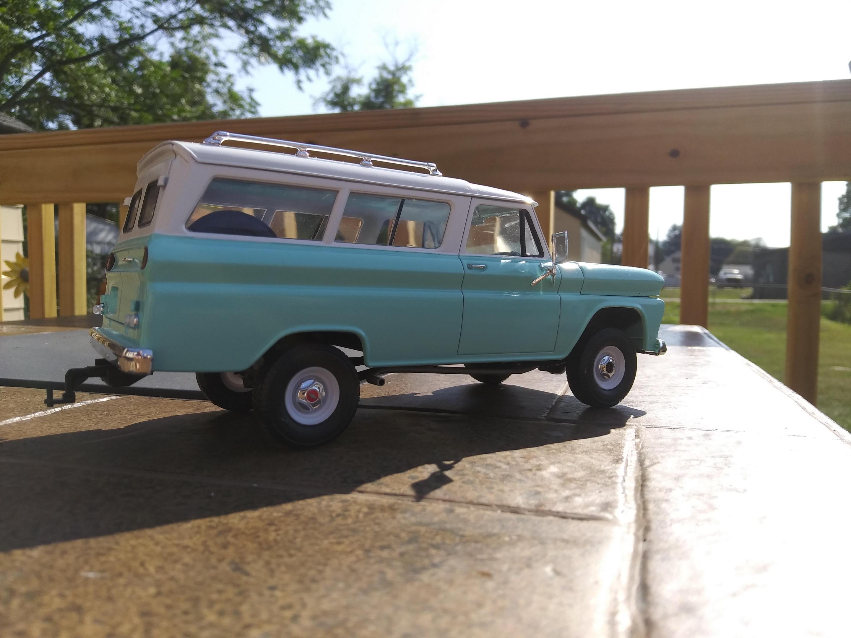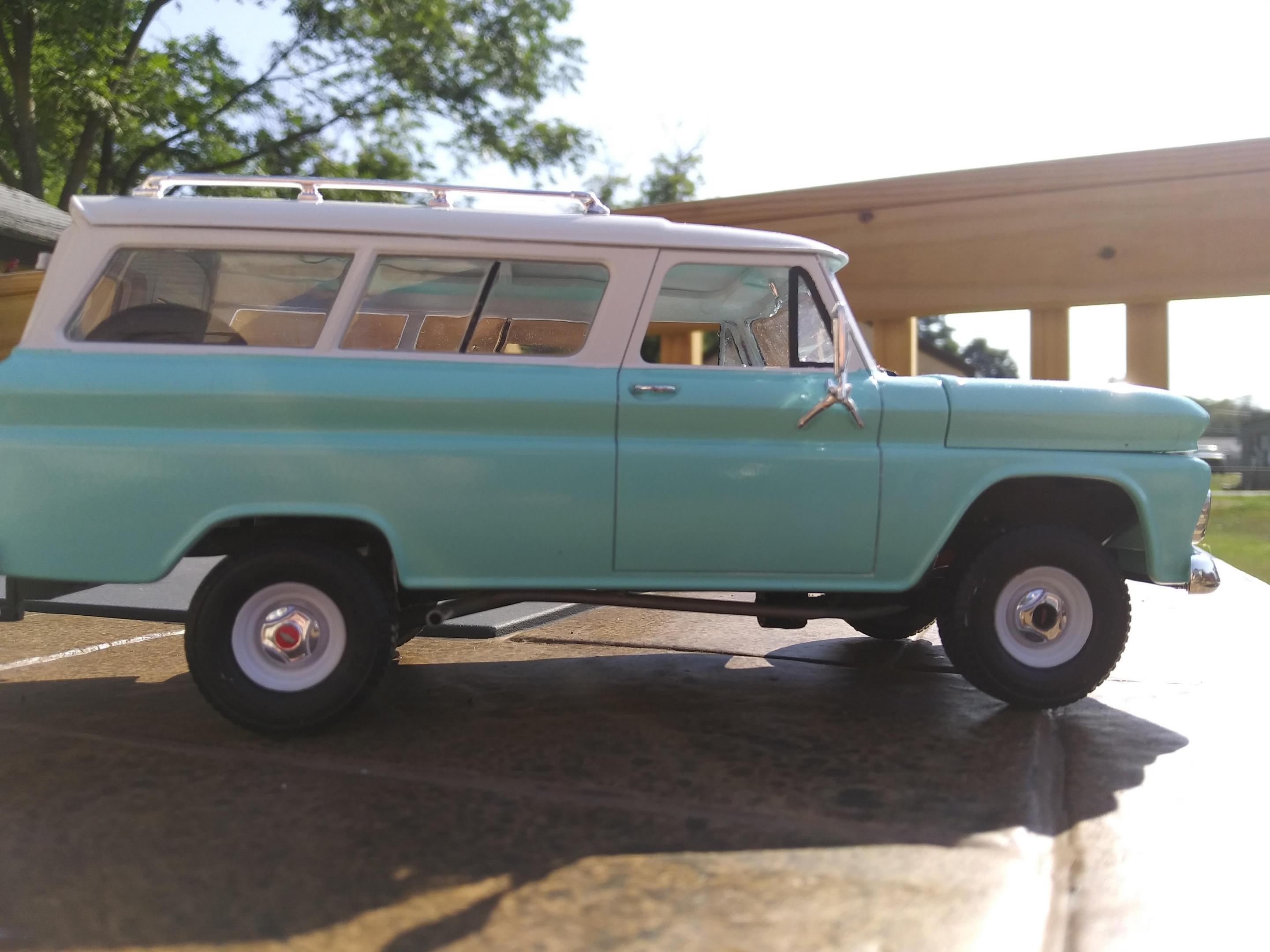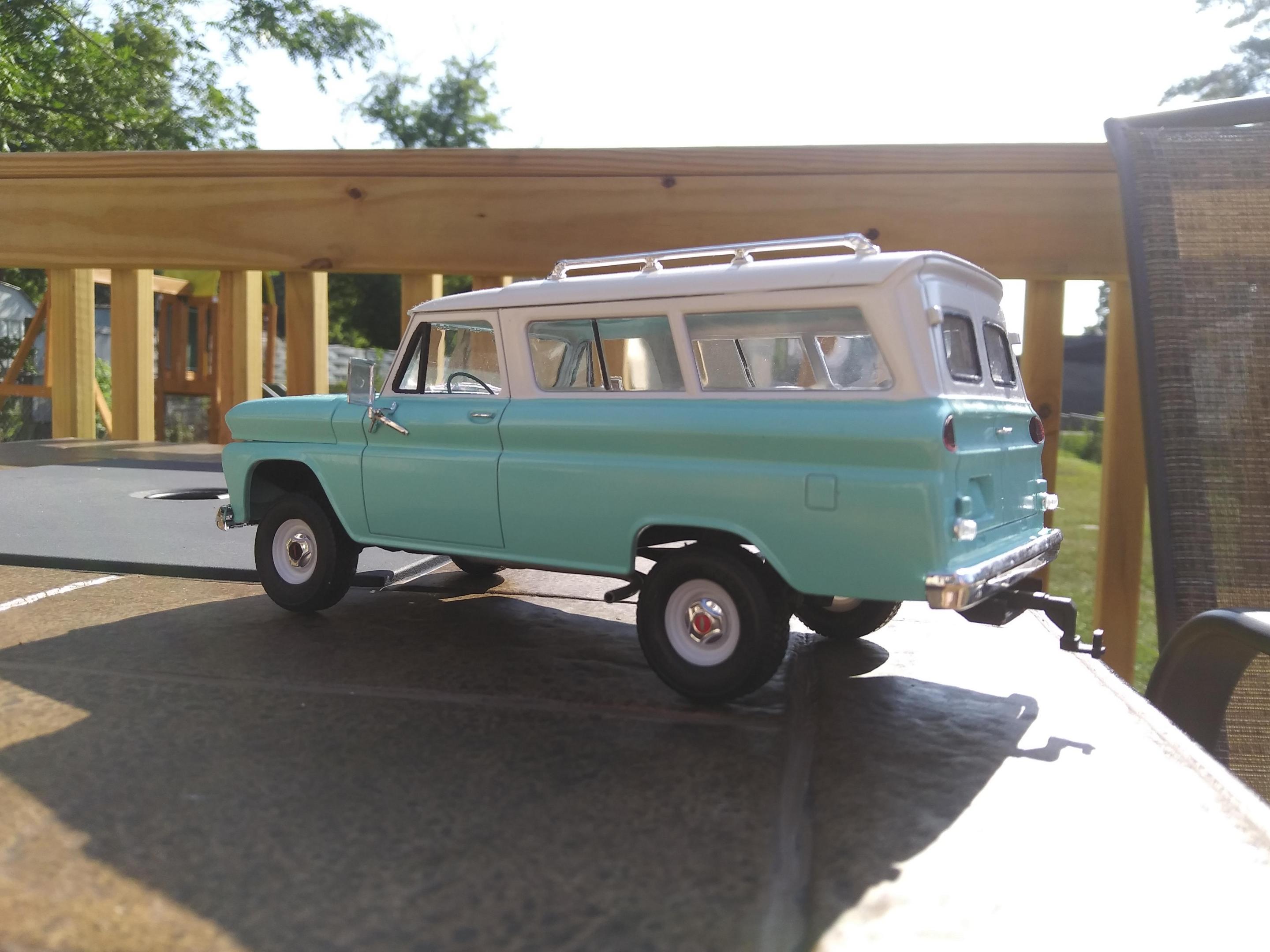 So got the suburban done. Got the mirrors and roof rails from the GMC plow truck. The 4x4 components were taken from an old 4x4 chevy pu. Now to finish the camper. Thanks for looking. Comments welcome. -
