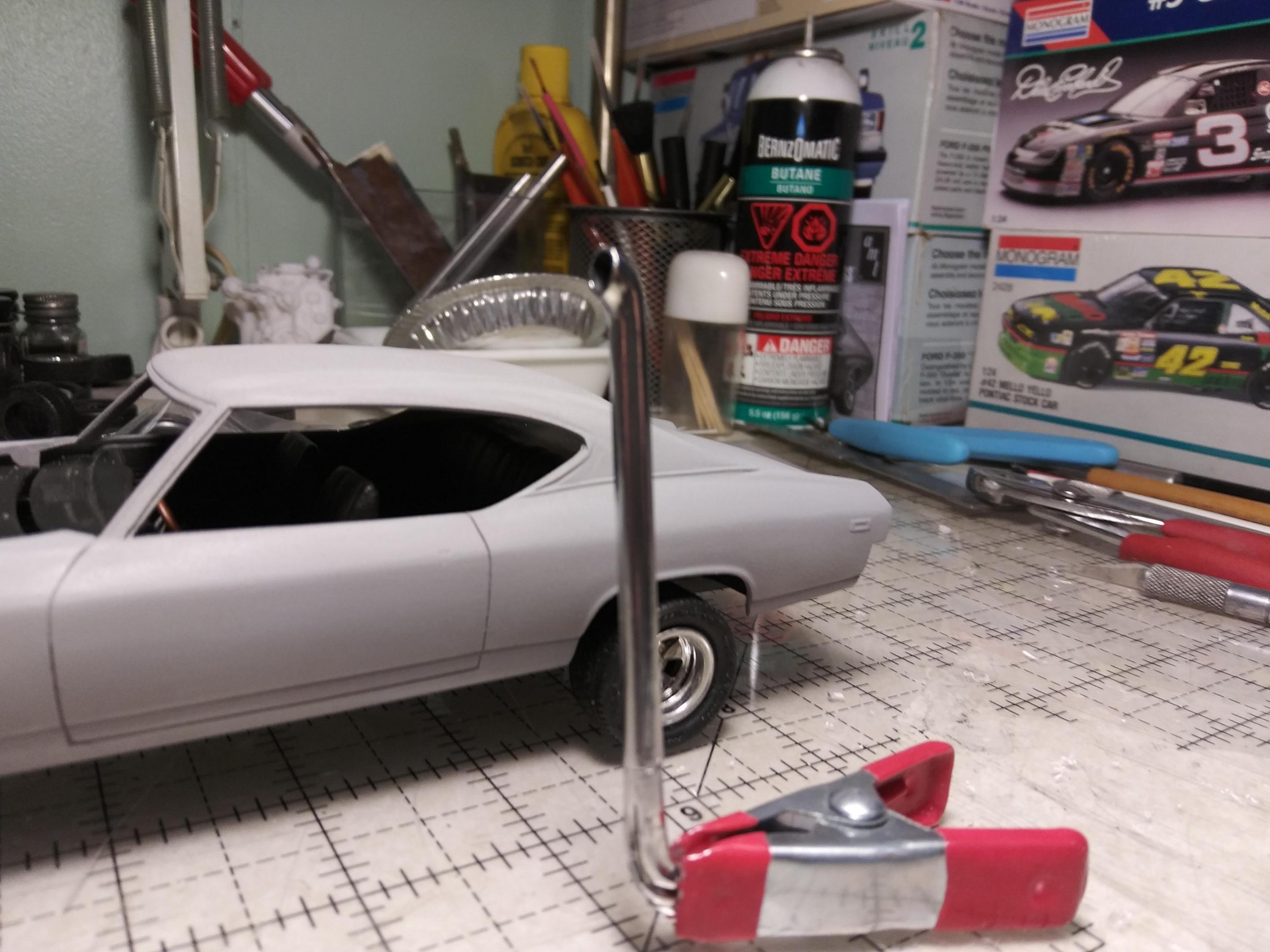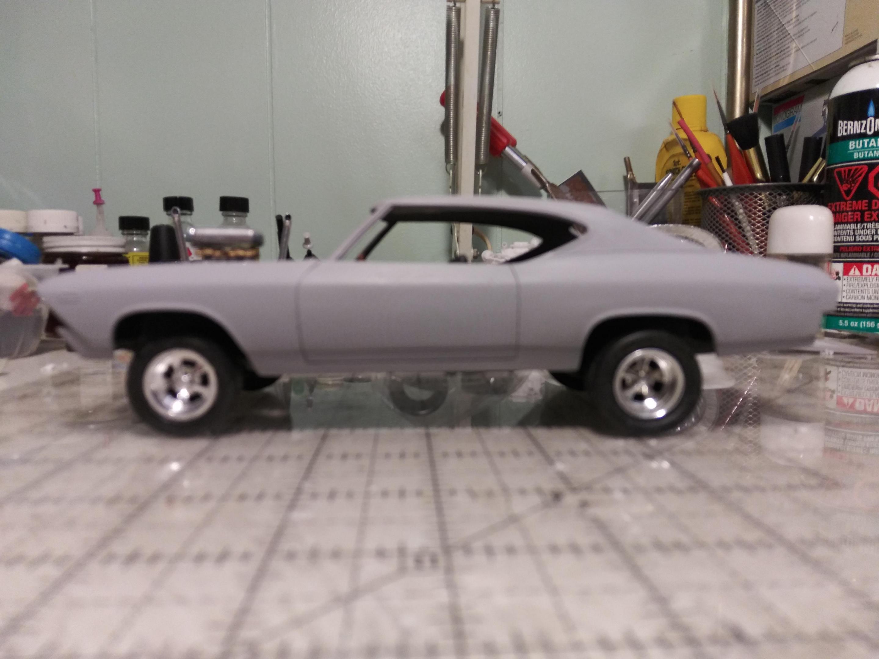 Noticed the hood had some pretty good side gaps, so built them out. Got primer on the rest of the body. picked my color. Hope to get it painted tomorrow. Might throw some flames on it???? -