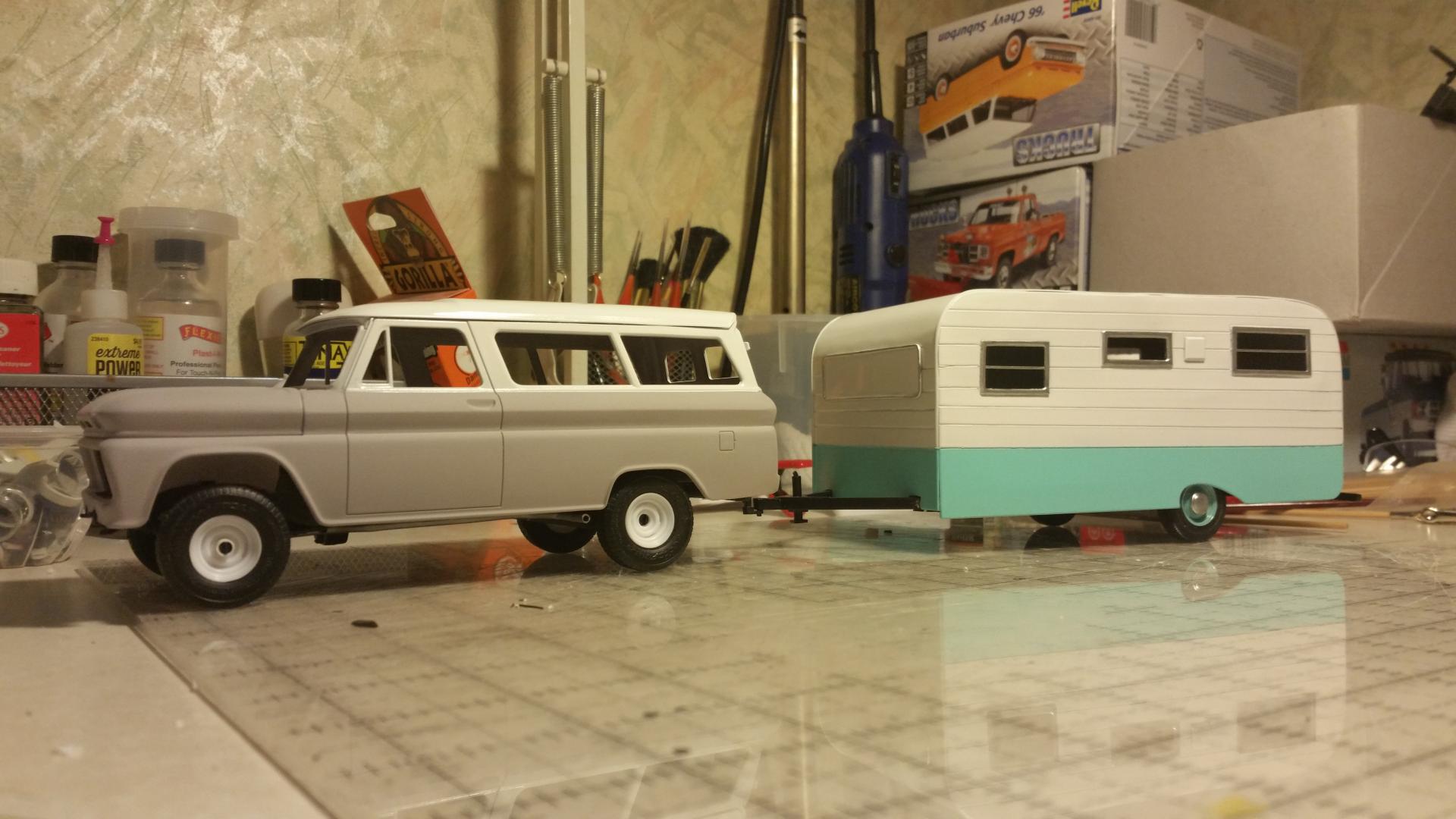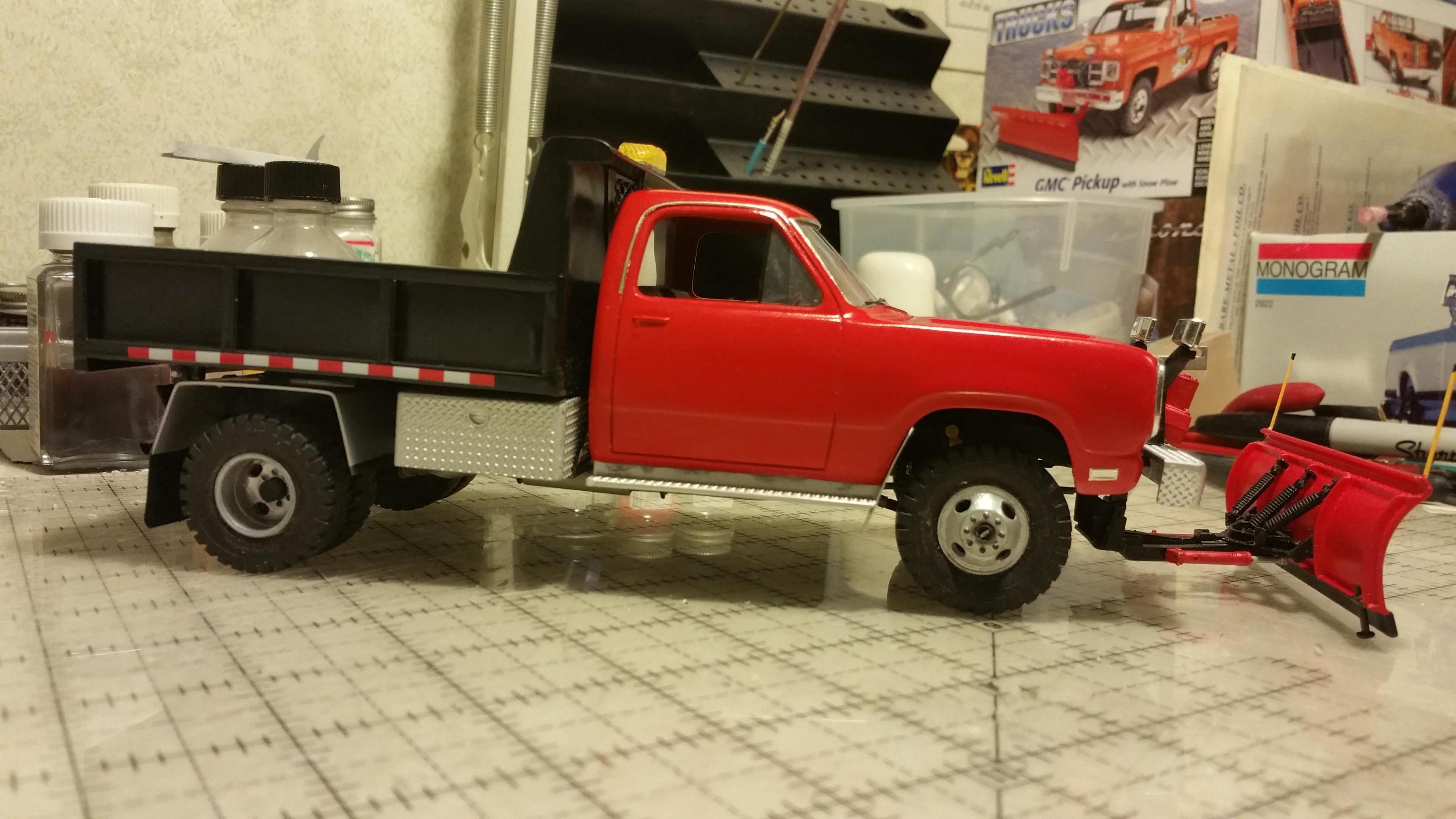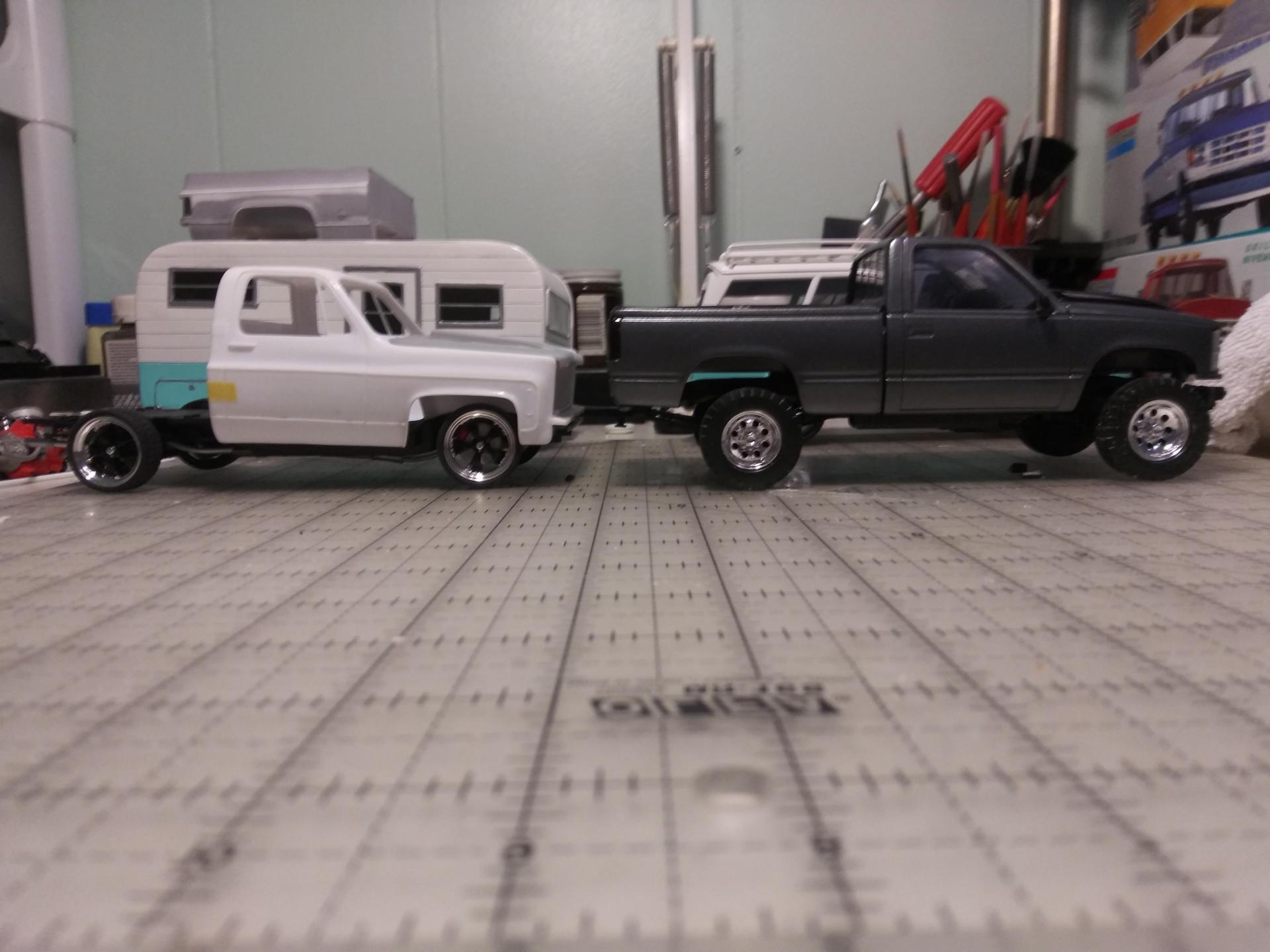 Here is the Dodge dumper I built in 2019. Box is all scratch built, tool boxes and running boards all 4 shocks and front bumper. Frame was lengthened using styrene tubing. Base was a glue bomb little red express. I am also still working on the scratch built camper and 66 suburban. Had a blast building this one. Also currently workin on a 90s F250 lifted 4x4 bug out vehicle with a 7.3 powerstroke and scratch building a camper body for that. Will be posting some pics of that soon I hope.