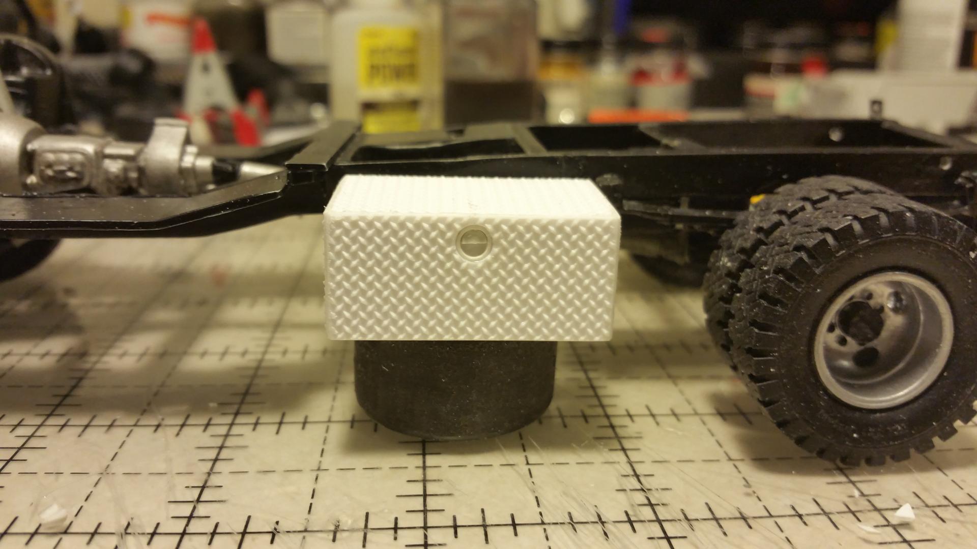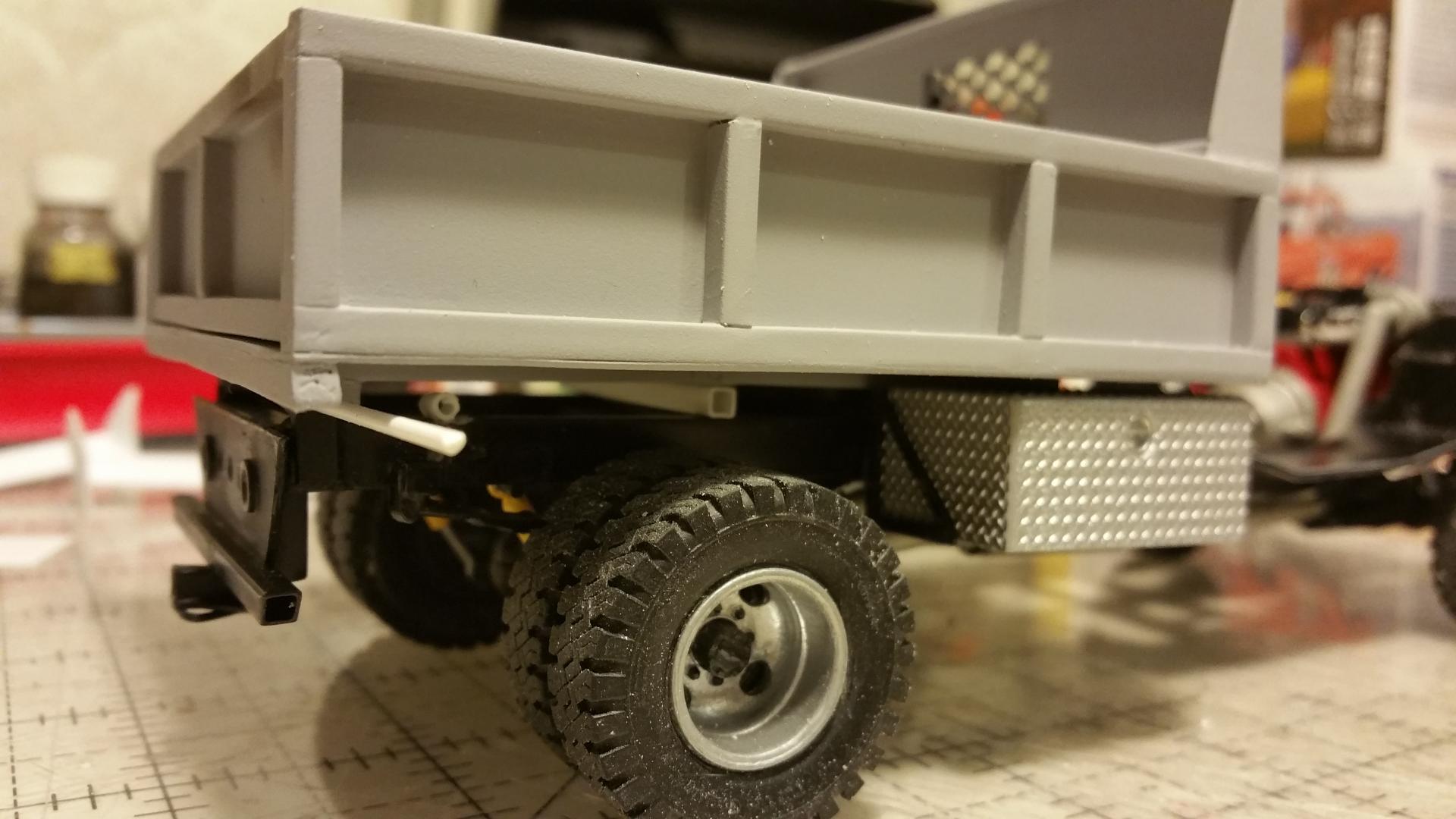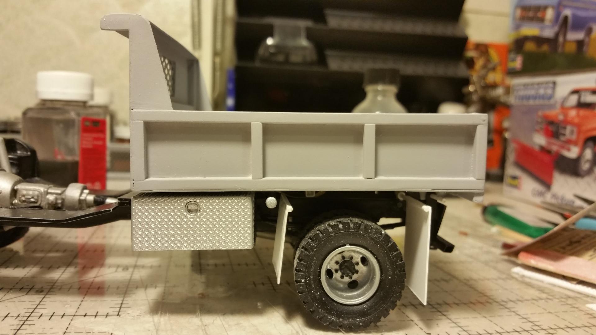 Done with he dump truck for now. made another bumper for it. I thought the other one looked to bulky. Posting the rest of pics in under glass. Going to add a salt spreader eventually as I have one, another member was kind enough to offer up. Thanks for all of the input throughout the build. I will post pics of my next build FORD f250 extended cab 4x4 with a powerstroke. The mirrors were from the parts box.