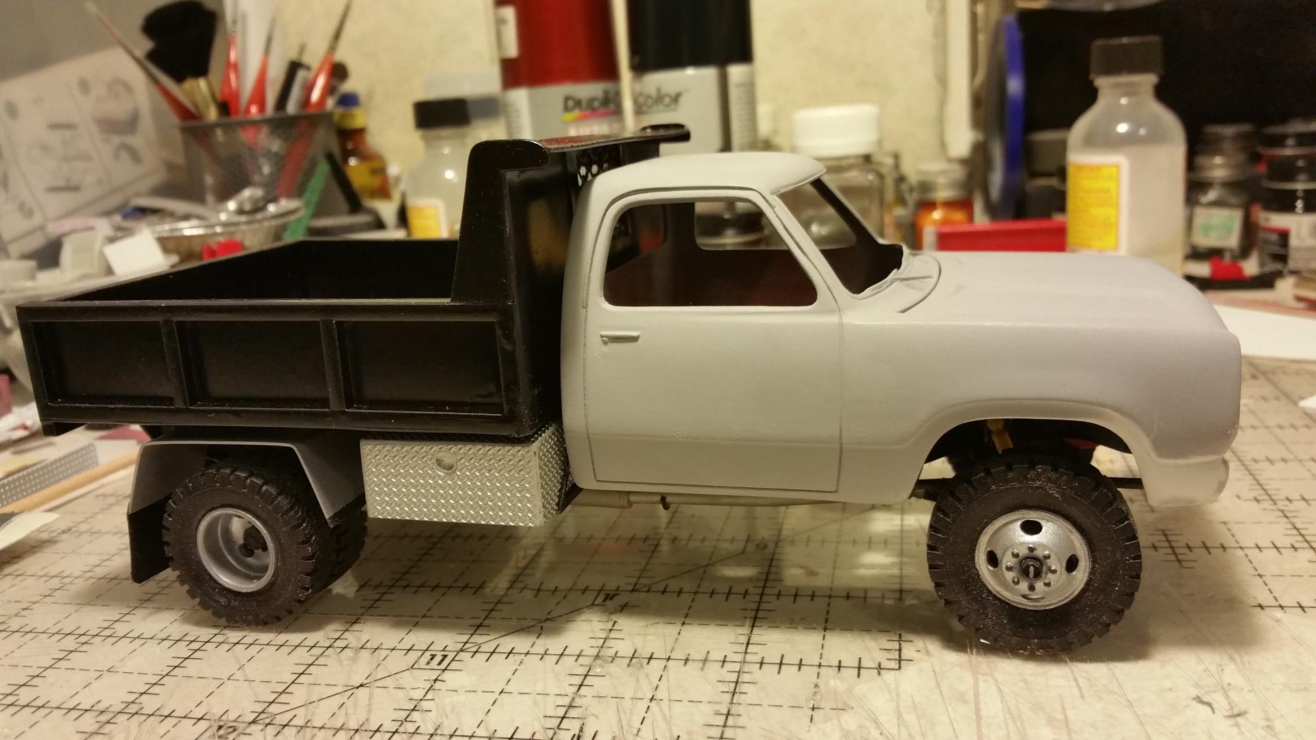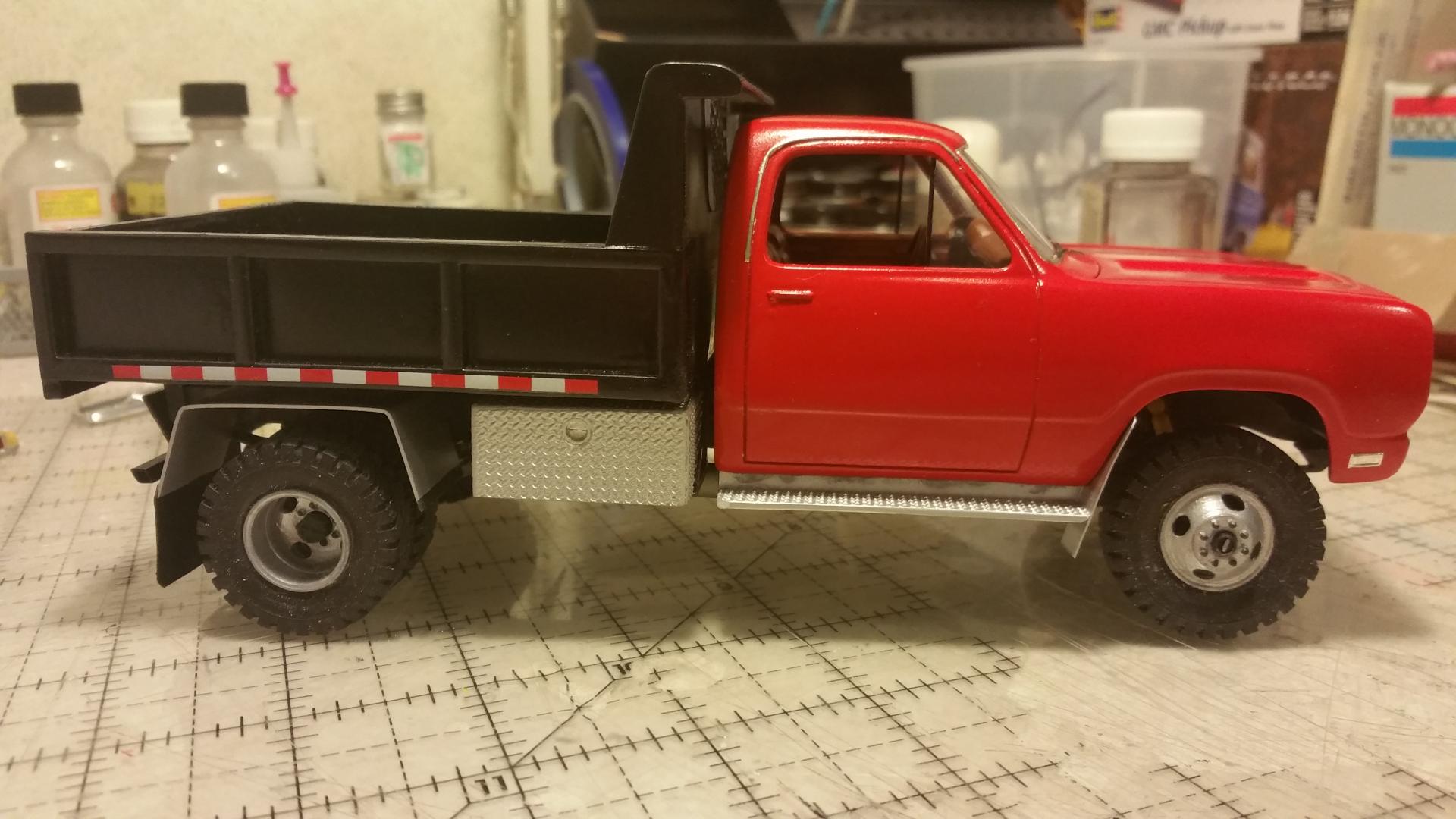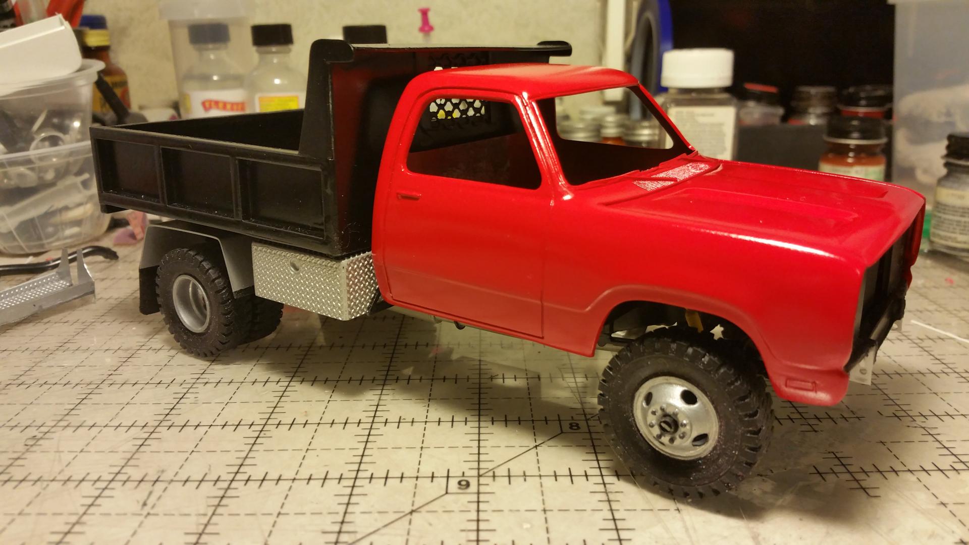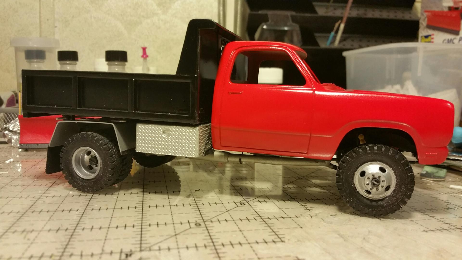 Superior job right here. I love these creative heavy duty truck builds based on pickup kits. Looks real good. maybe some diamond plate running boards? Thanks for every ones input and comments. Going to get some color on it soon, I hope. Change of mind on the color. Going to go with plain gloss red. Make it look more like a work truck I think.