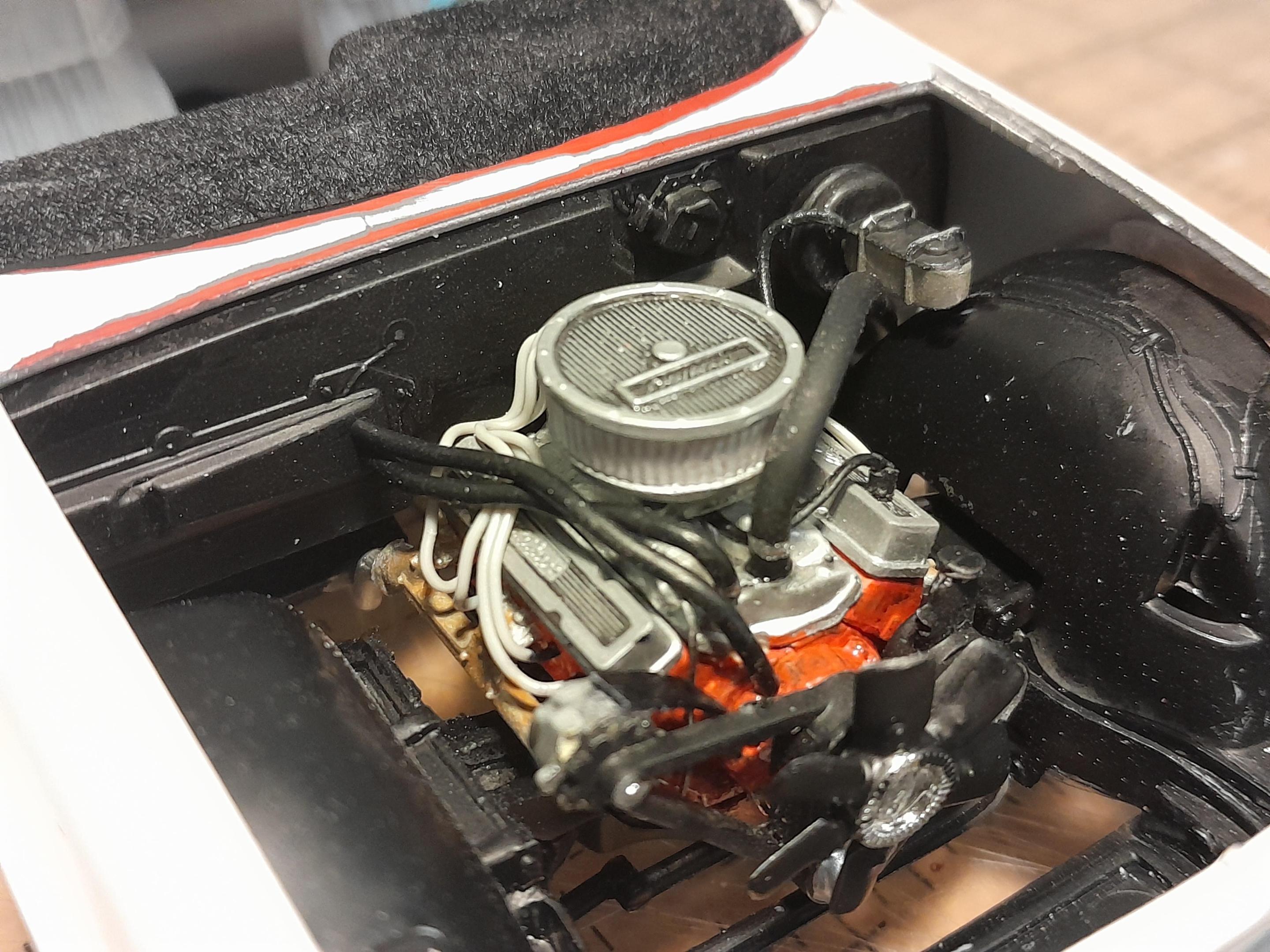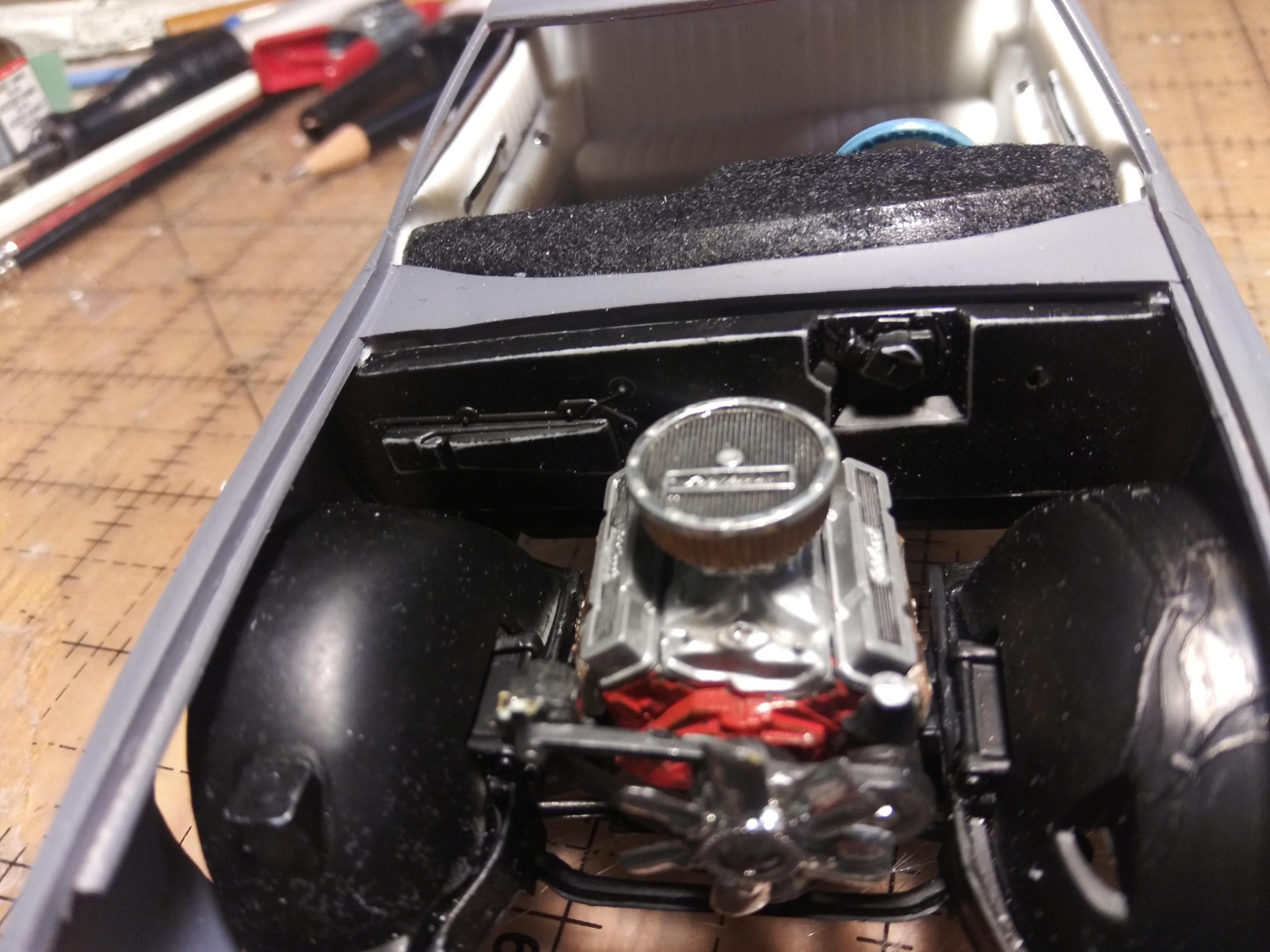 Bean awhile since I've posted. This is how the Malibu is shaping up. Still need to prime it after having to do a little more body work. Think I got it pretty well where it needs to be. Got the 77 Monte Carlo interior tub fitting pretty well. Flocked the dash and floor. Dash in the 1:1 is carpeted. Engines looking pretty good? Thanks for lookin feel free to comment.