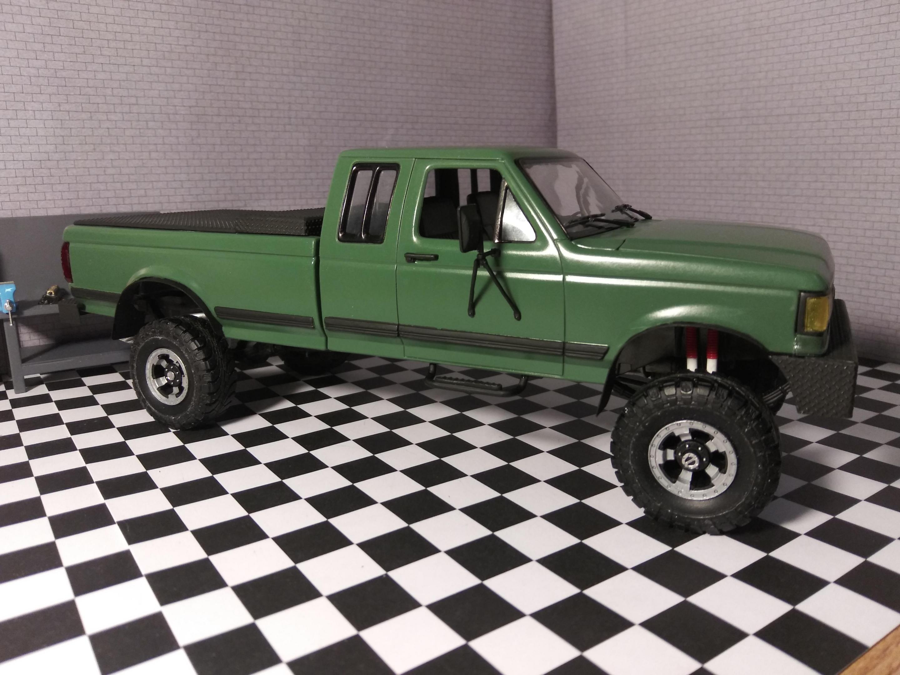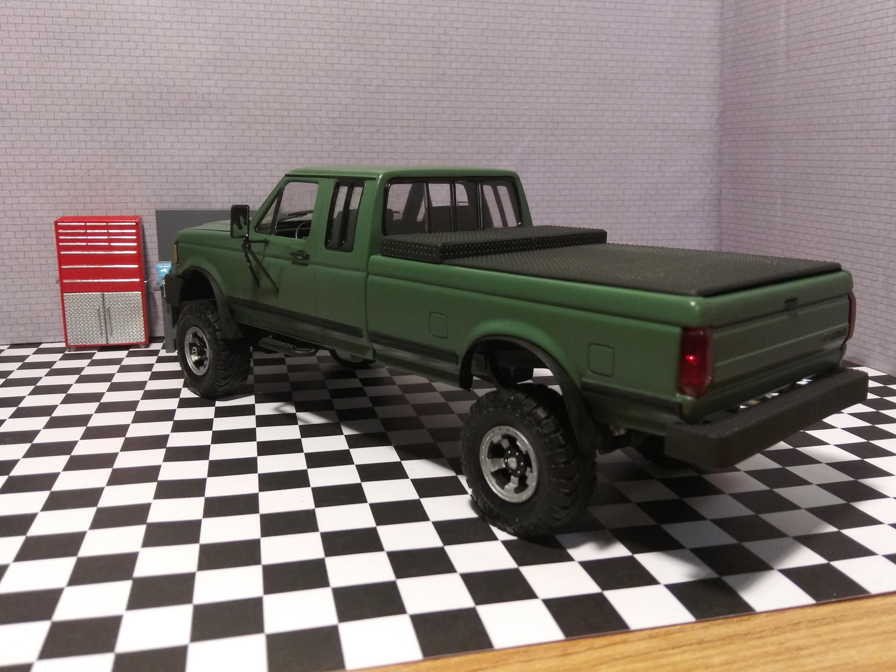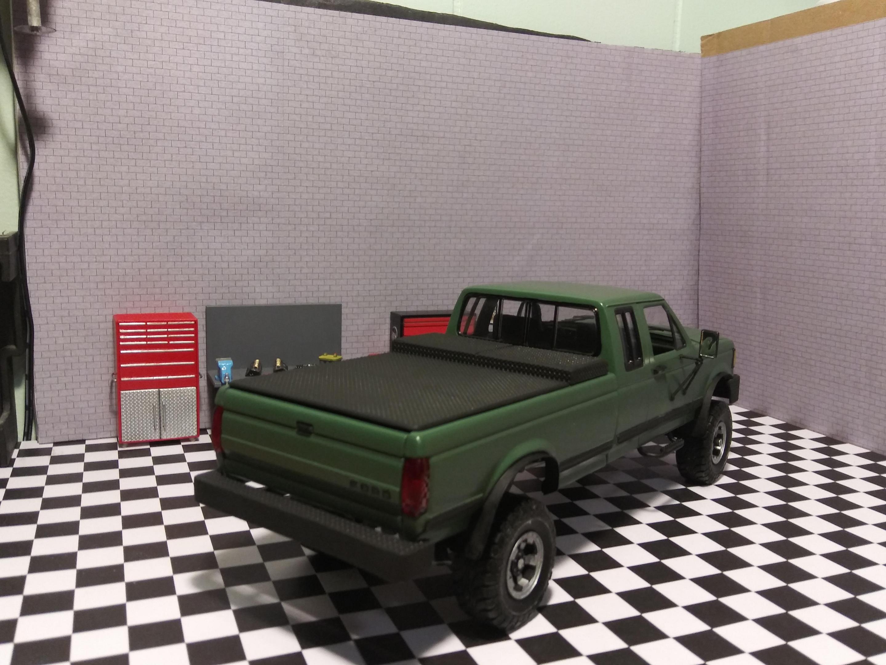 Got the F250 done, with the exception of the winch for the front, witch is on order from Fireball model works. Another fun build. Bumpers, tool box and bed cover, side steps, exhaust, mud guards and engine plumbing are scratch built. And gonna do a headache rack and some off road lights. Thanks for looking. As always comments are welcomed.