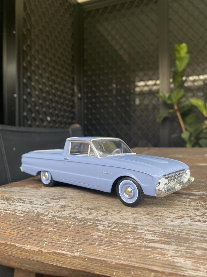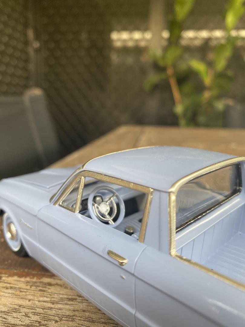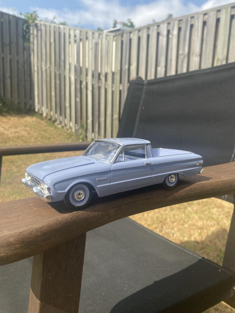 This is my 60 Ranchero from AMT This is certainly an OLD kit. It might be a new release of it but the mould lines and flash were difficult to handle. Not to mention the A pillar was wonky, needed to reheat and re shape the a pillar and roof stance. Very limited parts, and not a lot of great detail. For that reason I didn’t spend a whole lot of time on it. But hey I’m still happy with the way it looks, will do nicely in the display cabinet ☺️ Thanks for looking